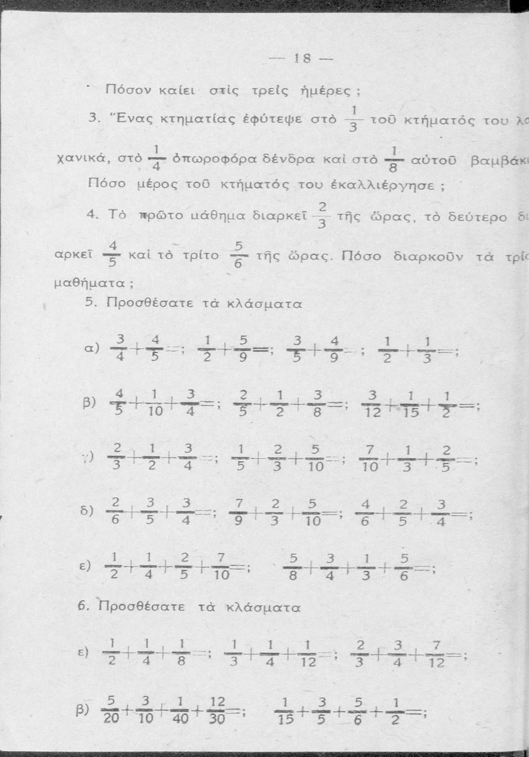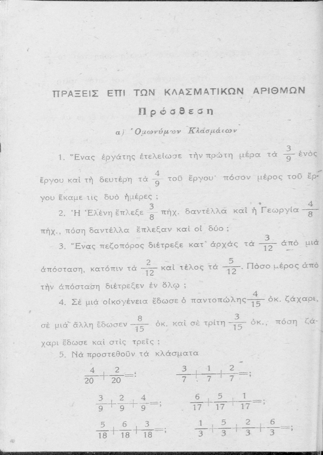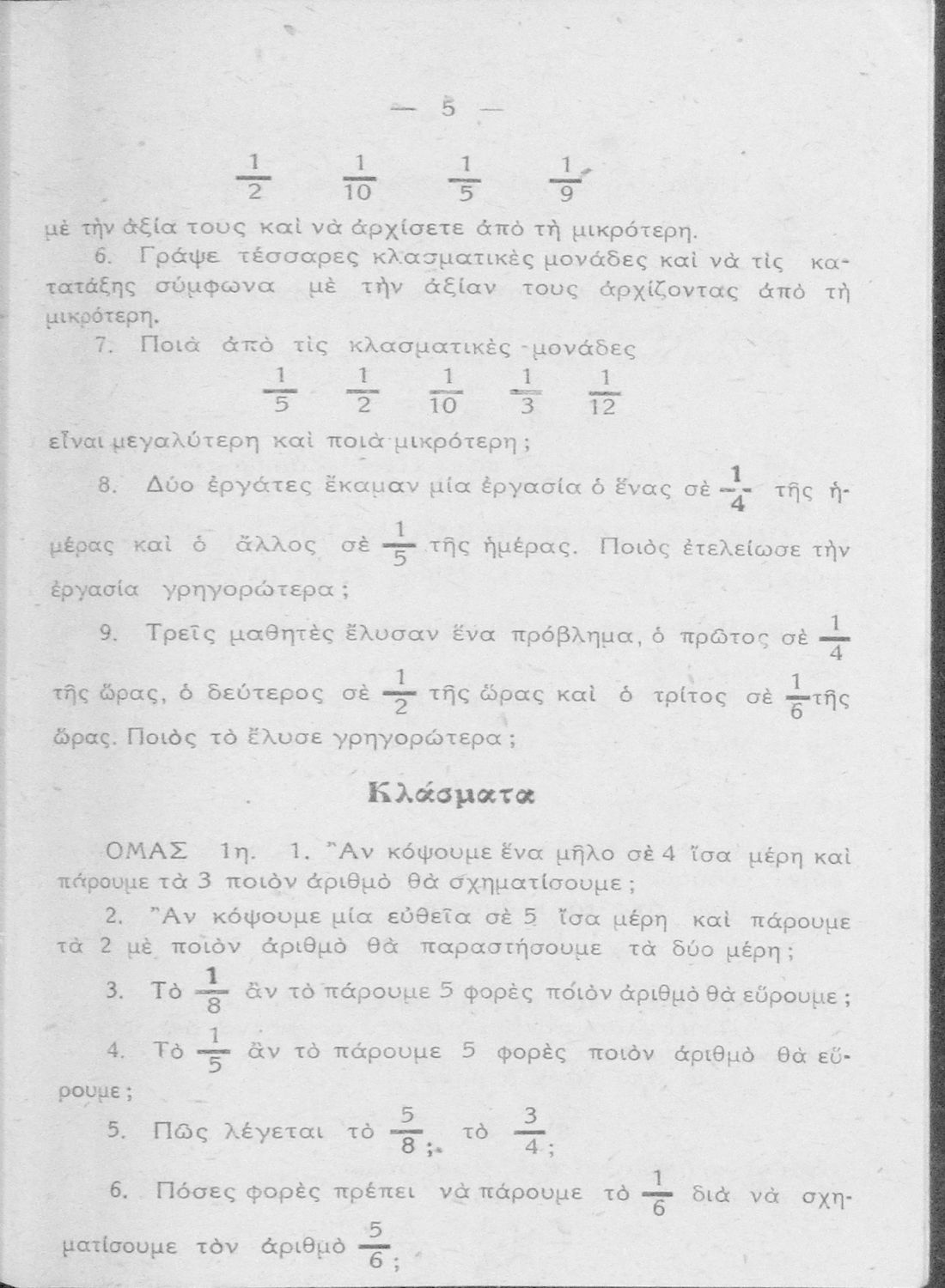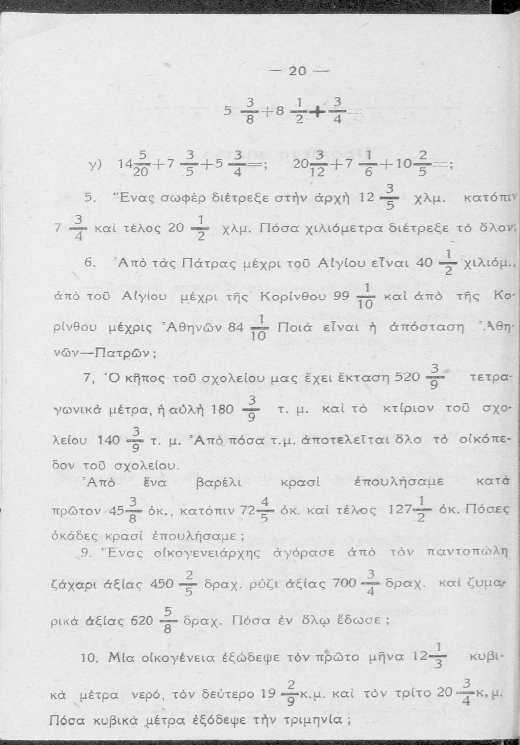 Αριθμητικά προβλήματα δια τους μαθητάς της Ε΄ τάξεως Δημοτικών Σχολείων