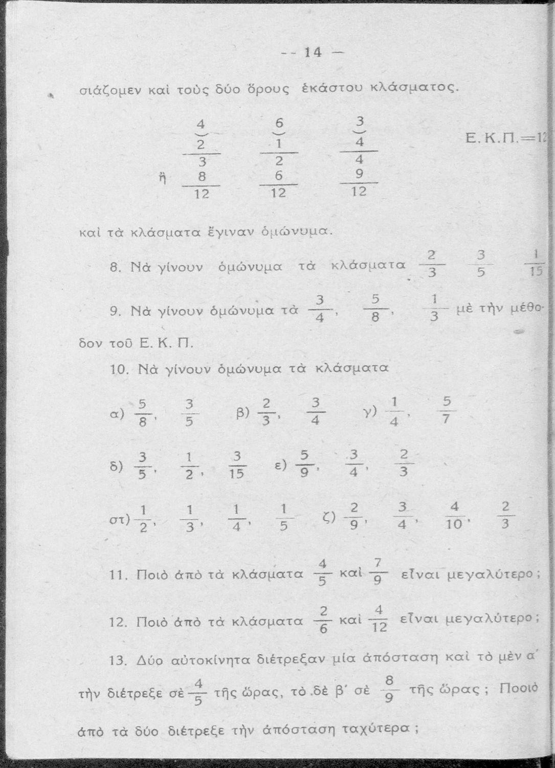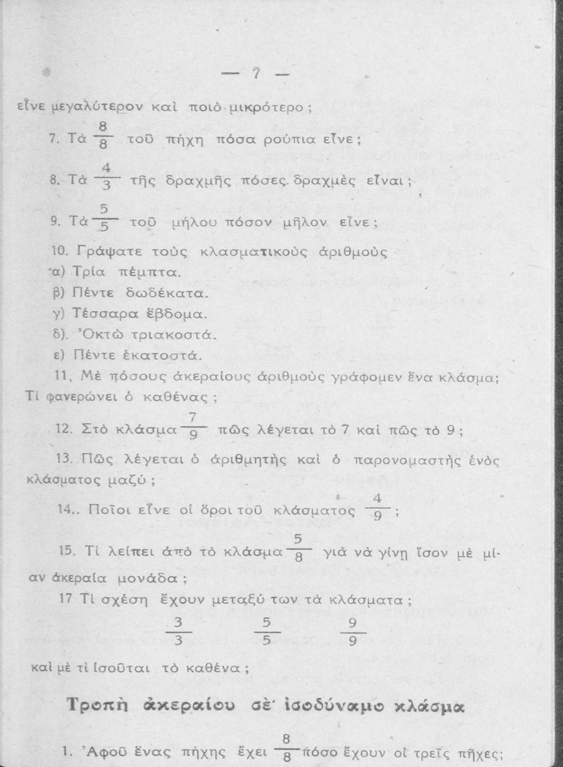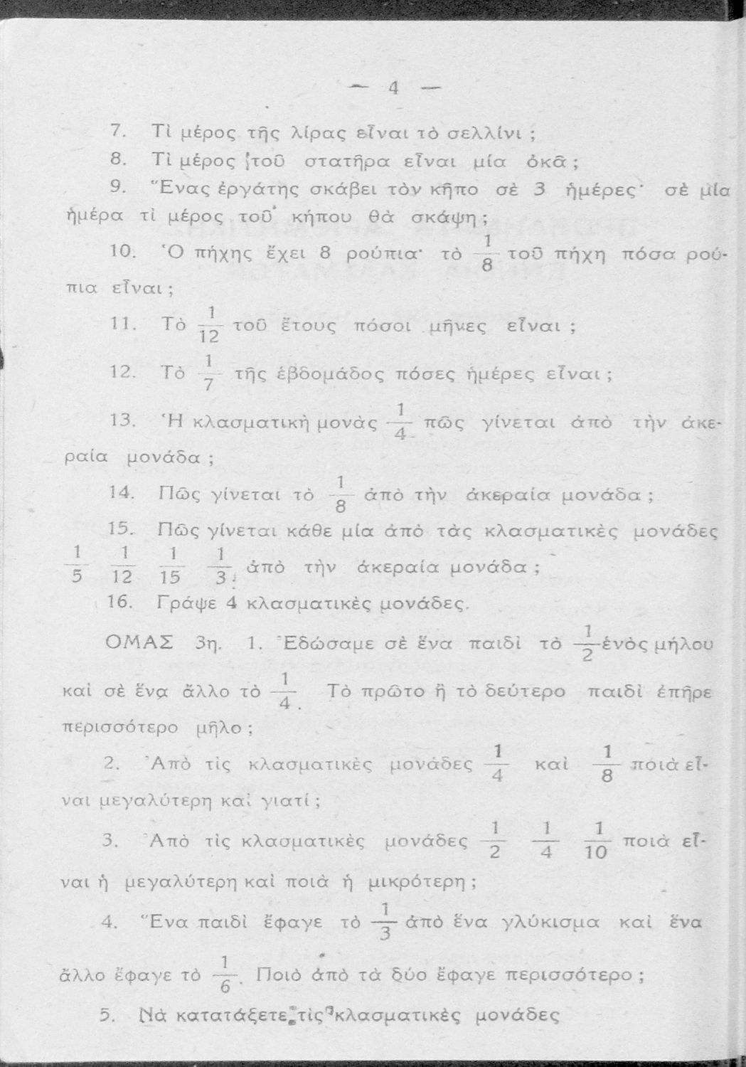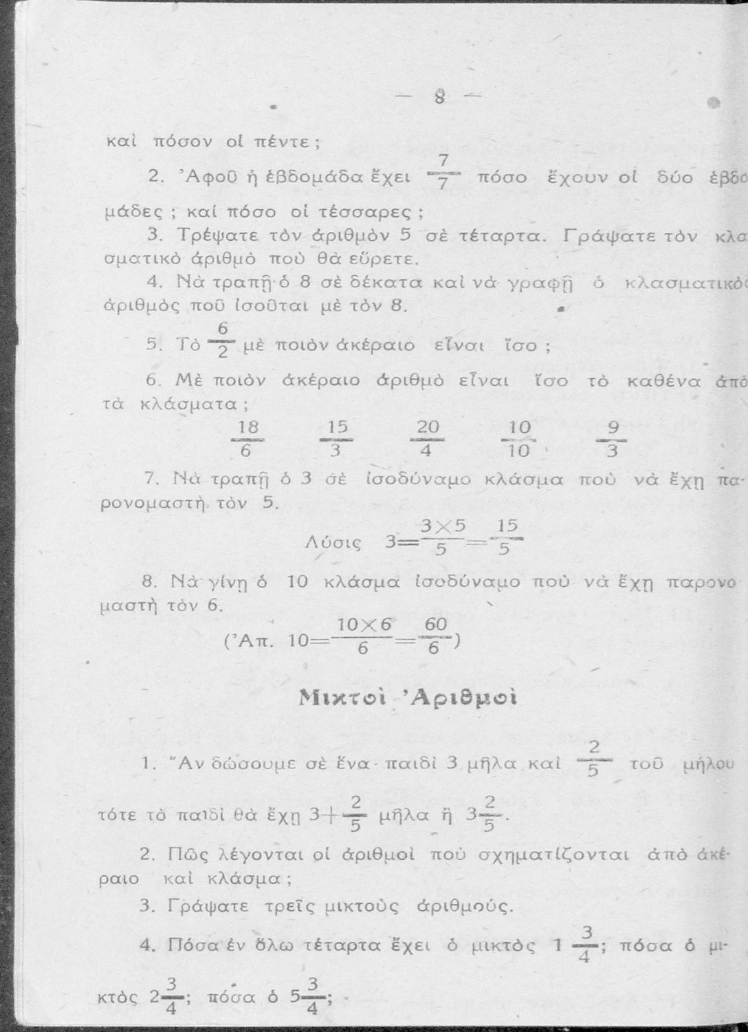 Αριθμητικά προβλήματα δια τους μαθητάς της Ε΄ τάξεως Δημοτικών Σχολείων