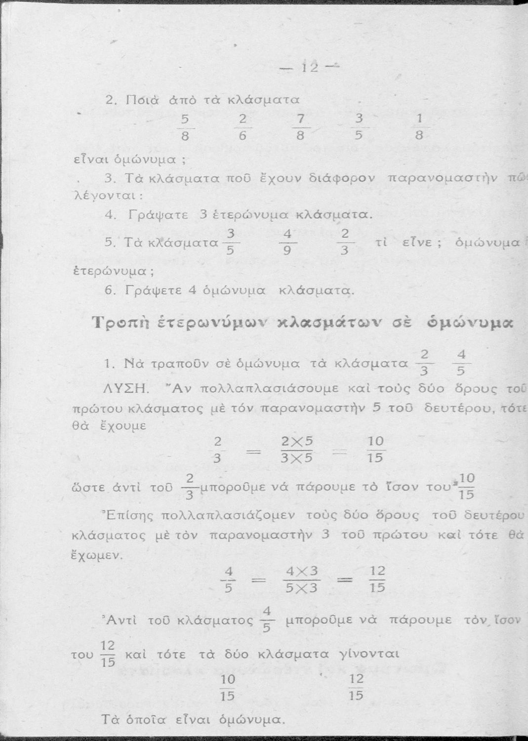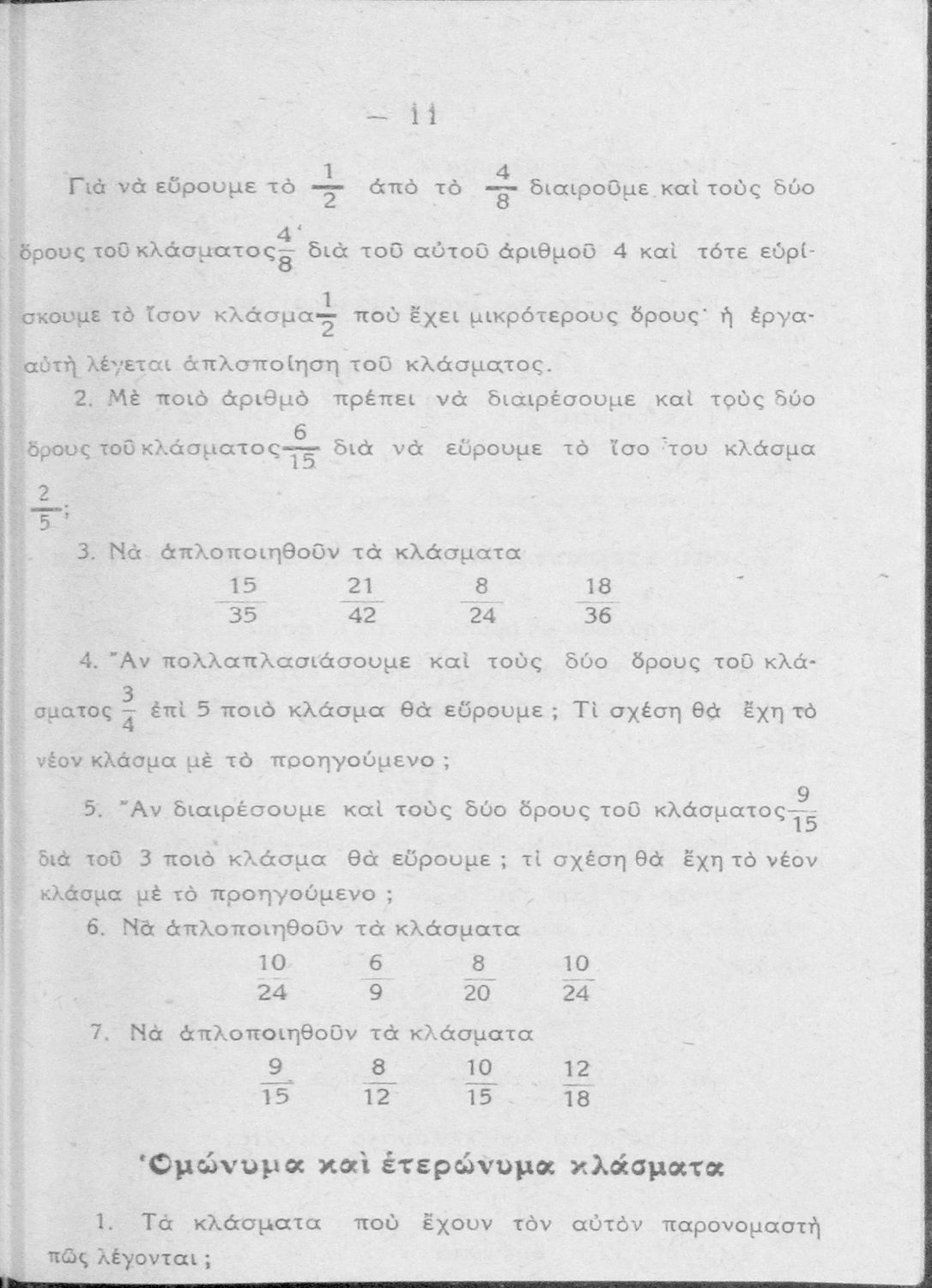 Μαθητικό βοήθημα Αριθμητικής Ε΄ Δημοτικού που περιλαμβάνει αριθμητικά προβλήματα και θεωρία για τα κλάσματα, τους κλασματικούς αριθμούς, τις ιδιότητες και τα μέρη των κλασμάτων.