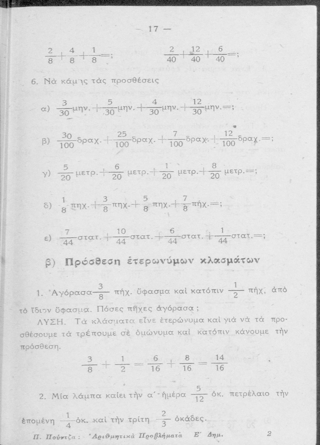 Τίτλος: Αριθμητικά προβλήματα δια τους μαθητάς της Ε΄ τάξεως Δημοτικών Σχολείων