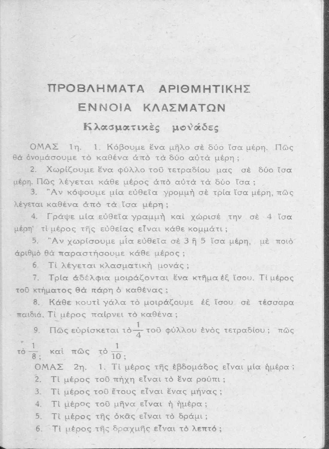 Παρουσίαση περιεχομένου: Μαθητικό βοήθημα Αριθμητικής Ε΄ Δημοτικού που περιέχει αριθμητικά προβλήματα και είναι χωρισμένο σε θεματικές κατηγορίες.