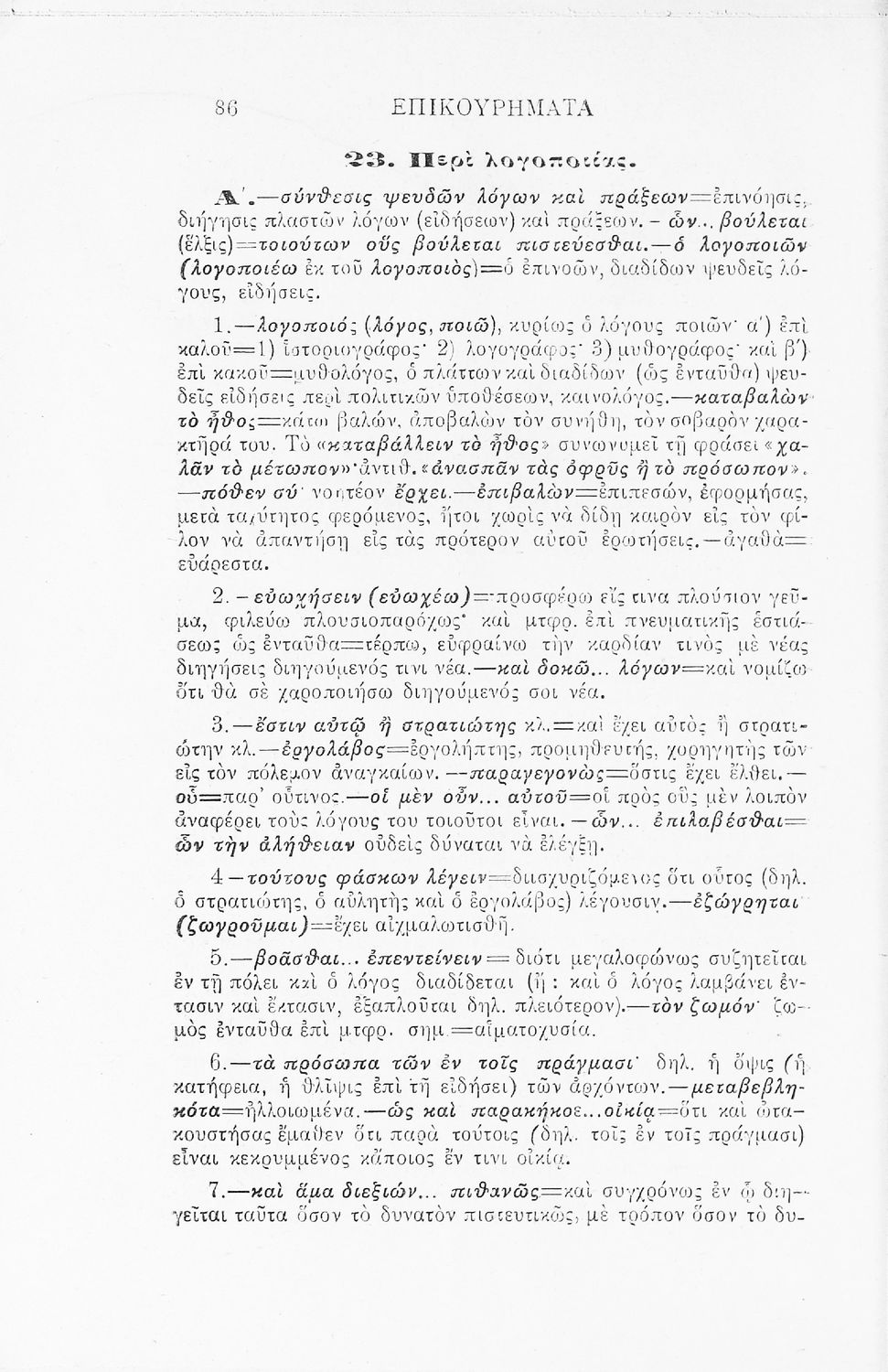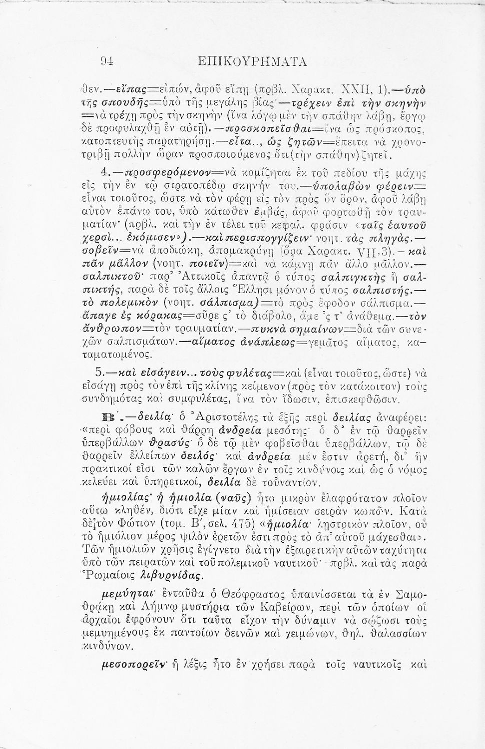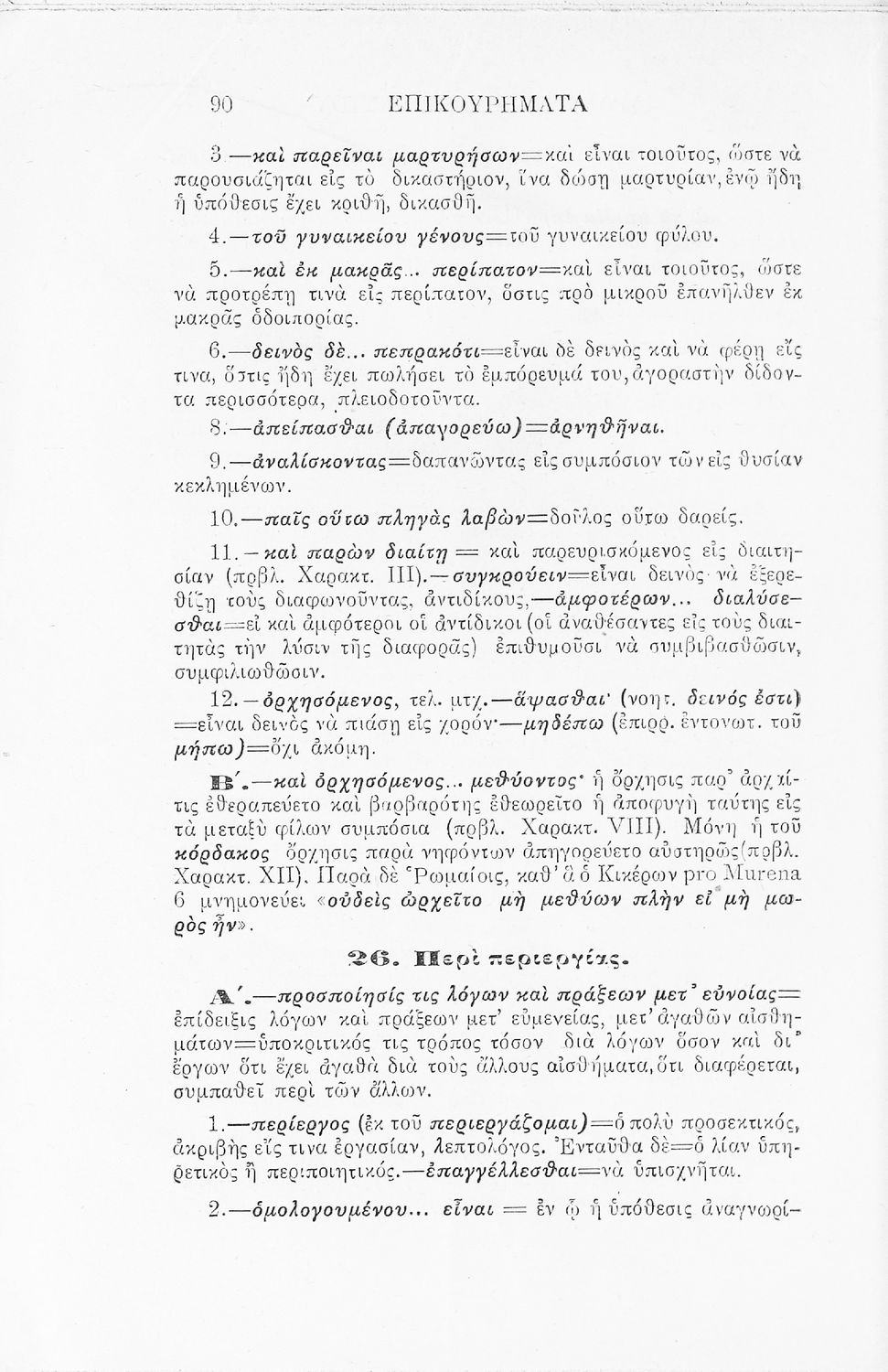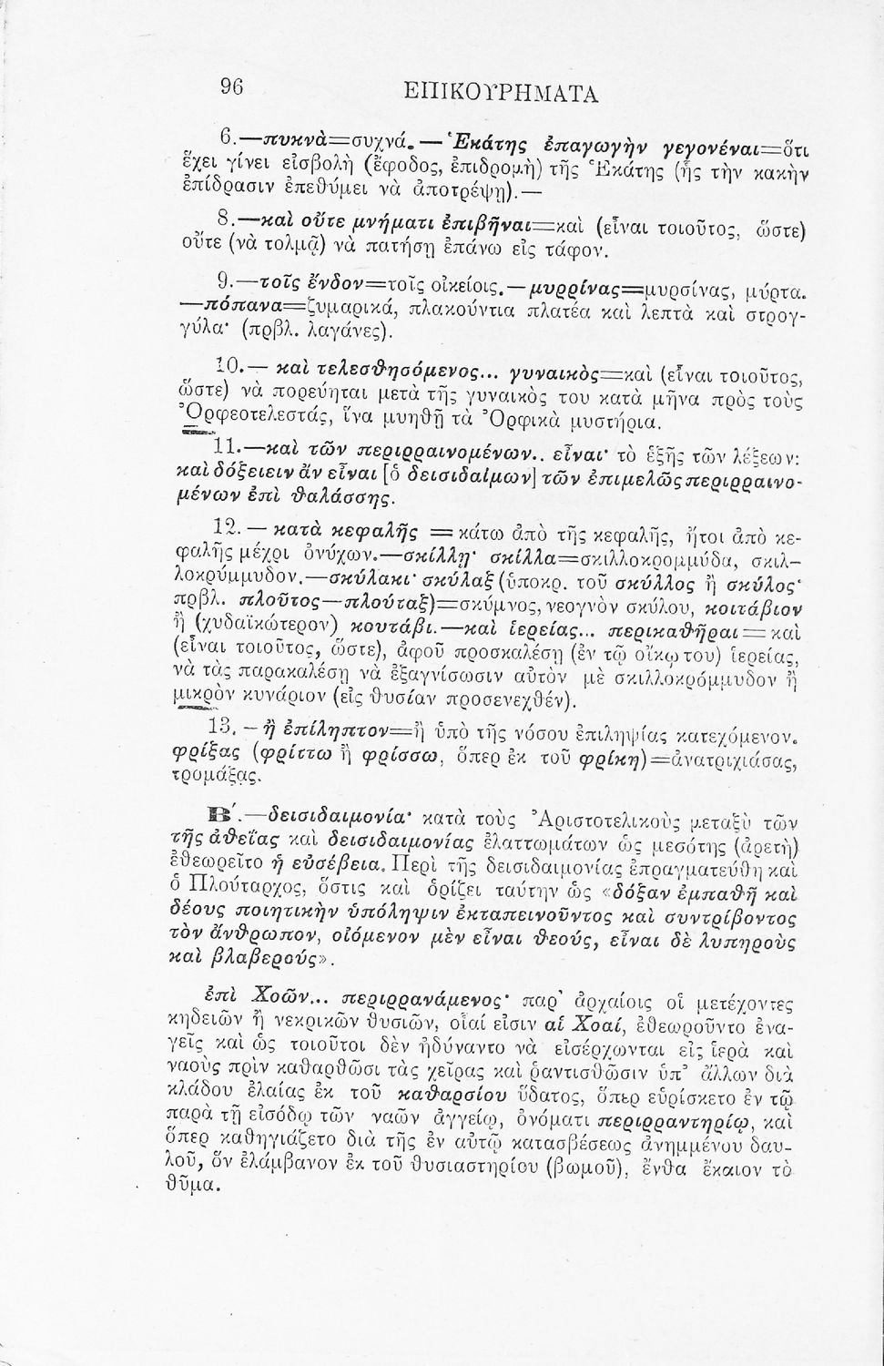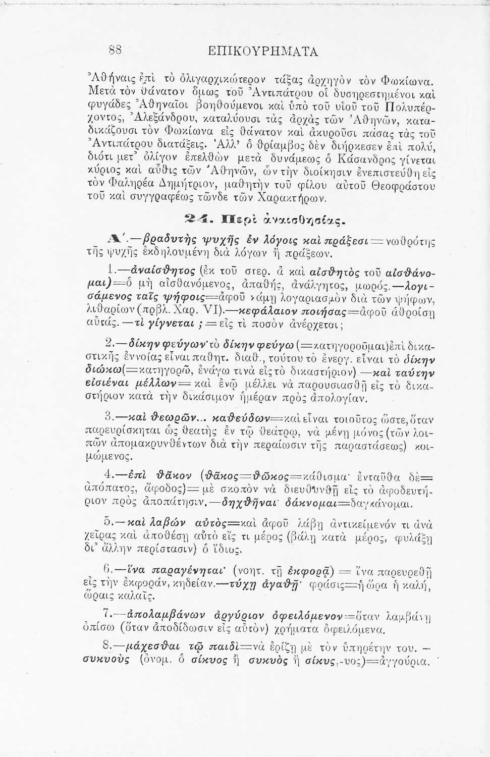 Βαθμίδα εκπαίδευσης: Δευτεροβάθμια Τάξη: Γ' Γυμνασίου Μάθημα: Αρχαία Ελληνικά Γλώσσα: Καθαρεύουσα Παρουσίαση περιεχομένου: Σχολικό εγχειρίδιο Αρχαίων Ελληνικών Γ΄ Γυμνασίου που περιέχει τους Χαρακτήρες του Θεόφραστου, και ερμηνευτικές και πραγματολογικές παρατηρήσεις. |