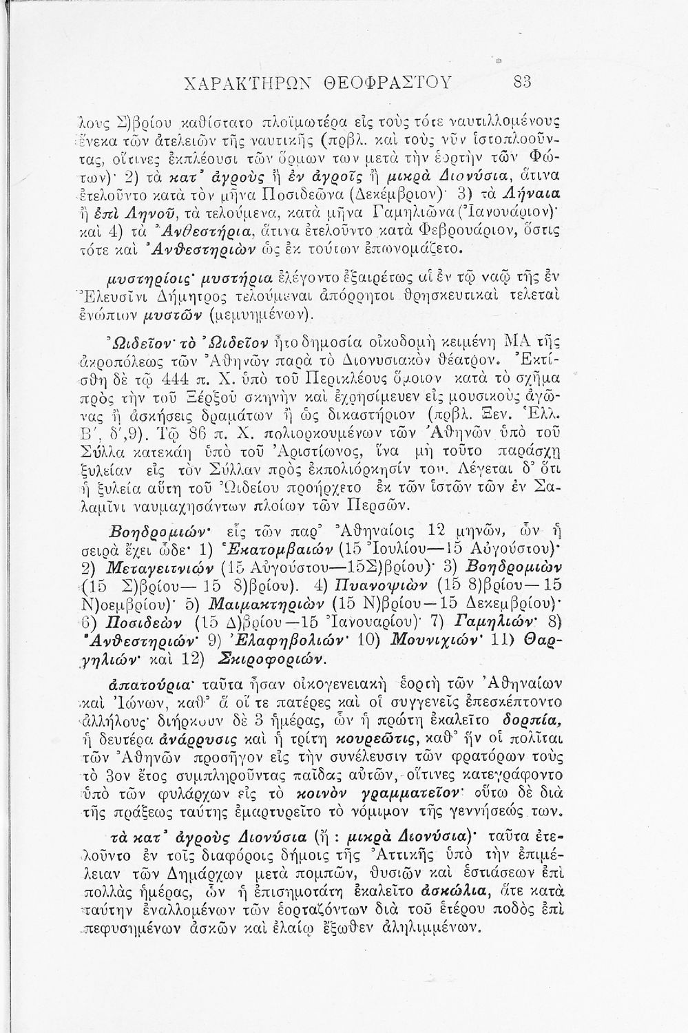 Σχολικό εγχειρίδιο Αρχαίων Ελληνικών Γ΄ Γυμνασίου που περιέχει τους Χαρακτήρες του Θεόφραστου, και ερμηνευτικές και πραγματολογικές παρατηρήσεις.
