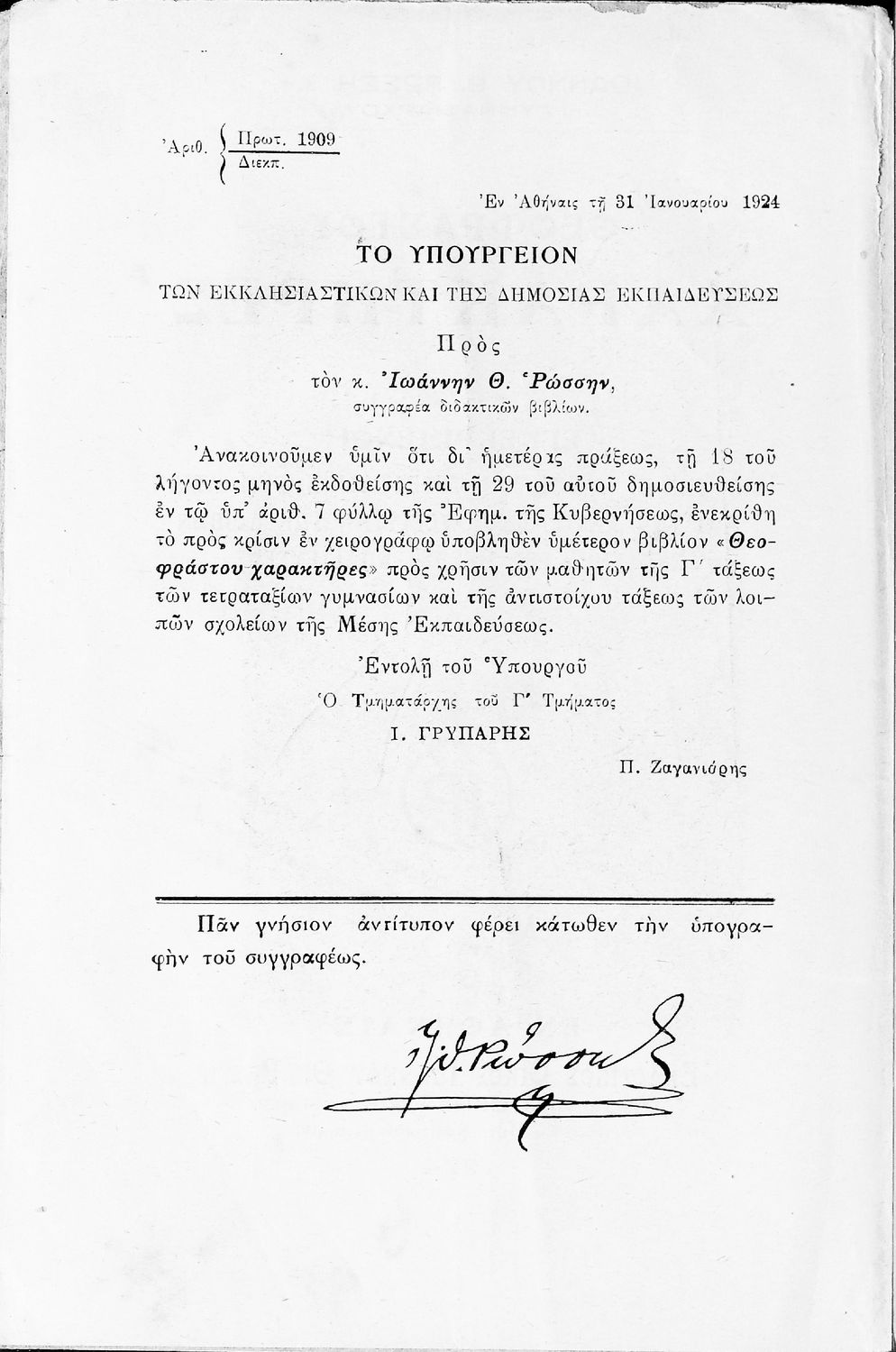 Εκδότης: Εκδοτικός Οίκος: Ιων. Θ. Ρώσσης Έτος έκδοσης: 1924 Τόπος έκδοσης: Αθήνα Υπουργική απόφαση / Σύμβαση: 1909/31-1-1924 Έτος έγκρισης: 1924 |