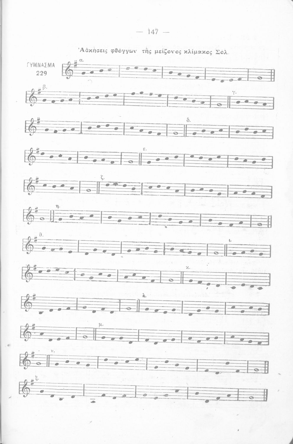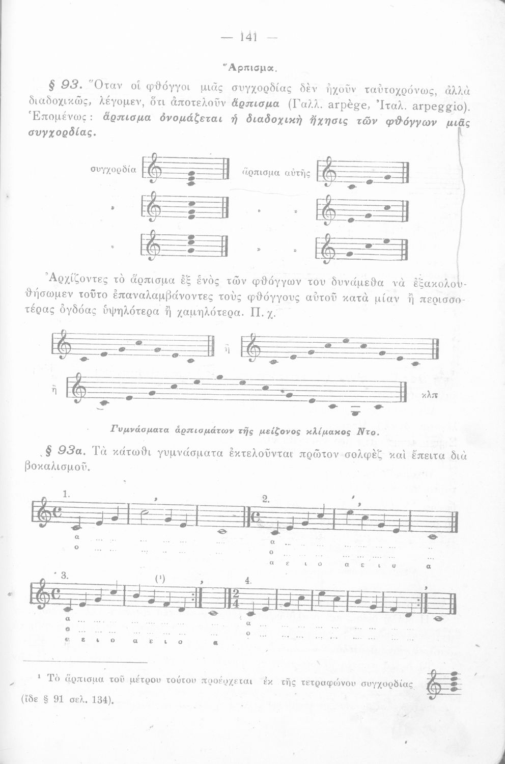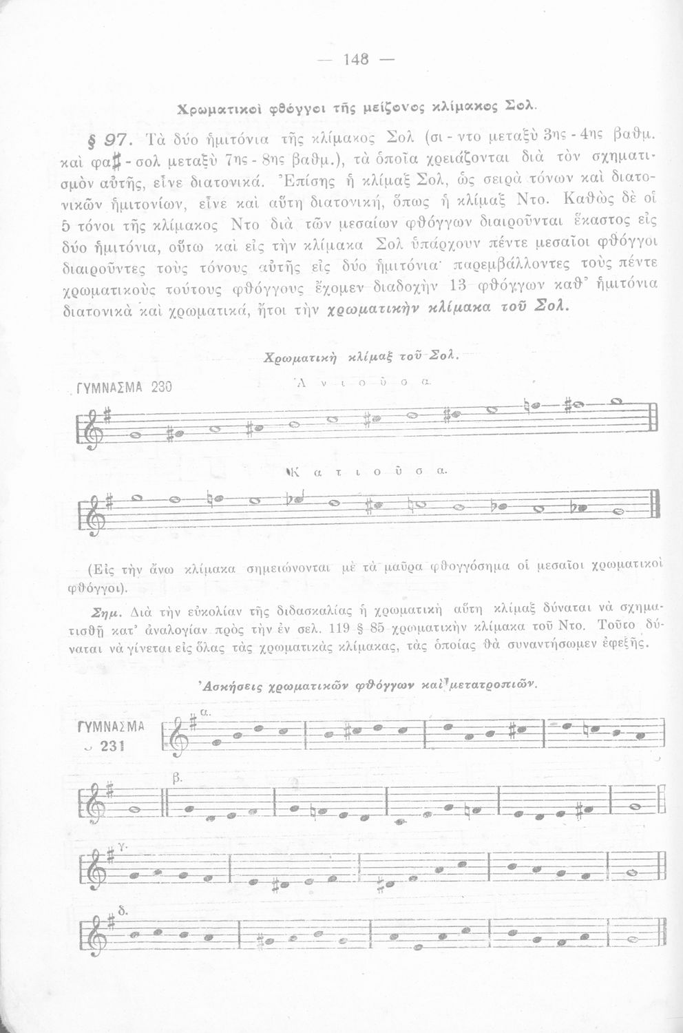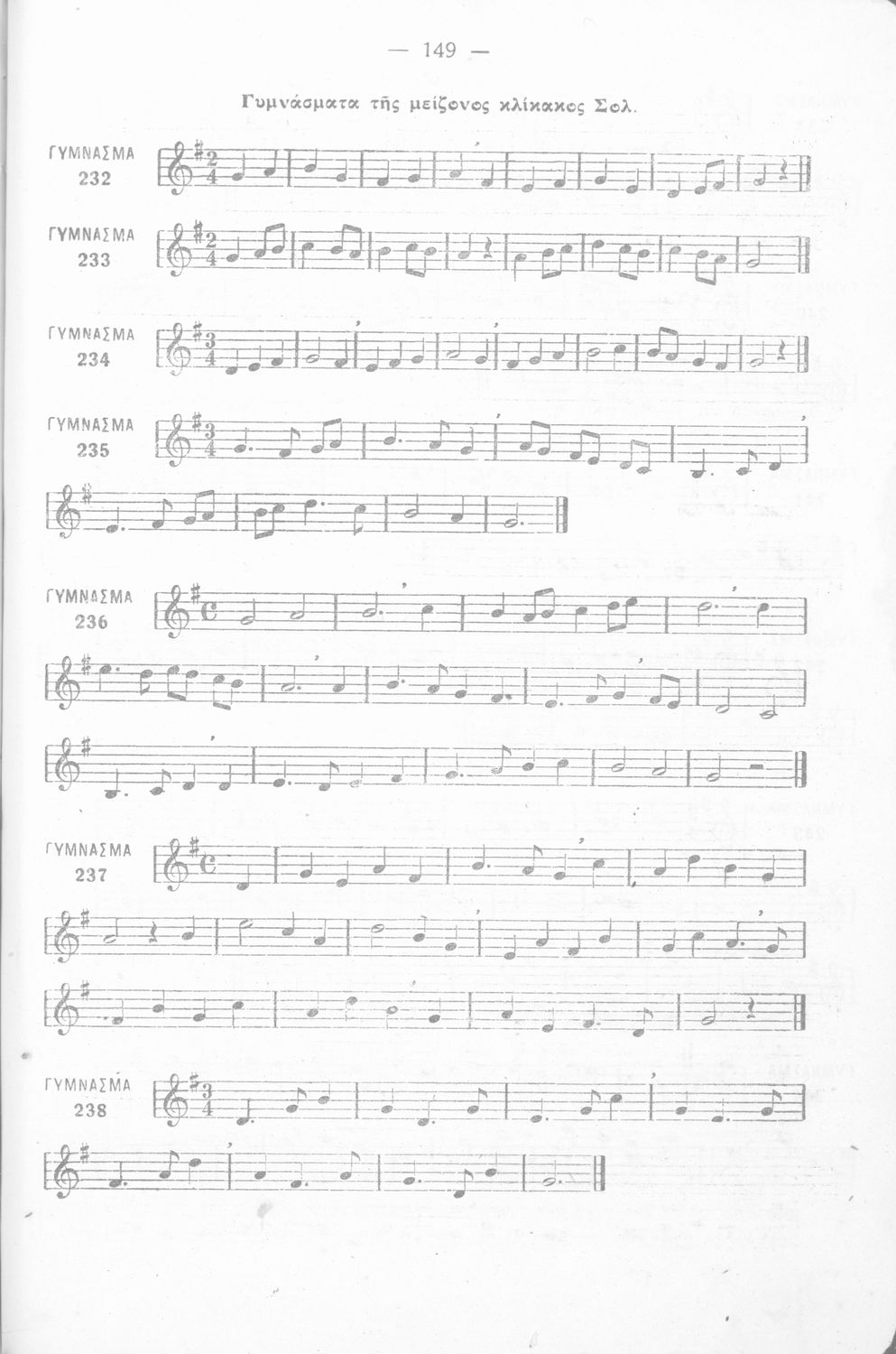 Σχολικό εγχειρίδιο Μουσικής για την Β' τάξη Εξαταξίων και Γ', Δ' τάξη Οκταταξίων σχολείων Μέσης Εκπαιδεύσεως. Περιέχει μείζονες κλίμακες και αλλοιωμένους φθόγγους, μελωδικές ασκήσεις και δίφωνες μελωδικές ...