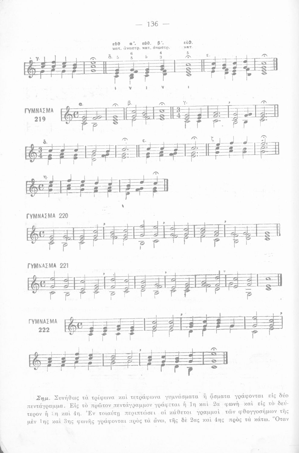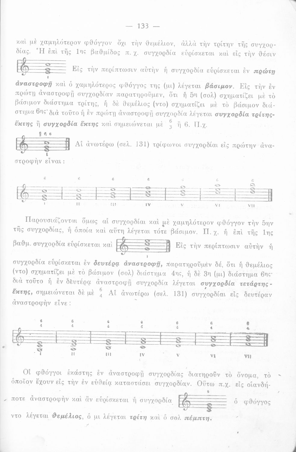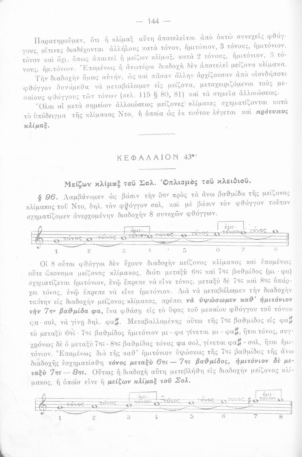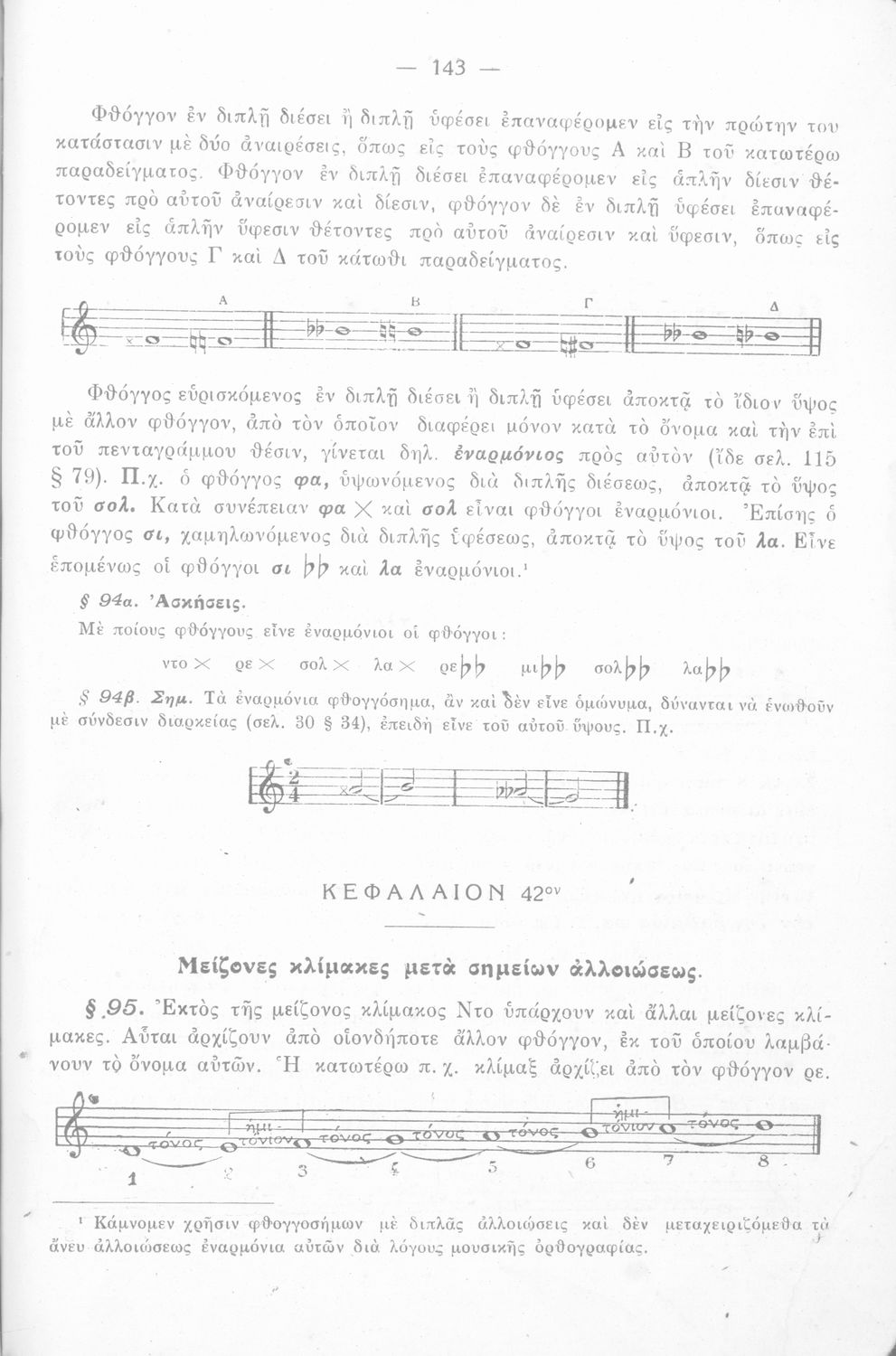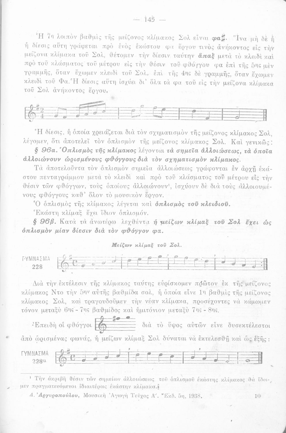 Σχολικό εγχειρίδιο Μουσικής για την Β' τάξη Εξαταξίων και Γ', Δ' τάξη Οκταταξίων σχολείων Μέσης Εκπαιδεύσεως. Περιέχει μείζονες κλίμακες και αλλοιωμένους φθόγγους, μελωδικές ασκήσεις και δίφωνες μελωδικές ...