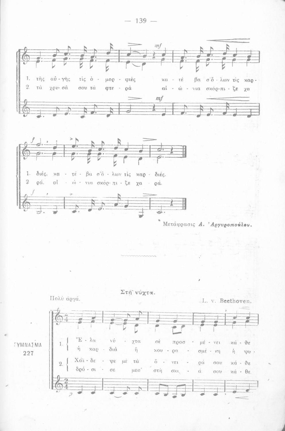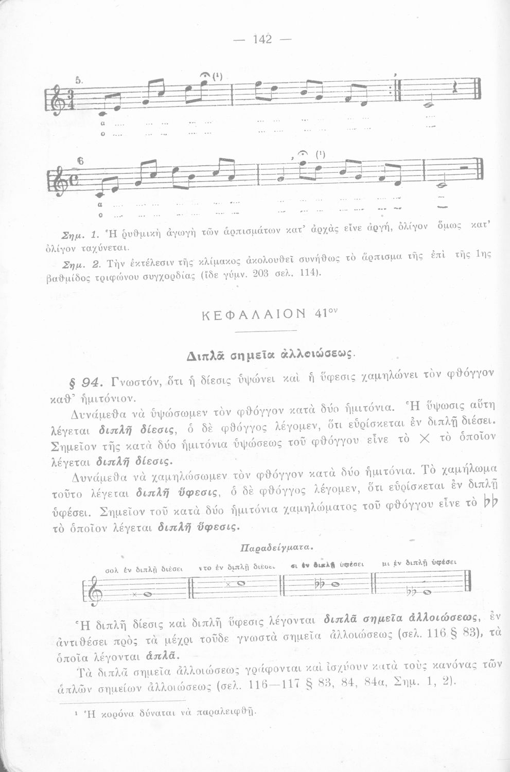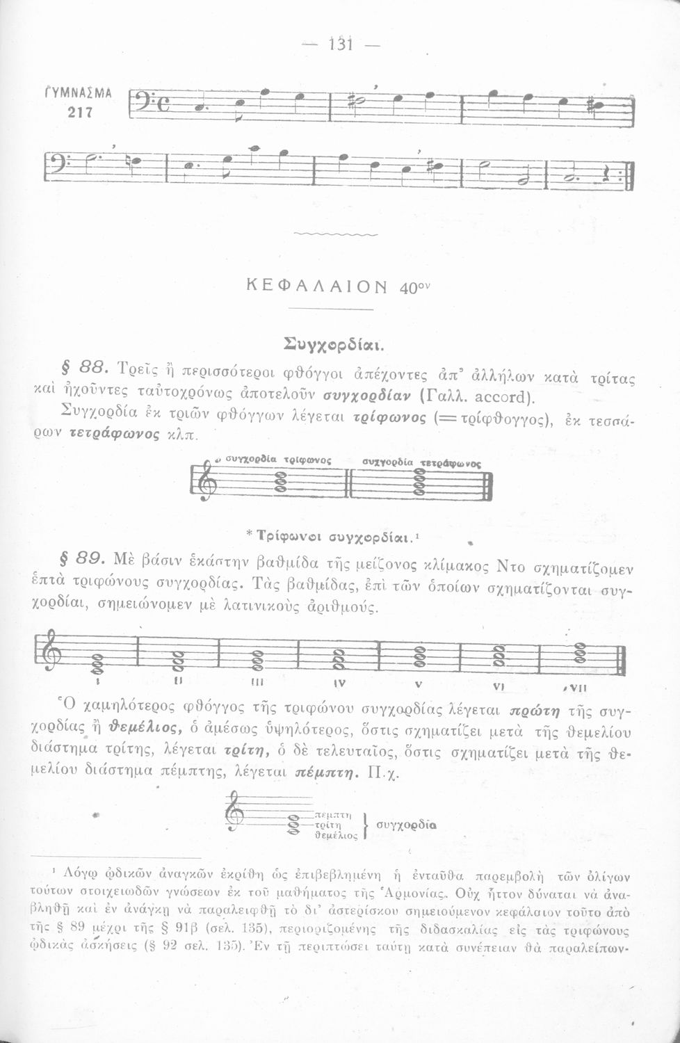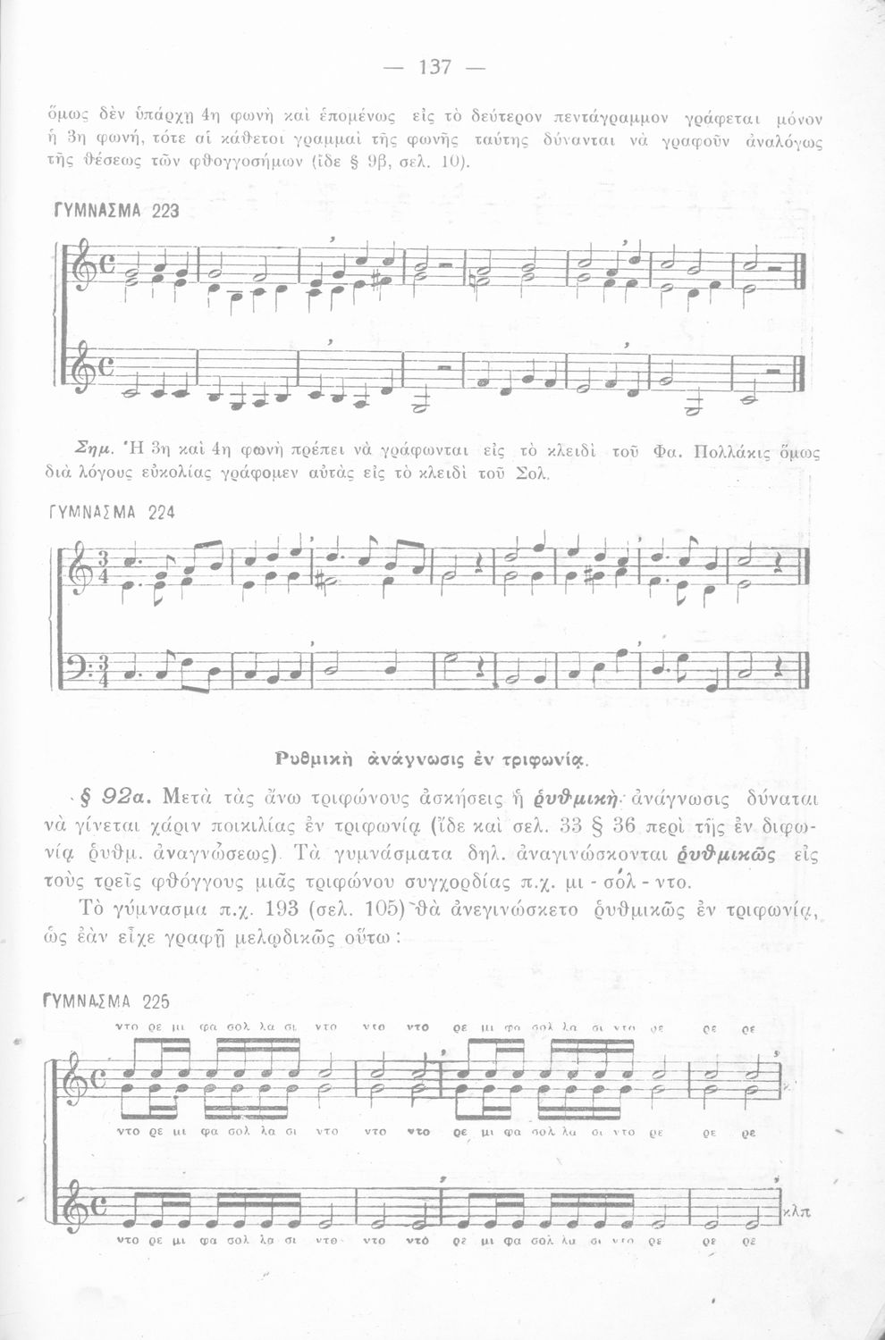 Σχολικό εγχειρίδιο Μουσικής για την Β' τάξη Εξαταξίων και Γ', Δ' τάξη Οκταταξίων σχολείων Μέσης Εκπαιδεύσεως. Περιέχει μείζονες κλίμακες και αλλοιωμένους φθόγγους, μελωδικές ασκήσεις και δίφωνες μελωδικές ...