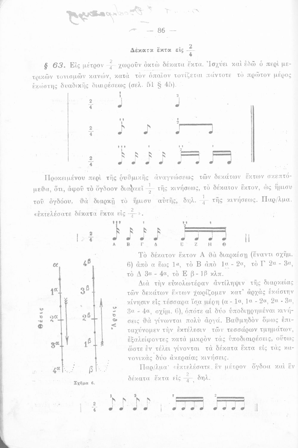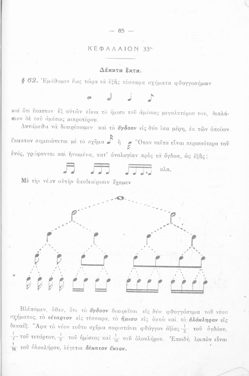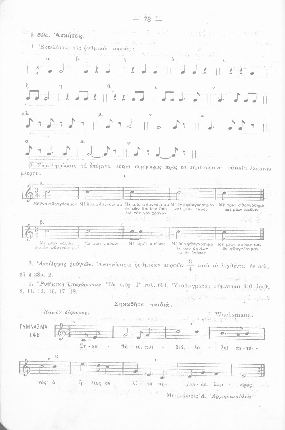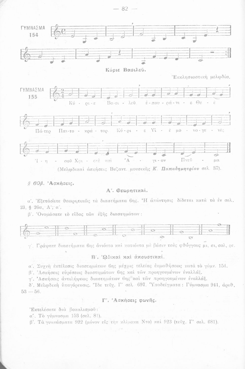 Σχολικό εγχειρίδιο Μουσικής για την Β' τάξη Εξαταξίων και Γ', Δ' τάξη Οκταταξίων σχολείων Μέσης Εκπαιδεύσεως. Περιέχει μείζονες κλίμακες και αλλοιωμένους φθόγγους, μελωδικές ασκήσεις και δίφωνες μελωδικές ...