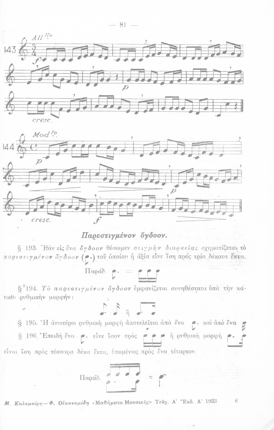 Μαθήματα Μουσικής Τεύχος Α'. Στοιχεία της θεωρίας της Μουσικής, προς χρήσιν των μαθητών των Γυμνασίων, Διδασκαλείων, και προκαταρκτικών τάξεων των Ωδείων και Μουσικών Σχολών