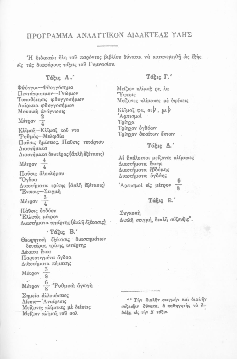 Σχολικό εγχειρίδιο Μουσικής για την Α΄, Β΄ Γυμνασίου, Ανώτερων Παρθεναγωγείων και Α΄ τάξη Διδασκαλείων. Σύστημα διδασκαλίας της Μουσικής με σχετική εγκυκλοπαίδεια σε τρία τεύχη. Ο συγγραφέας υπήρξε καθηγητής ...
