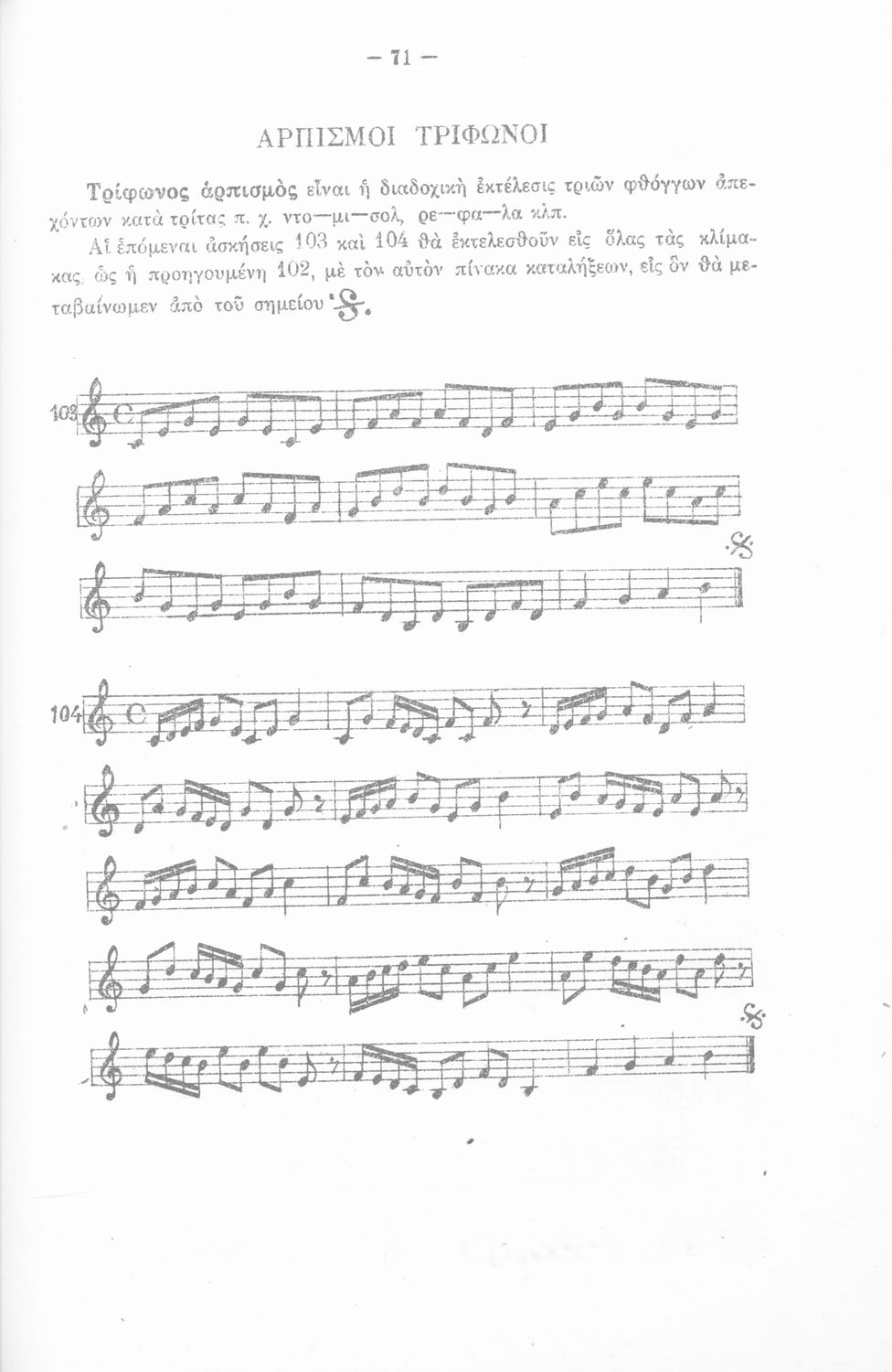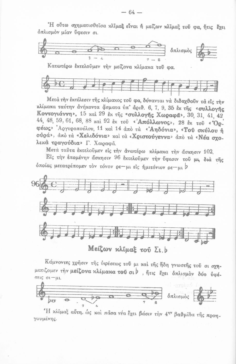 Σχολικό εγχειρίδιο Μουσικής για Γυμνάσια και Διδασκαλεία που περιέχει στοιχεία θεωρίας της μουσικής, μελωδικές ασκήσεις καθώς και σχολικά τραγούδια