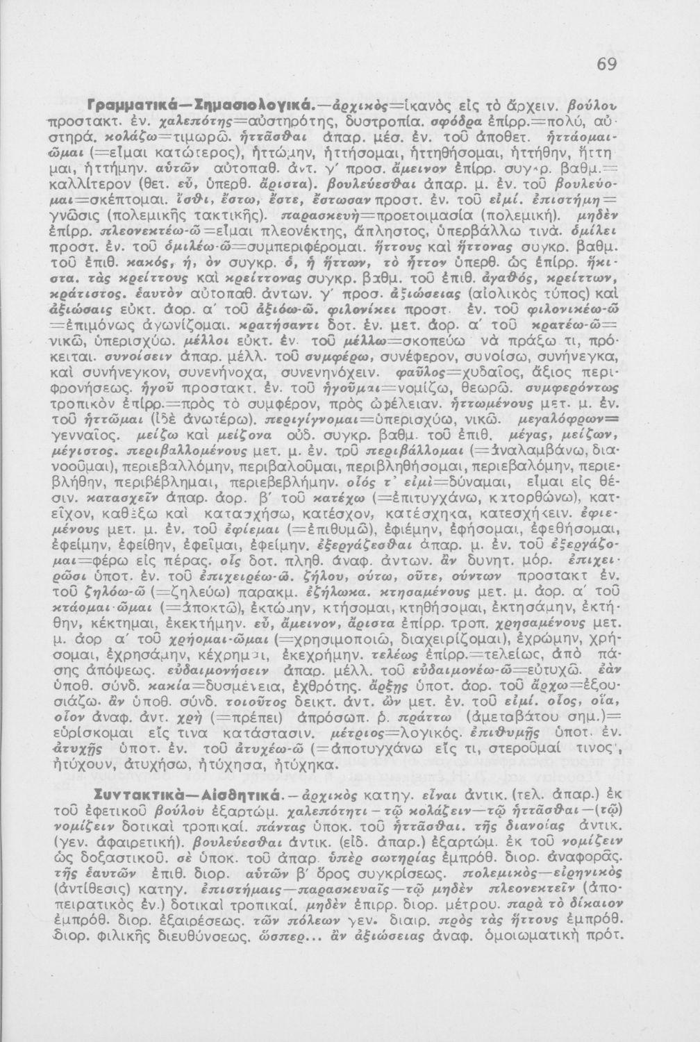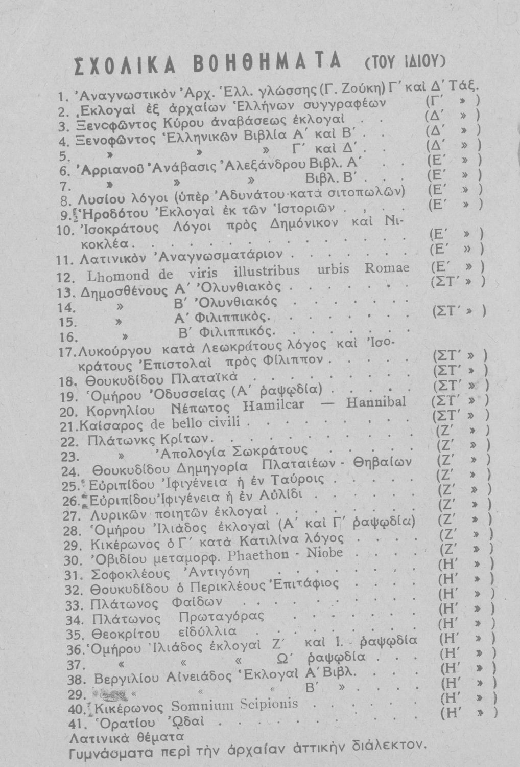 Σχολικό Εγχειρίδιο Αρχαίων Ελληνικών Α' και Β΄ Γυμνασίου που περιλαμβάνει κείμενα προσαρμοσμένα στη διδασκαλία των γραμματικών και συντακτικών φαινομένων, και ερμηνευτικές και λεξιλογικές σημειώσεις.