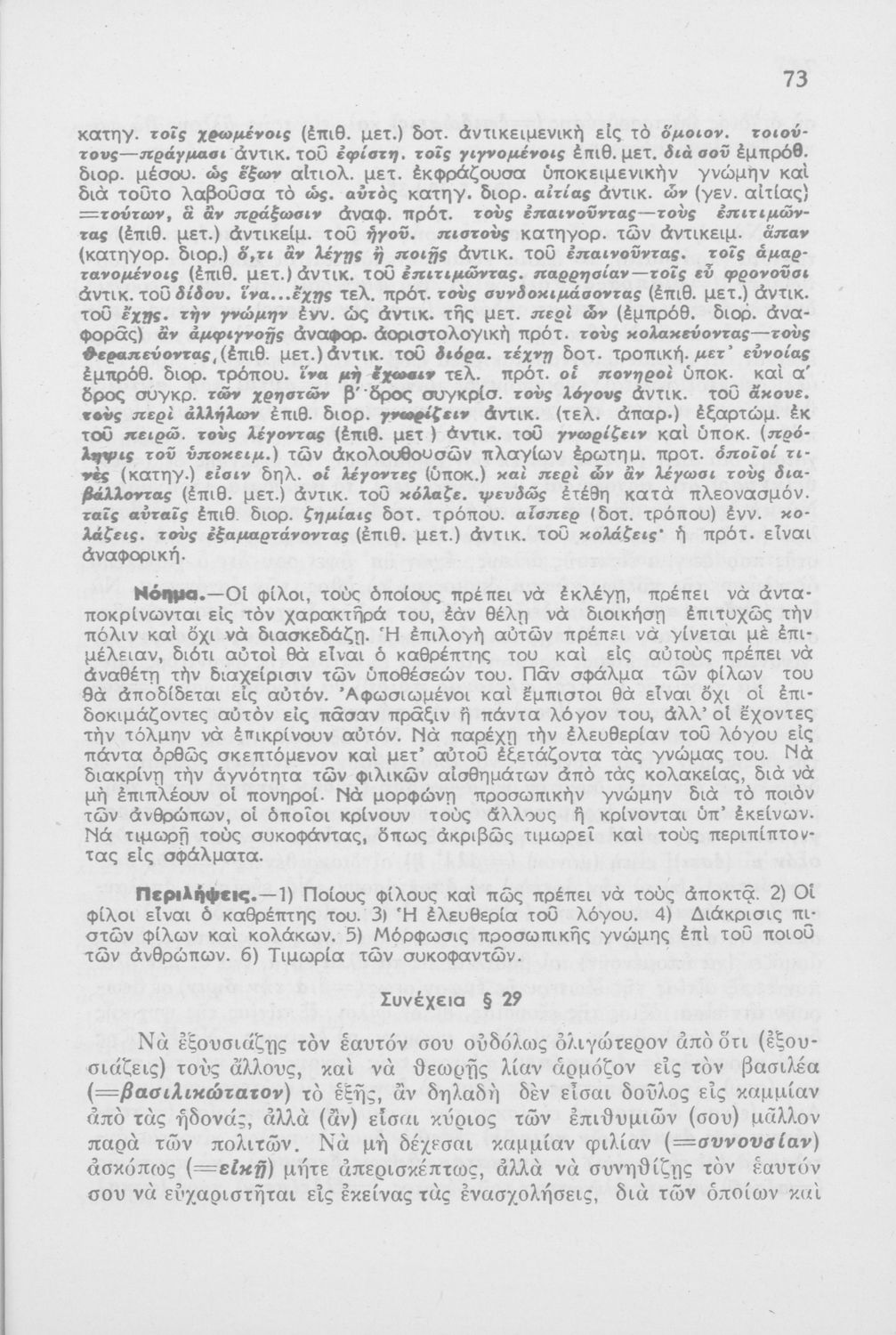 Παρουσίαση περιεχομένου: Μαθητικό βοήθημα Αρχαίων Ελληνικών για τους μαθητές της Ε΄ Οκταταξίου Γυμνασίου που περιλαμβάνει τους Λόγους του Ισοκράτη Προς Δημόνικον και Προς Νικοκλέα, μετάφραση, γραμματικά και συντακτικά σχόλια και ερμηνευτικές σημειώσεις.