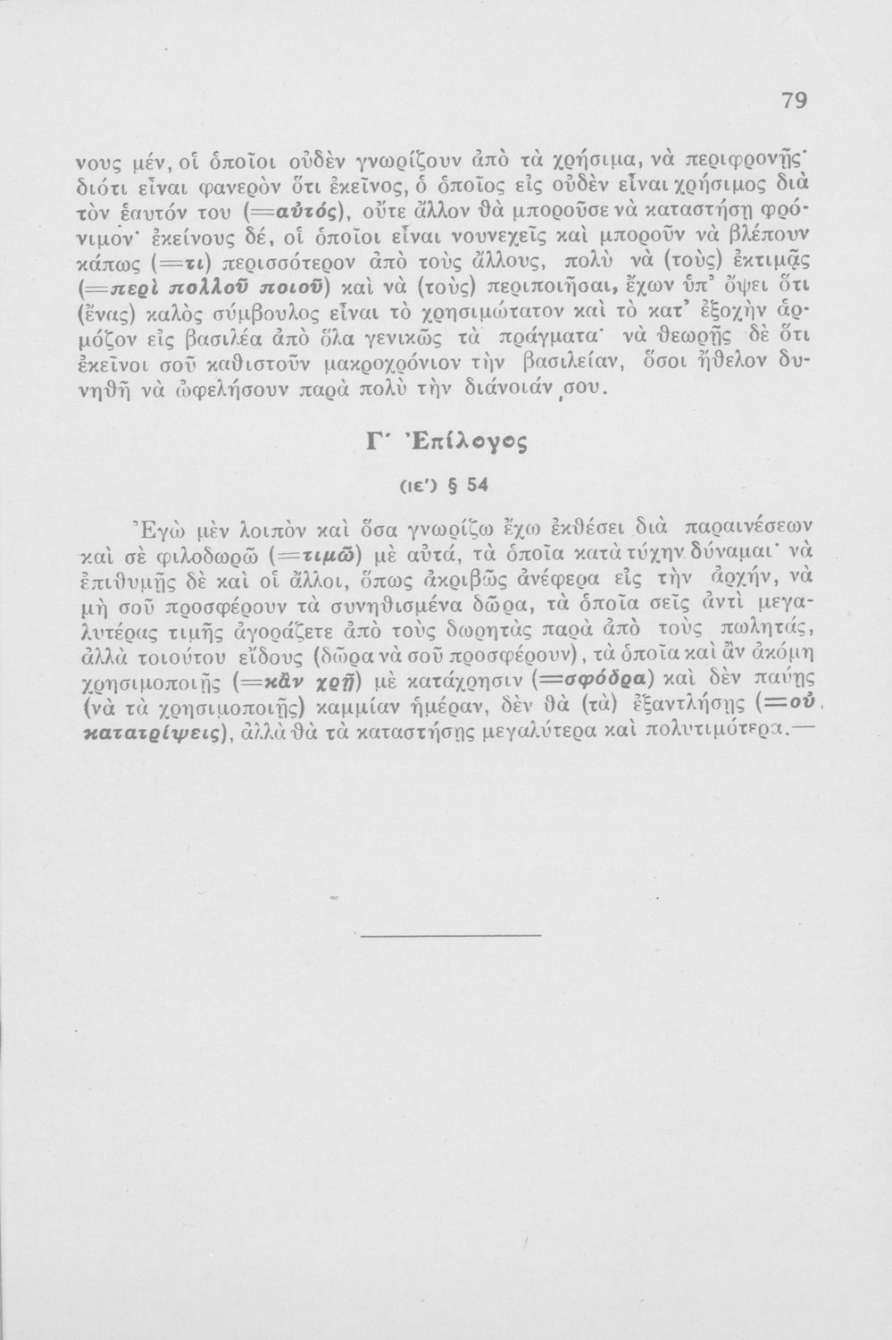 Μαθητικό βοήθημα Αρχαίων Ελληνικών Ε' Γυμνασίου που περιλαμβάνει μετάφραση των Λόγων του Ισοκράτη Προς Δημόνικον, Προς Νικοκλέα και Ευαγόρας, ερμηνευτικά, γραμματικά και συντακτικά σχόλια.