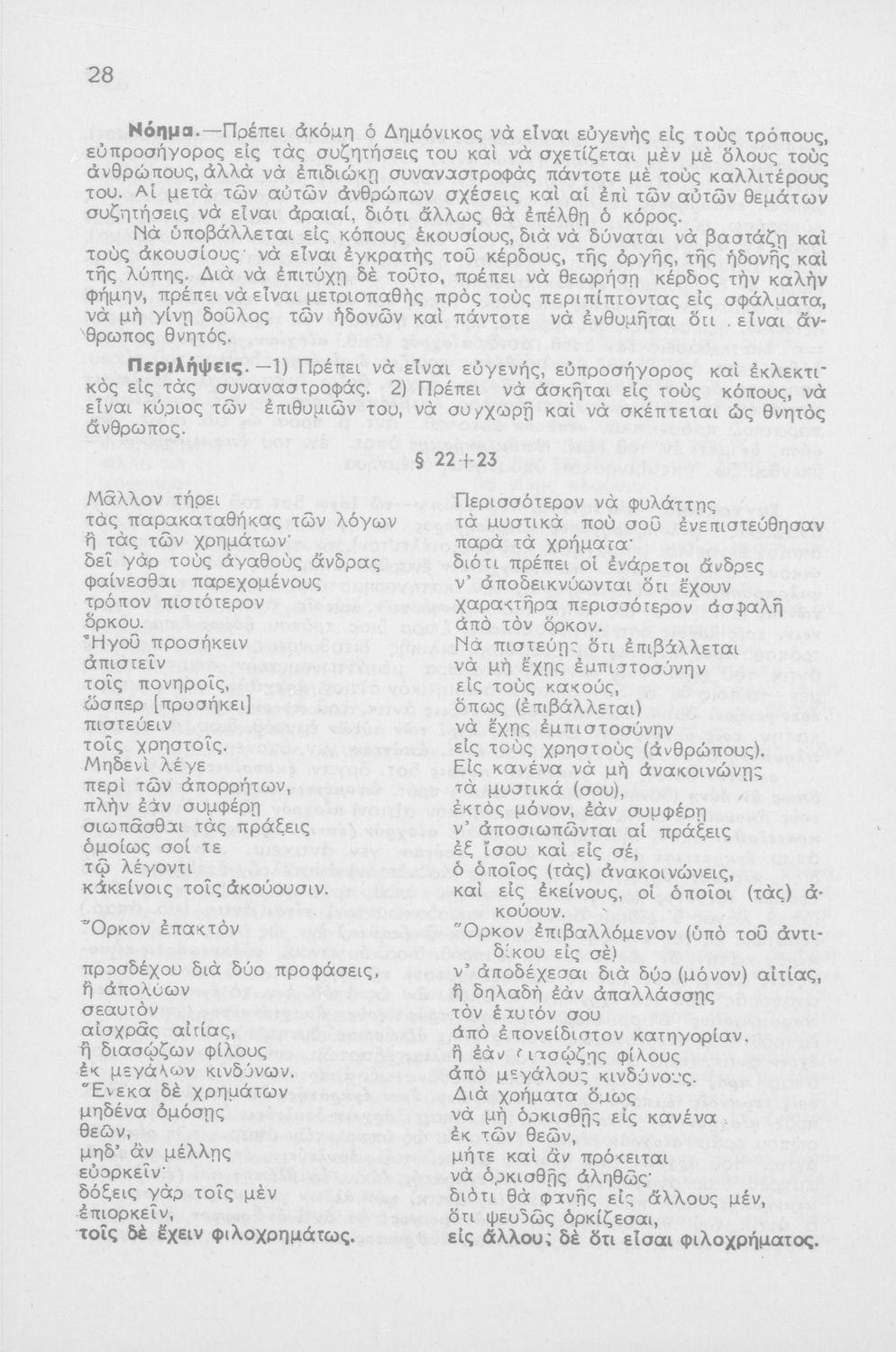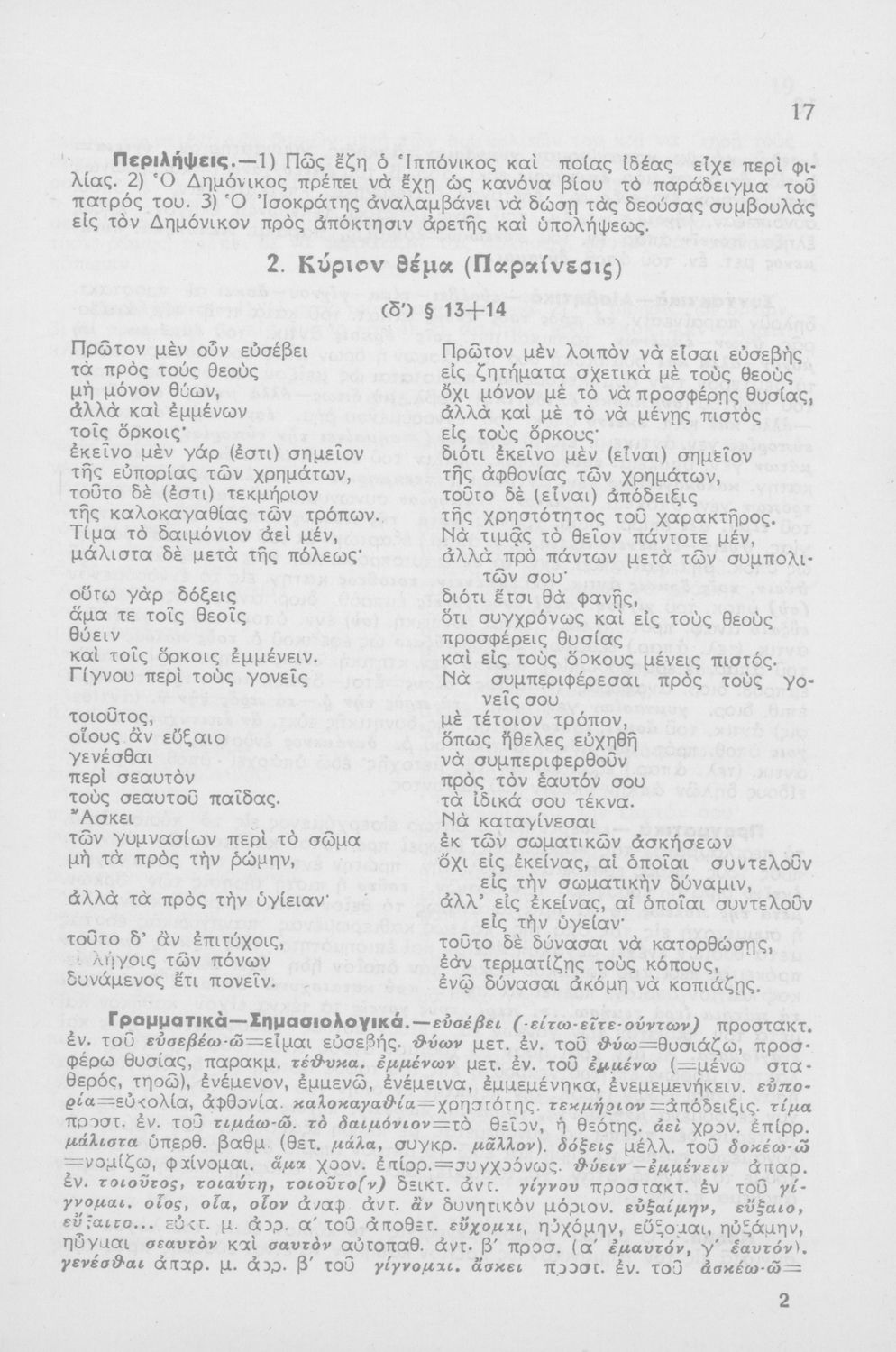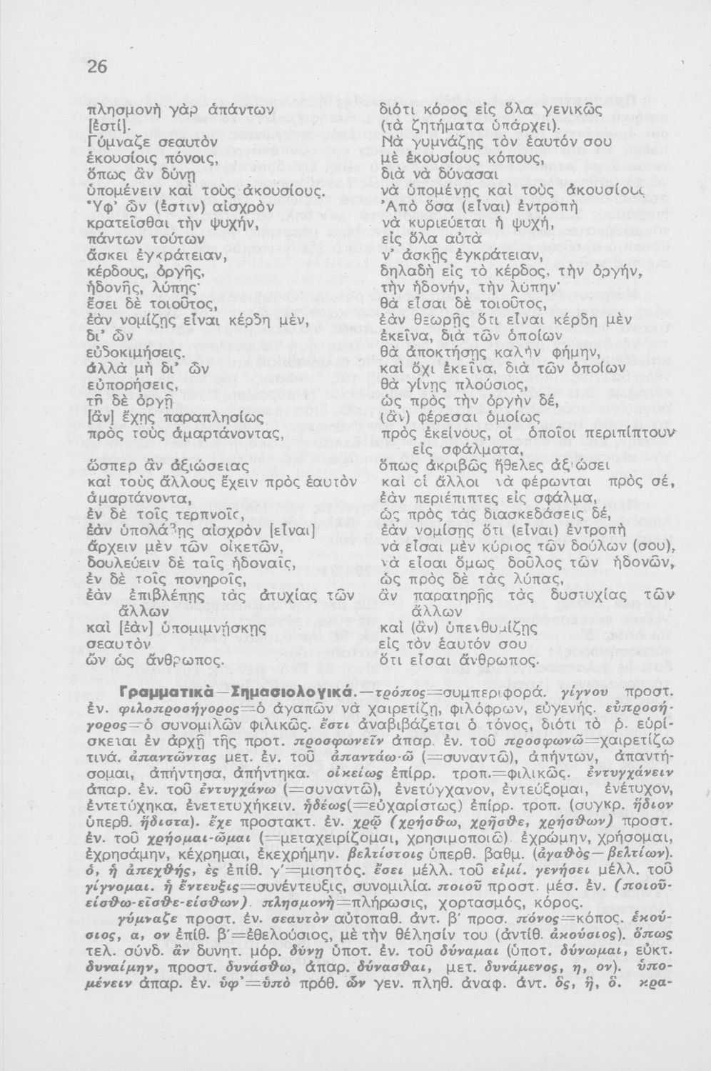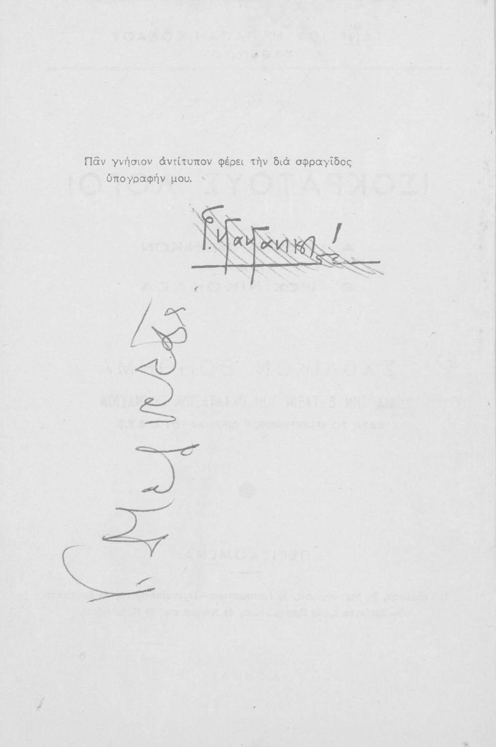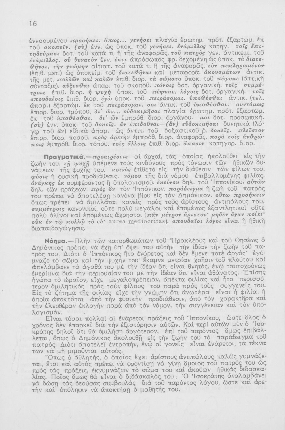 Μαθητικό βοήθημα Αρχαίων Ελληνικών για τους μαθητές της Ε΄ Οκταταξίου Γυμνασίου που περιλαμβάνει τους Λόγους του Ισοκράτη Προς Δημόνικον και Προς Νικοκλέα, μετάφραση, γραμματικά και συντακτικά σχόλια και ερμηνευτικές σημειώσεις.