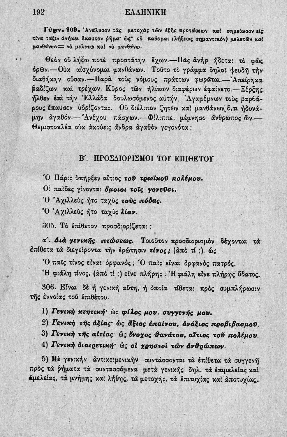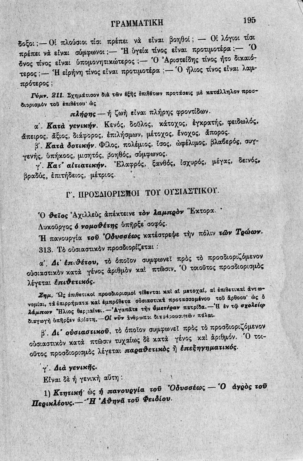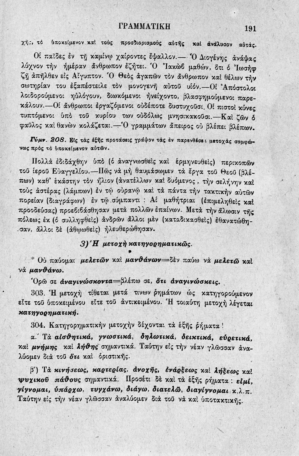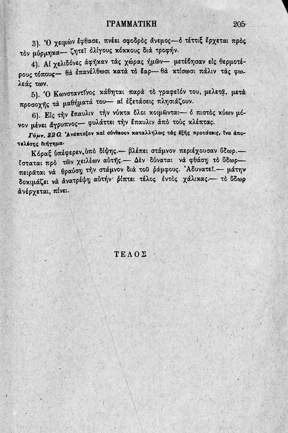 Σχολικό εγχειρίδιο Αρχαίων Ελληνικών Δημοτικού που περιλαμβάνει τους κανόνες γραμματικής και είναι χωρισμένο σε φθογγολογικό, τυπικό και ετυμολογικό μέρος.