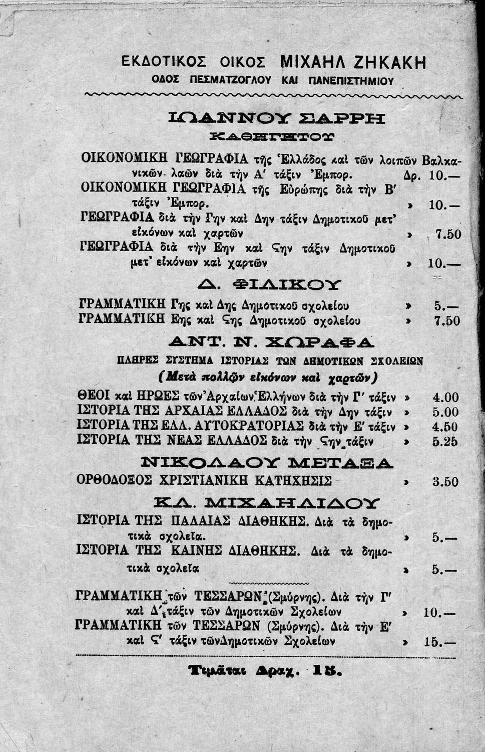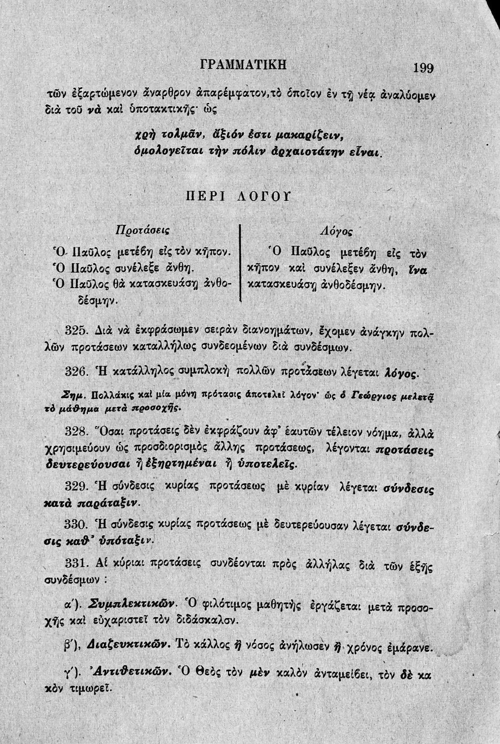 Σχολικό εγχειρίδιο Γ΄ και Δ΄ Δημοτικού που περιέχει τη γραμματικής της νέας ελληνικής. Την έκδοση επιμελήθηκε ο Γ. Λογοθέτης, τέως διευθυντής του επταταξίου δημ. Τμήμ.της Ευαγγελικής Σχολής.