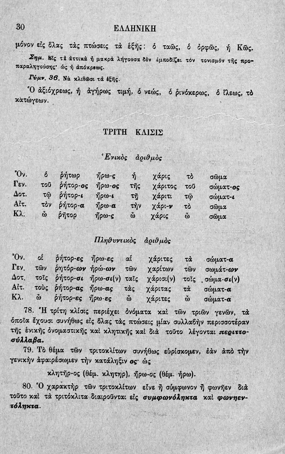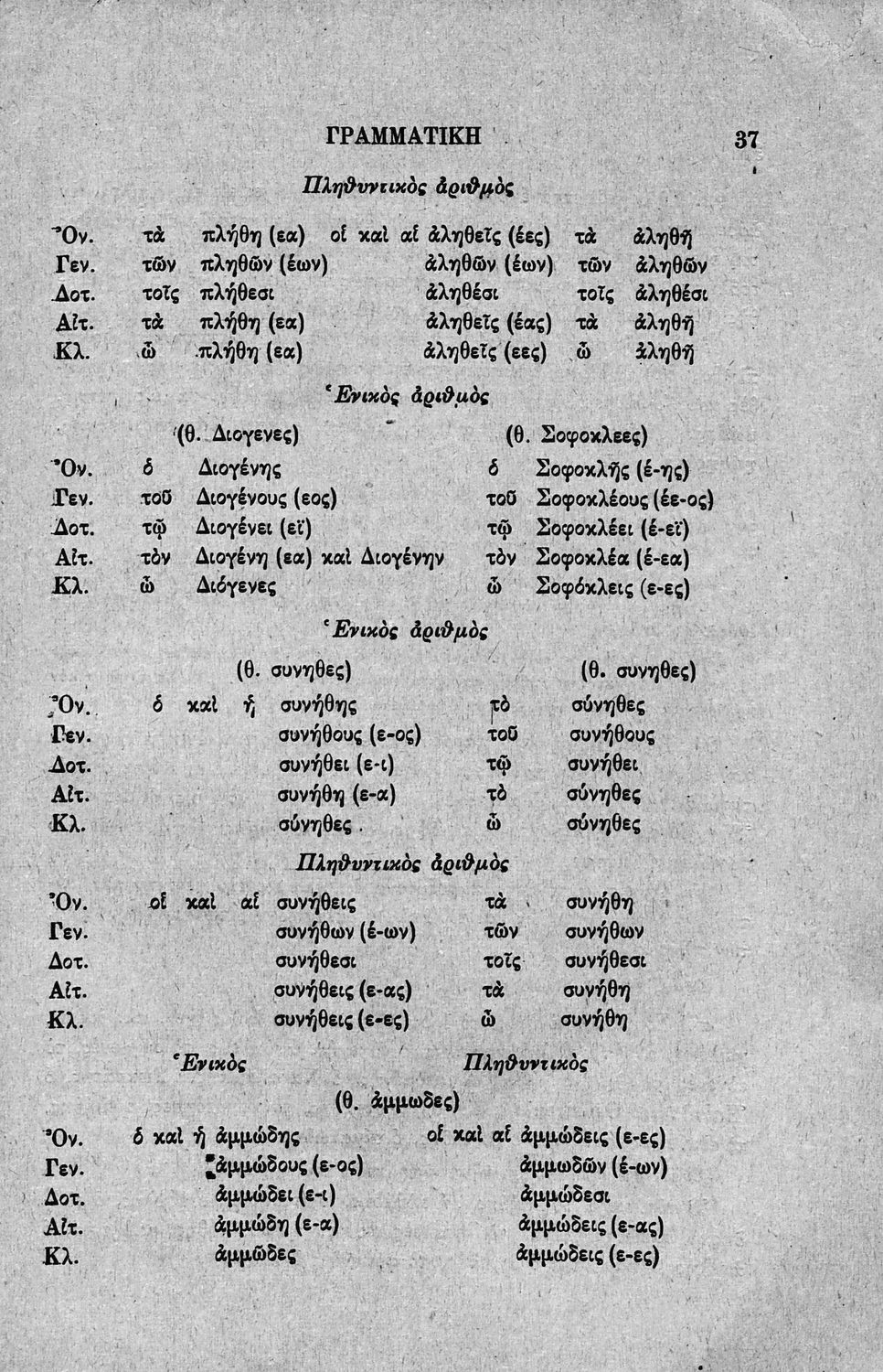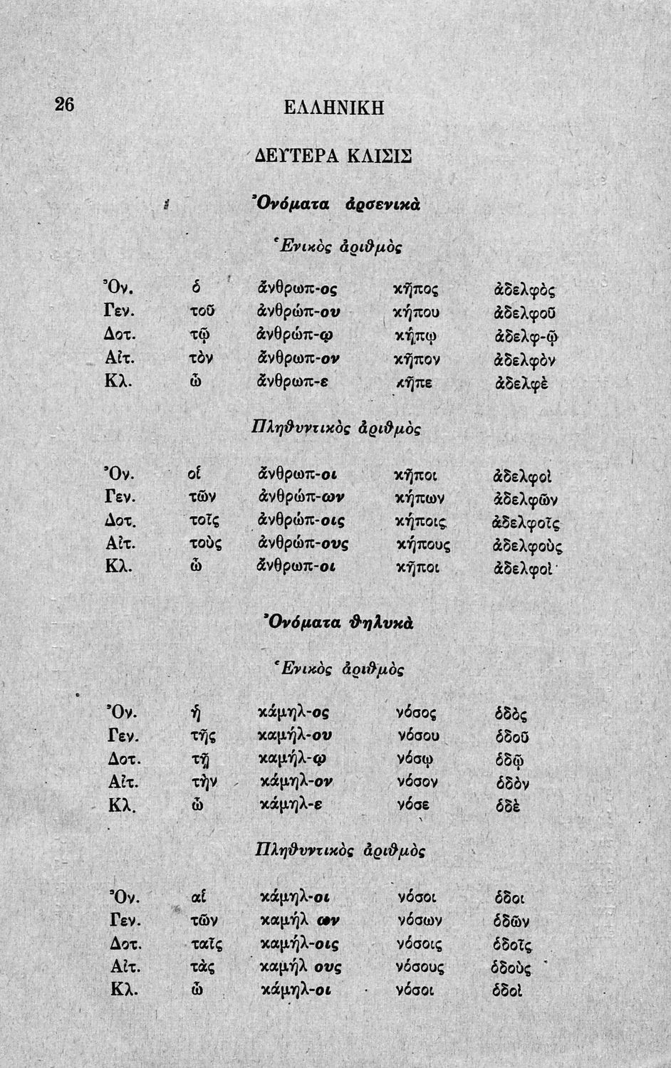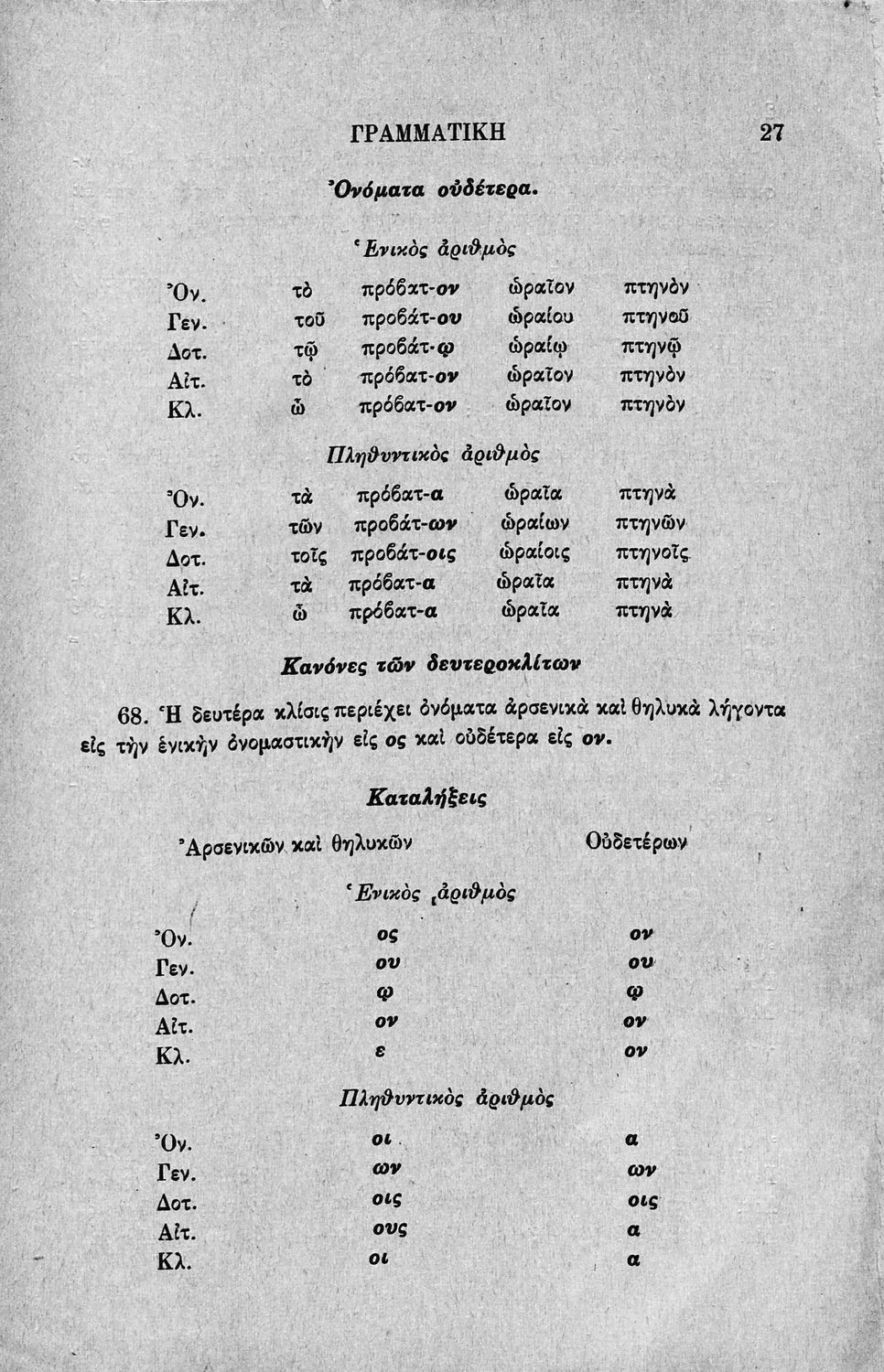 Σχολικό εγχειρίδιο Αρχαίων Ελληνικών Δημοτικού που περιλαμβάνει τους κανόνες γραμματικής και είναι χωρισμένο σε φθογγολογικό, τυπικό και ετυμολογικό μέρος.