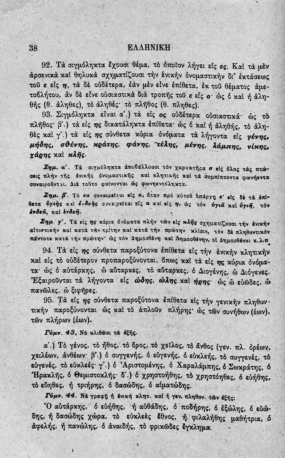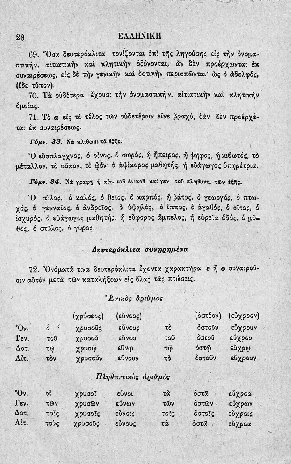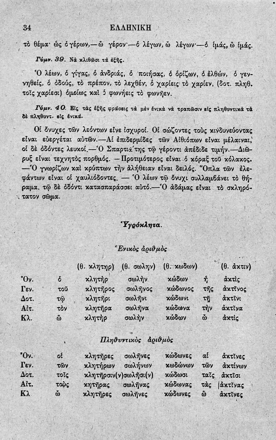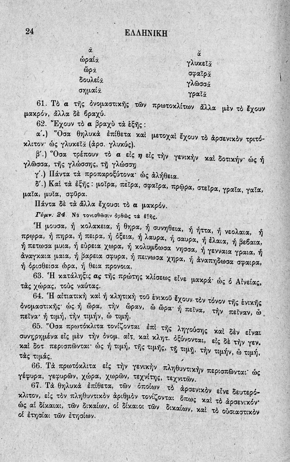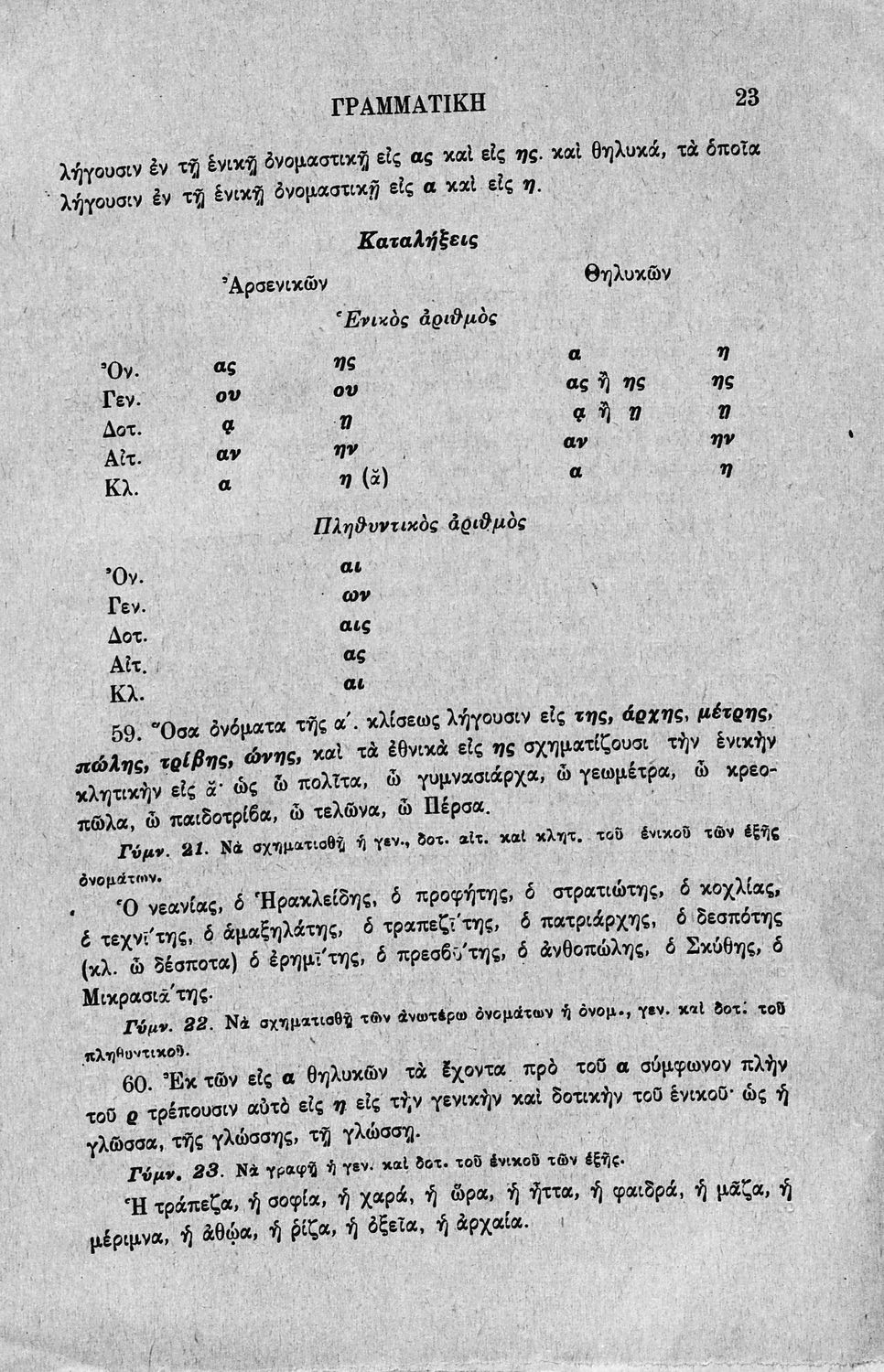 Σχολικό εγχειρίδιο Αρχαίων Ελληνικών Δημοτικού που περιλαμβάνει τους κανόνες γραμματικής και είναι χωρισμένο σε φθογγολογικό, τυπικό και ετυμολογικό μέρος.