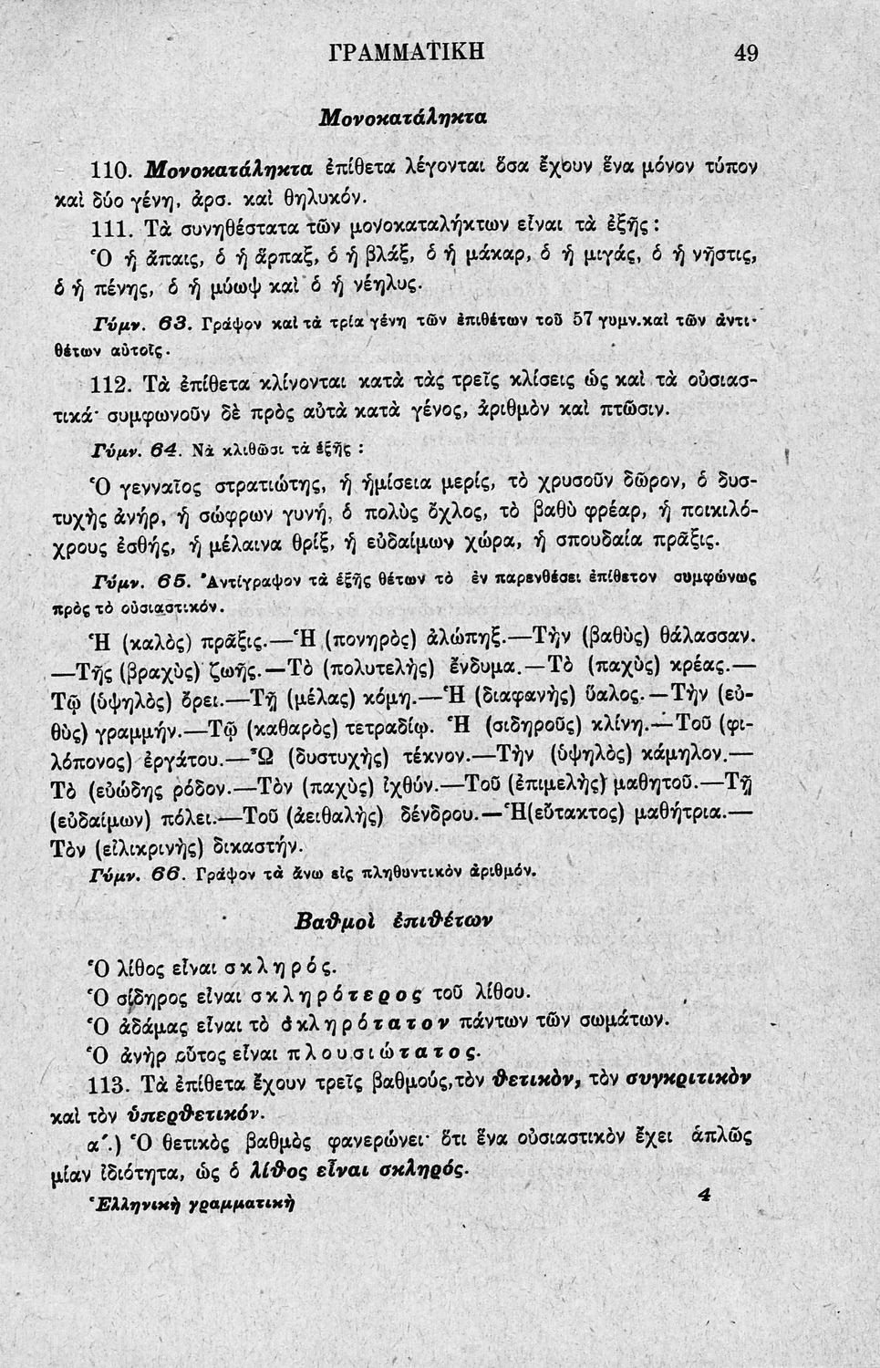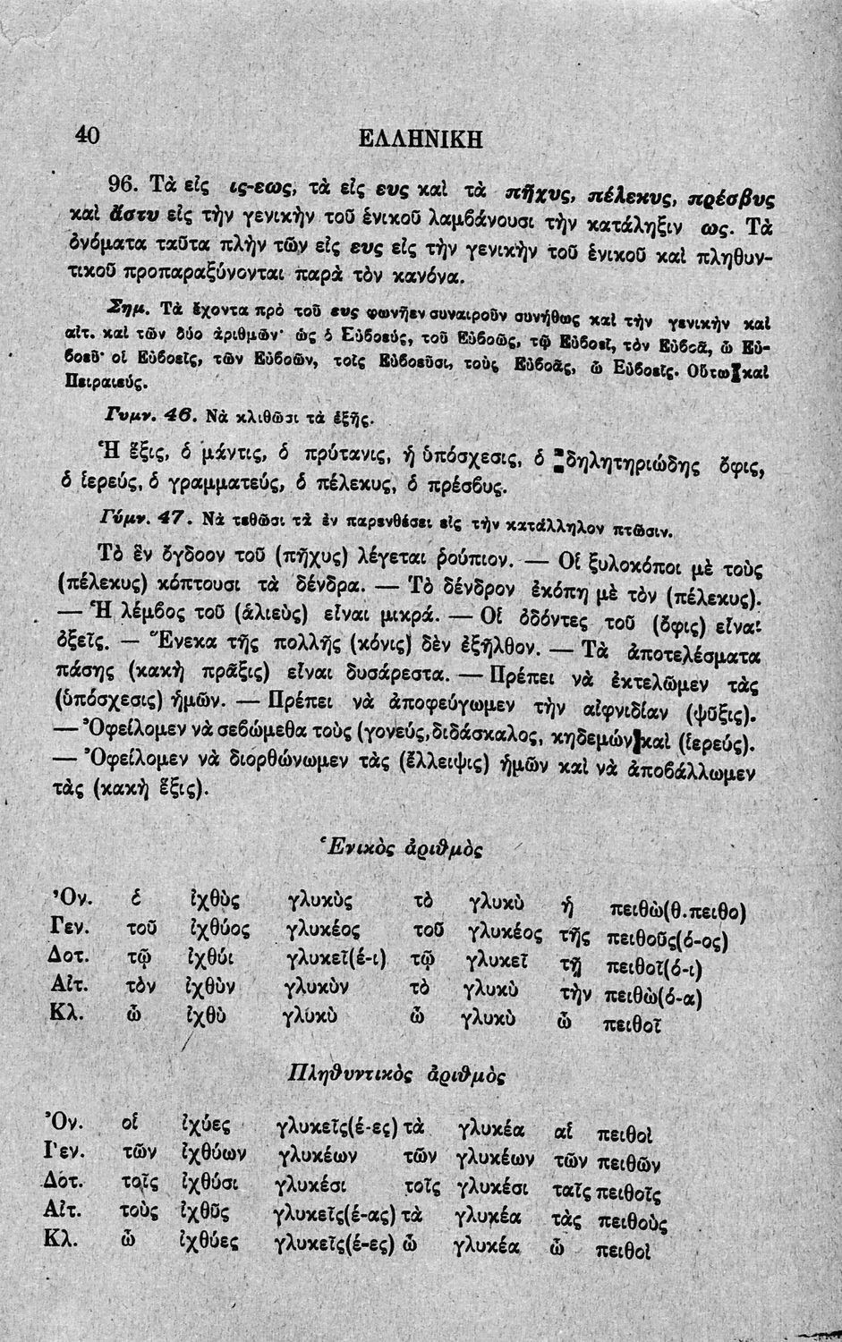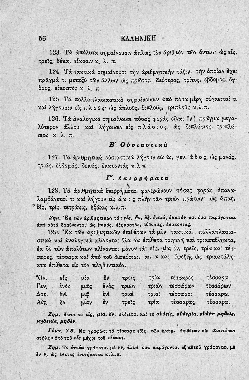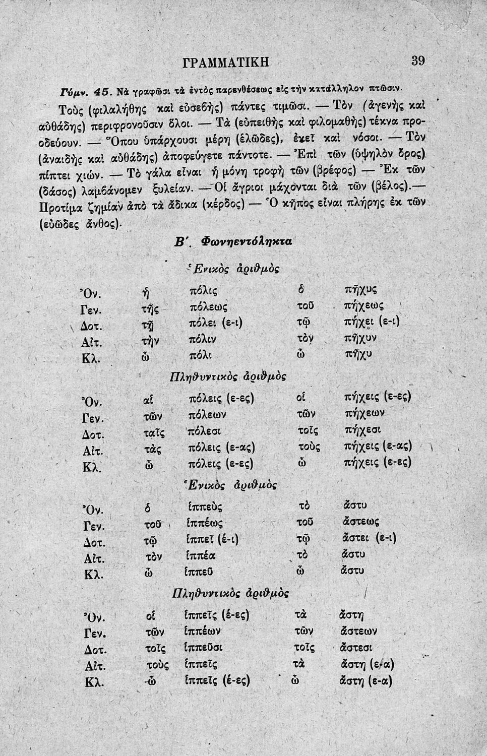 Βαθμίδα εκπαίδευσης: Πρωτοβάθμια Τάξη: Ε' Δημοτικού / ΣΤ' Δημοτικού Μάθημα: Νέα Ελληνικά Γλώσσα: Καθαρεύουσα Παρουσίαση περιεχομένου: Σχολικό εγχειρίδιο Γλώσσας Ε΄ και ΣΤ΄ Δημοτικού που περιλαμβάνει τους κανόνες γραμματικής της νέας ελληνικής. |