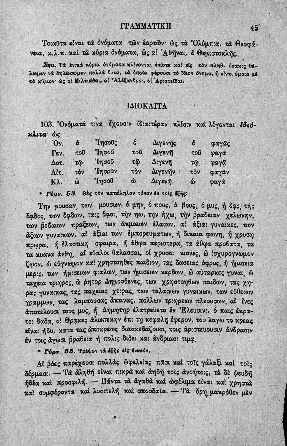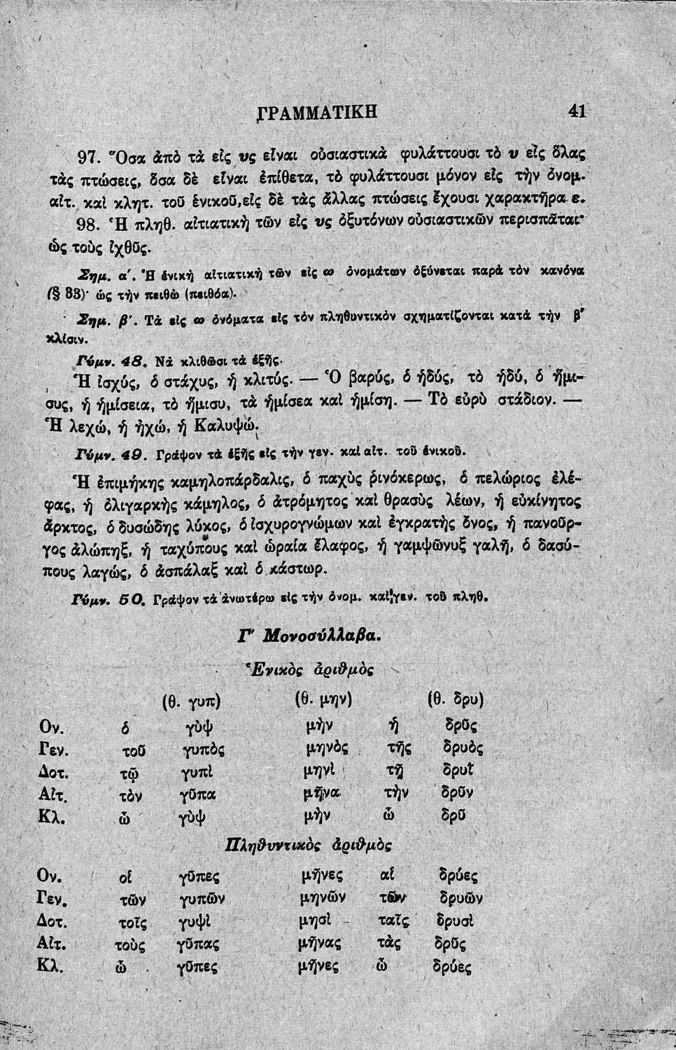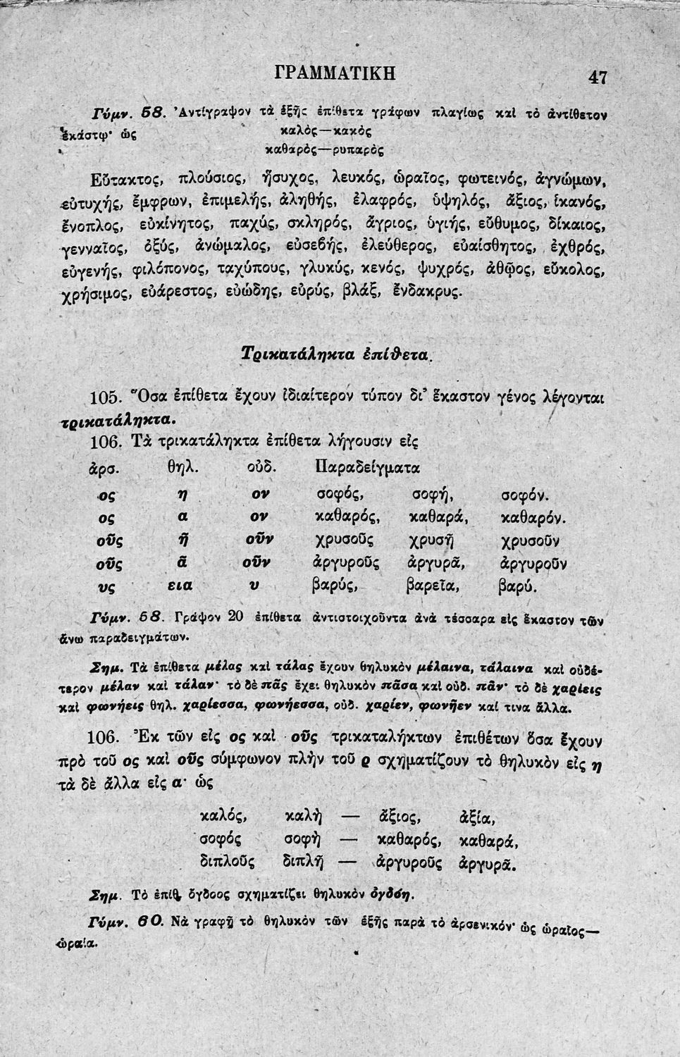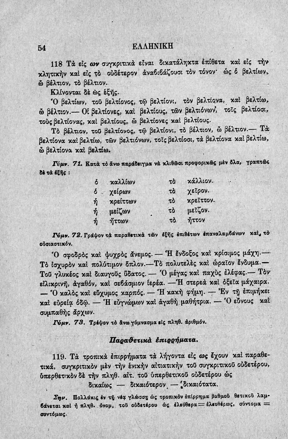 Βαθμίδα εκπαίδευσης: Πρωτοβάθμια Τάξη: Ε' Δημοτικού / ΣΤ' Δημοτικού Μάθημα: Νέα Ελληνικά Γλώσσα: Καθαρεύουσα Παρουσίαση περιεχομένου: Σχολικό εγχειρίδιο Γλώσσας Ε΄ και ΣΤ΄ Δημοτικού που περιλαμβάνει τους κανόνες γραμματικής της νέας ελληνικής. |