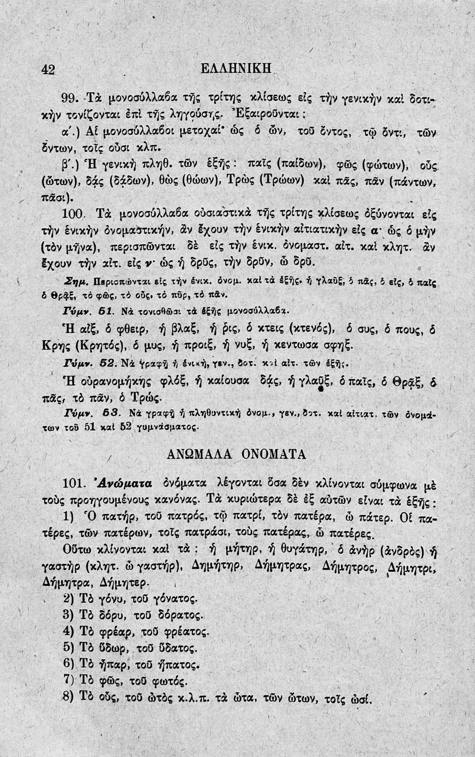 Σχολικό εγχειρίδιο Γλώσσας Ε΄ και ΣΤ΄ Δημοτικού που περιλαμβάνει τους κανόνες γραμματικής της νέας ελληνικής.
