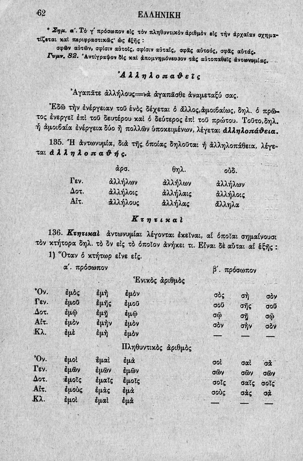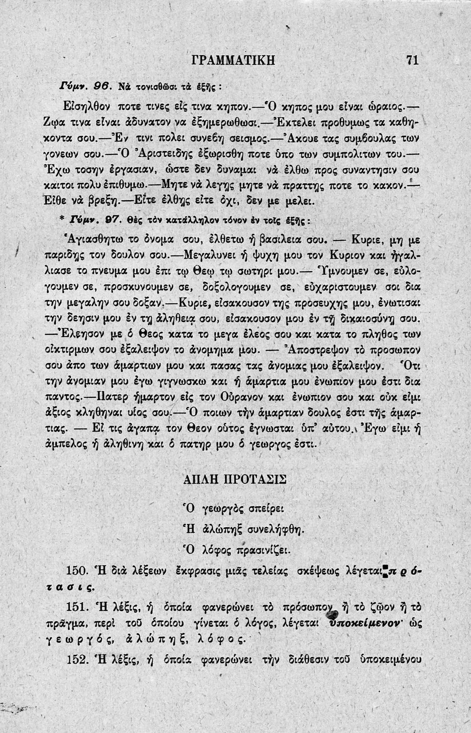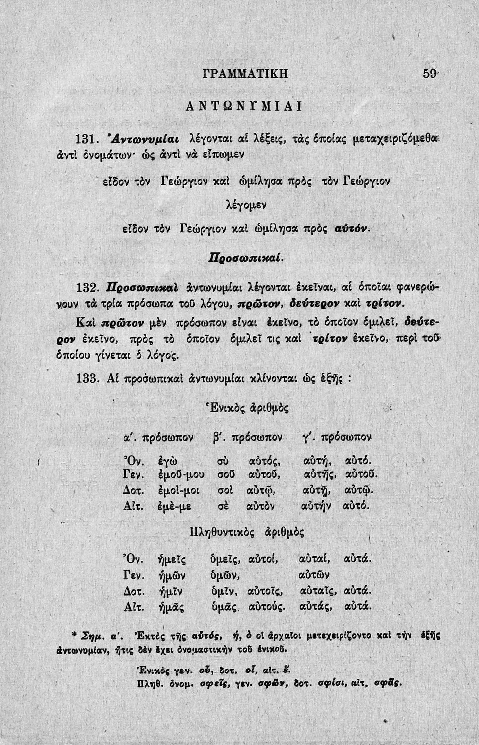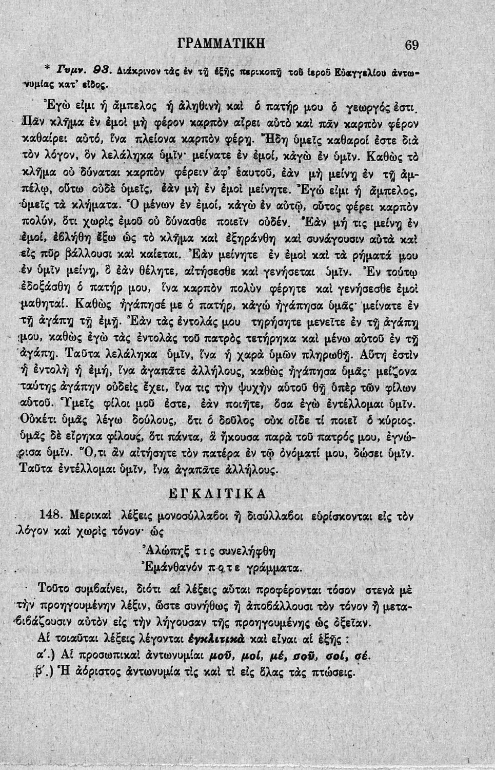 Βαθμίδα εκπαίδευσης: Πρωτοβάθμια Τάξη: Ε' Δημοτικού / ΣΤ' Δημοτικού Μάθημα: Νέα Ελληνικά Γλώσσα: Καθαρεύουσα Παρουσίαση περιεχομένου: Σχολικό εγχειρίδιο Γλώσσας Ε΄ και ΣΤ΄ Δημοτικού που περιλαμβάνει τους κανόνες γραμματικής της νέας ελληνικής. |