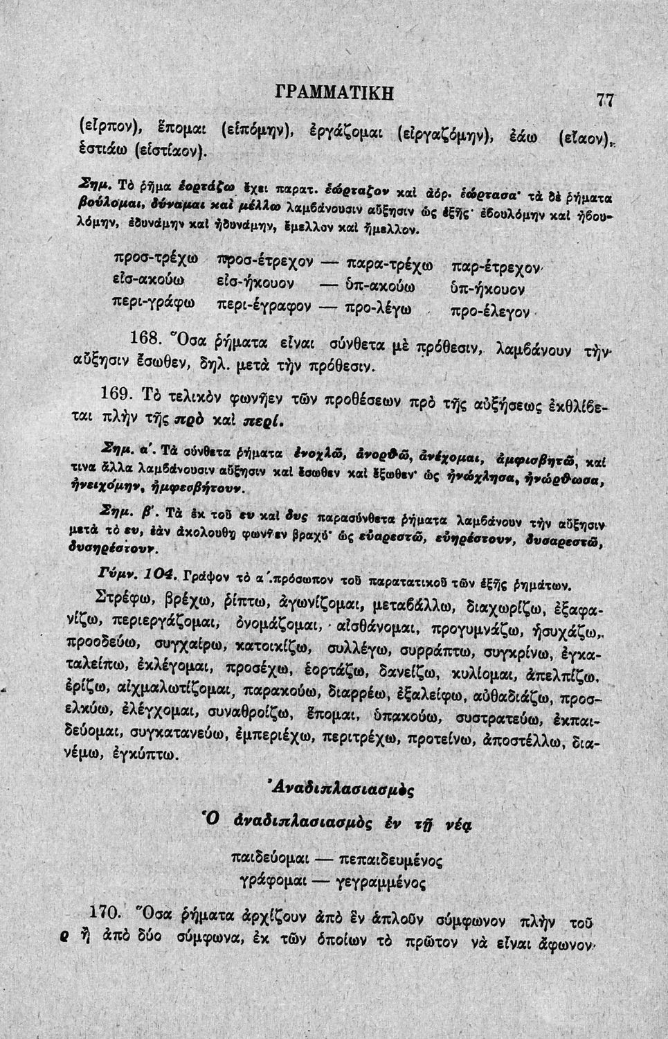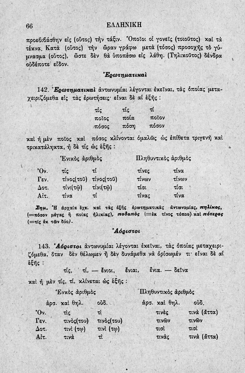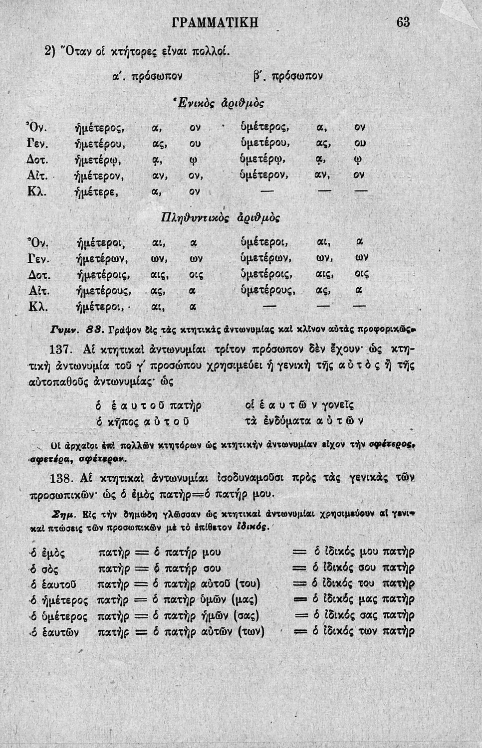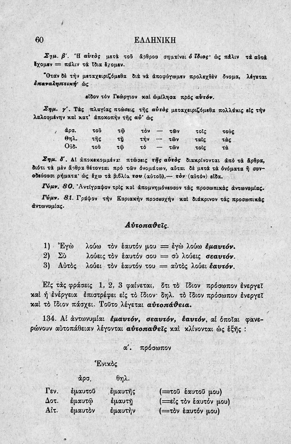 Βαθμίδα εκπαίδευσης: Πρωτοβάθμια Τάξη: Ε' Δημοτικού / ΣΤ' Δημοτικού Μάθημα: Νέα Ελληνικά Γλώσσα: Καθαρεύουσα Παρουσίαση περιεχομένου: Σχολικό εγχειρίδιο Γλώσσας Ε΄ και ΣΤ΄ Δημοτικού που περιλαμβάνει τους κανόνες γραμματικής της νέας ελληνικής. |