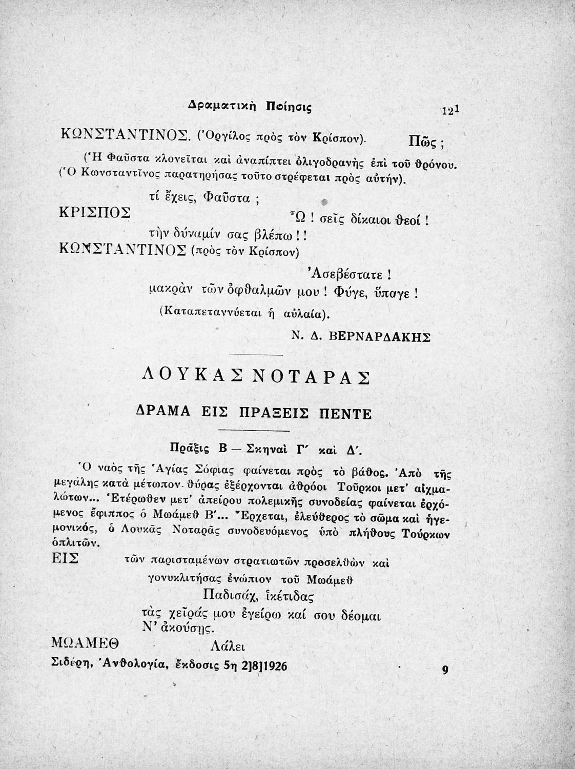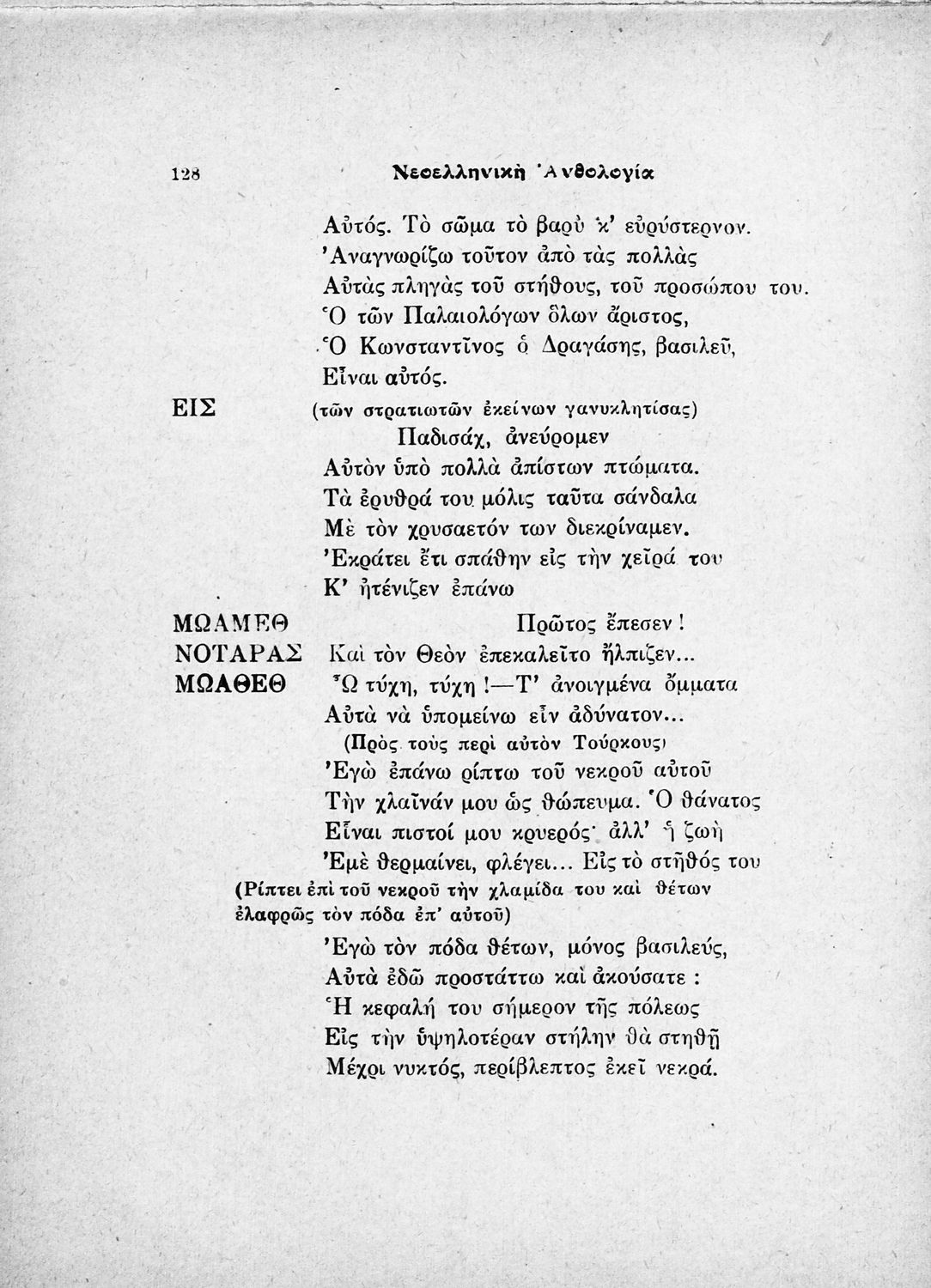 Σχολικό εγχειρίδιο Νέων Ελληνικών για τις τρεις τάξεις των Διδασκαλείων και Γ΄, Δ΄ Γυμνασίου. Ανθολόγιο νεοελληνικής ποίησης με αποσπάσματα από επικά, λυρικά και δραματικά ποιήματα. Περιέχει παράρτημα ...