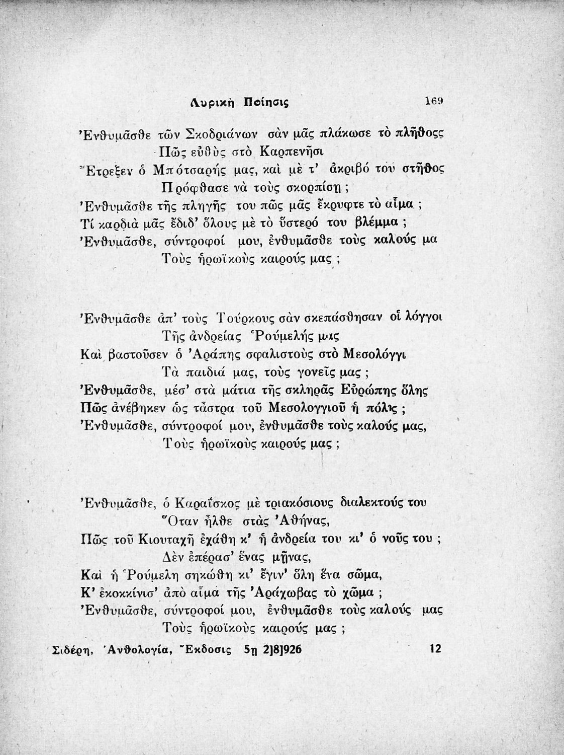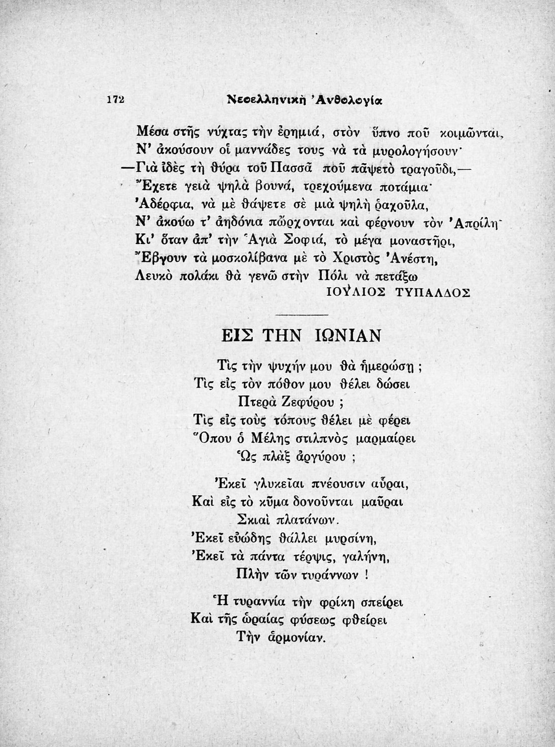 Νεοελληνική ανθολογία : επική ποίησις - δραματική ποίησις - λυρική ποίησις : προς χρήσιν των τριών τάξεων των διδασκαλείων και ανάγνωσιν κατ'οίκον υπό των μαθητών της Γ' και Δ' τάξεως των Γυμνασίων