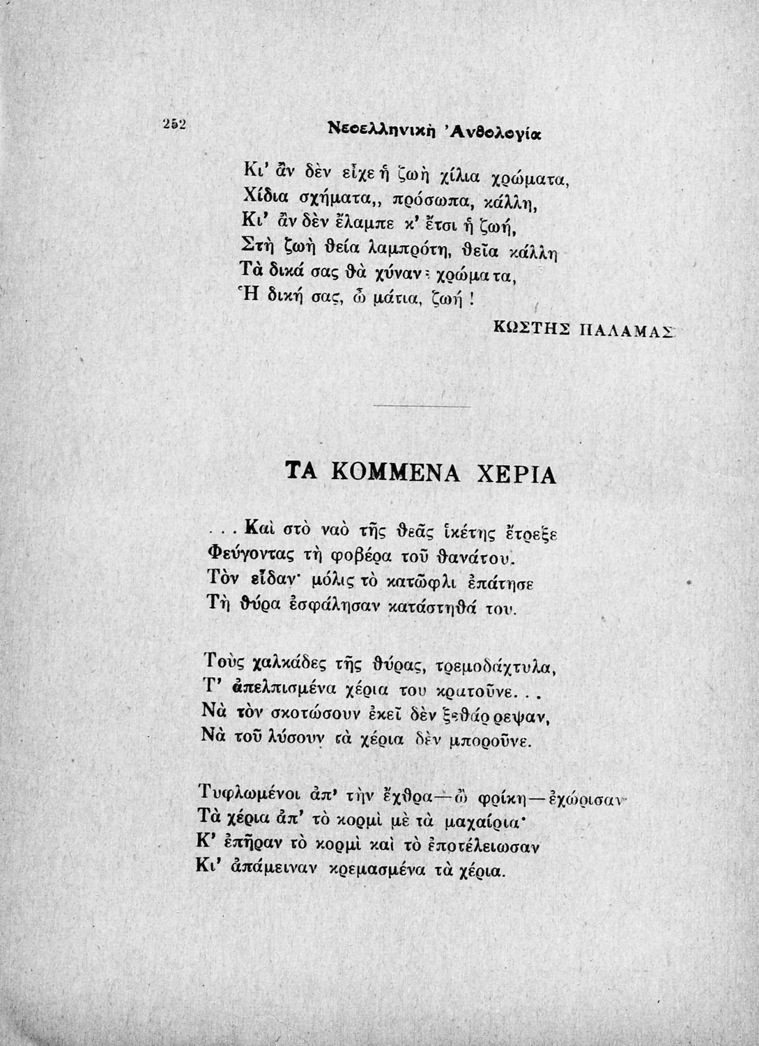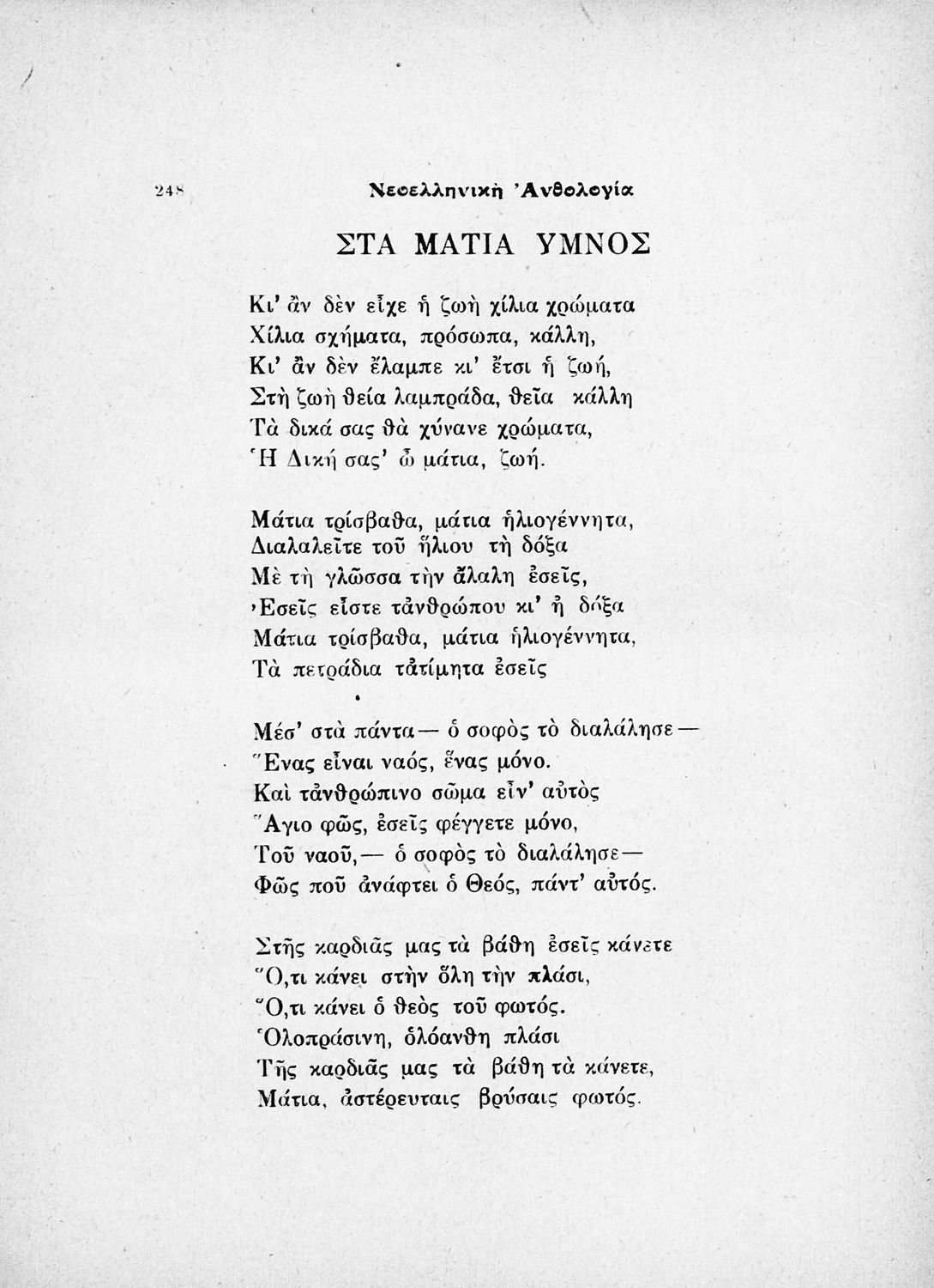 Νεοελληνική ανθολογία : επική ποίησις - δραματική ποίησις - λυρική ποίησις : προς χρήσιν των τριών τάξεων των διδασκαλείων και ανάγνωσιν κατ'οίκον υπό των μαθητών της Γ' και Δ' τάξεως των Γυμνασίων