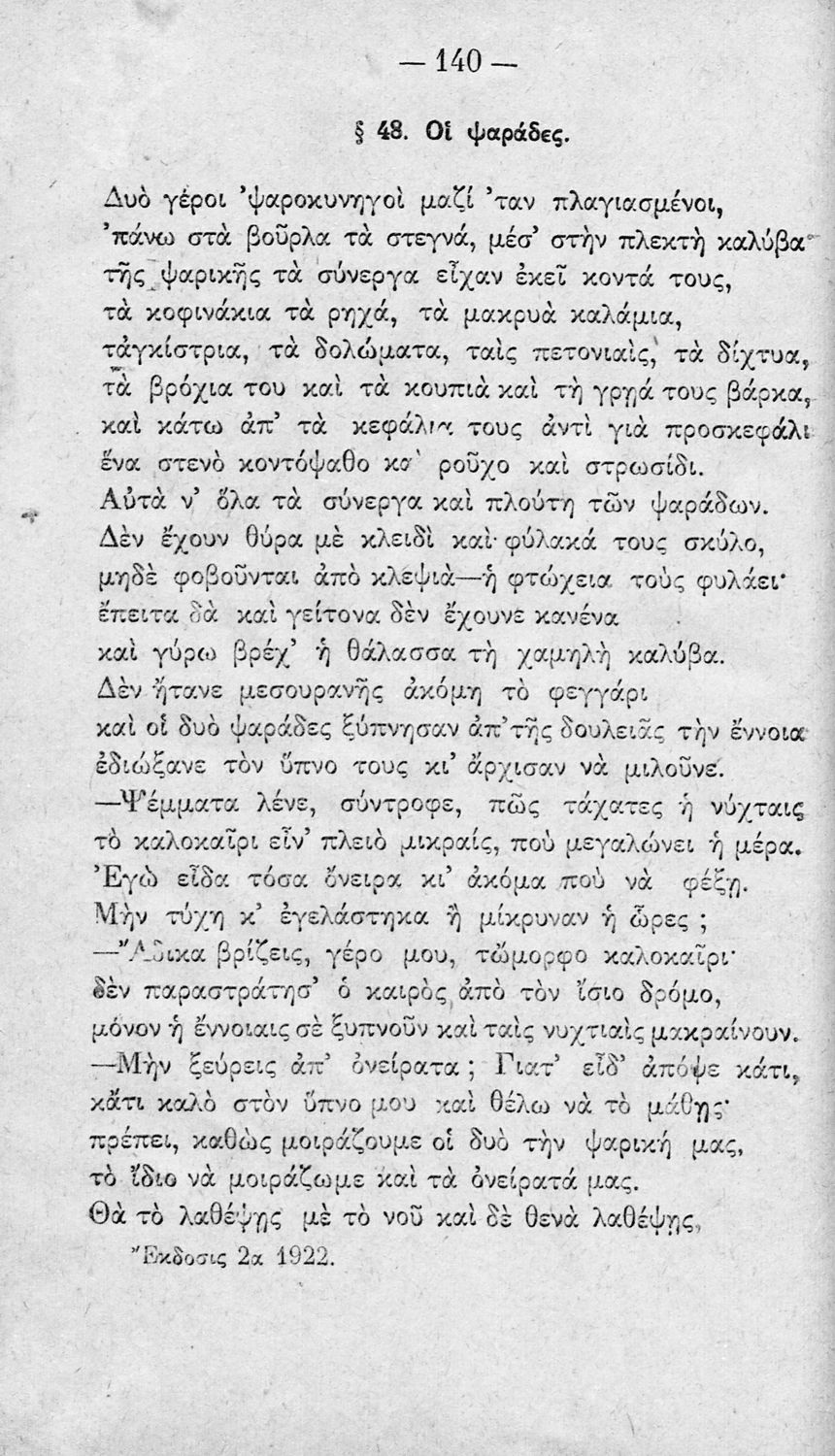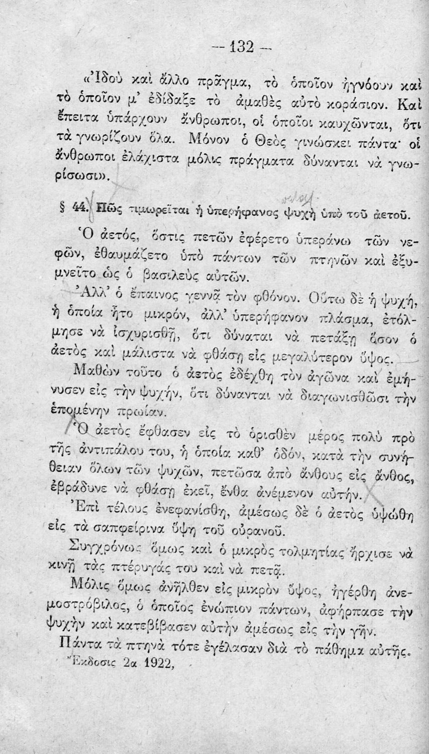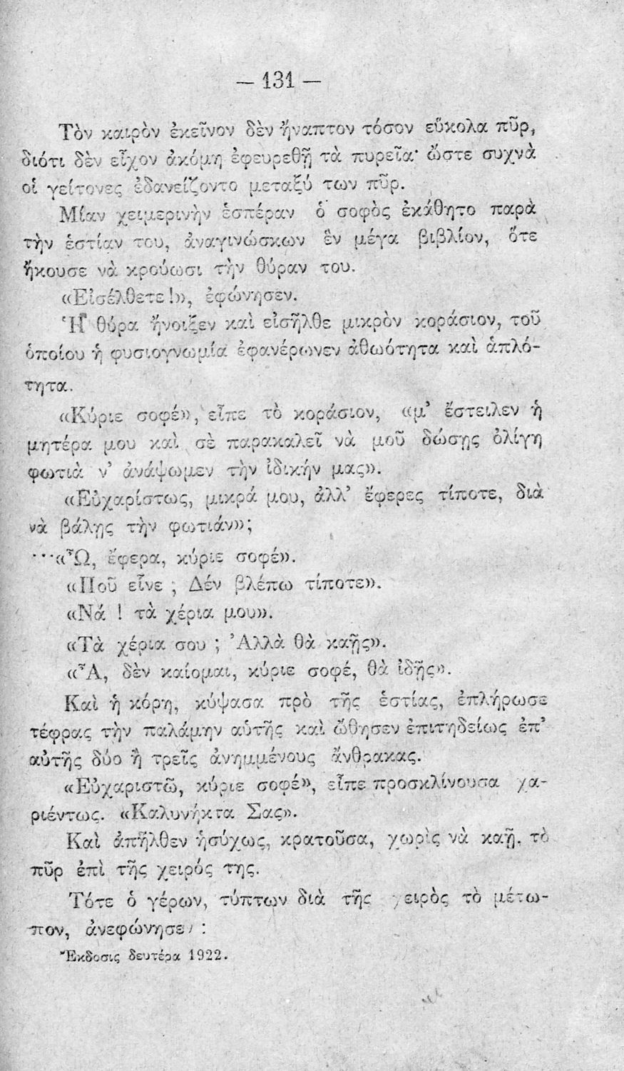 Αναγνωστικό του Δημοτικού. Περιέχει κείμενα της Γαλάτειας Καζαντζάκη. Στο τέλος του βιβλίου υπάρχουν καλλιγραφικά υποδείγματα από το Αναγνωσματάριο του Δημοσθένη Ανδρεάδη.