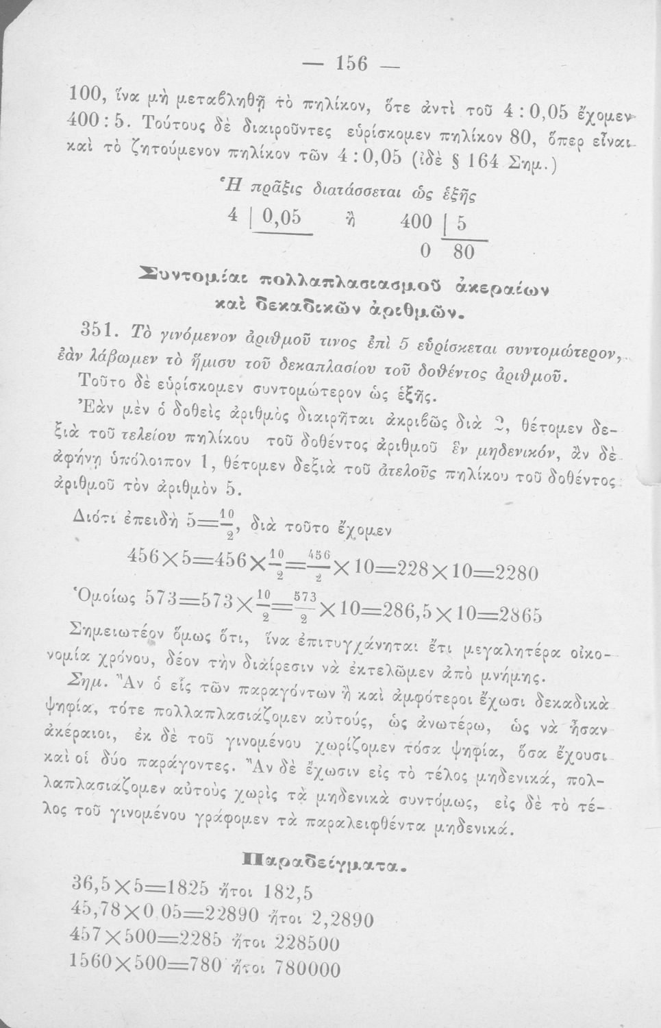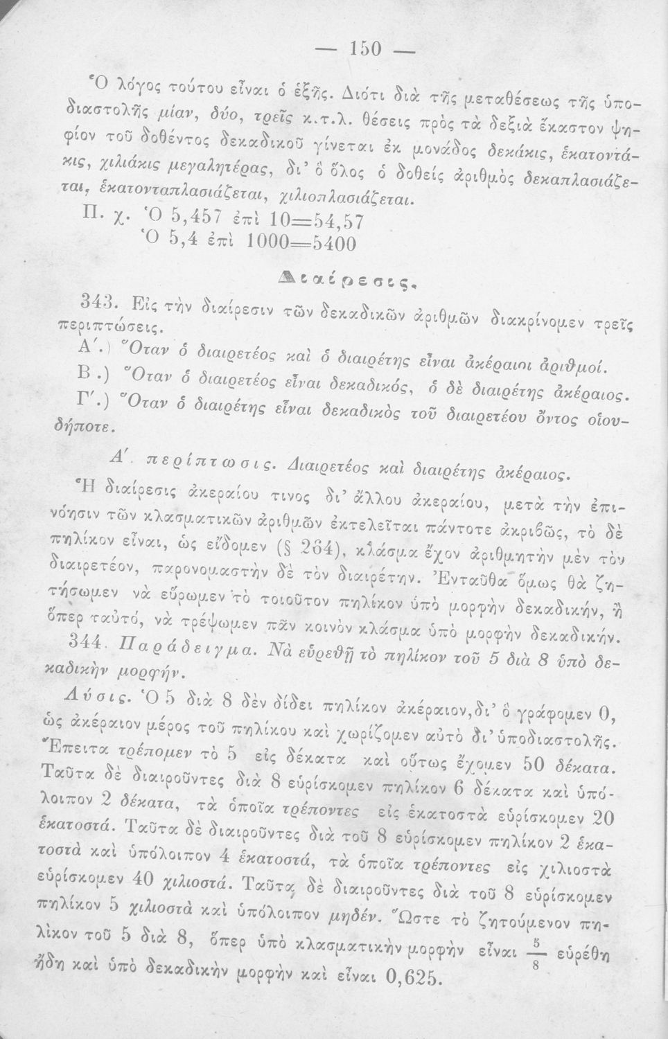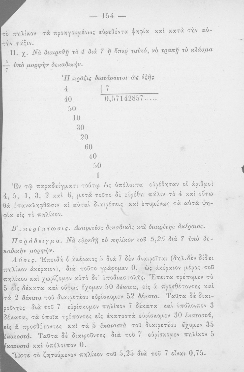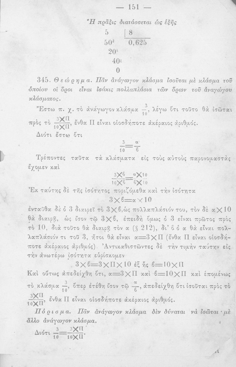 Βαθμίδα εκπαίδευσης: Δευτεροβάθμια Τάξη: Γυμνάσιο Μάθημα: Μαθηματικά Γλώσσα: Απλή καθαρεύουσα Παρουσίαση περιεχομένου: Μαθητικό βοήθημα Αριθμητικής Γυμνασίου που περιέχει θεωρήματα, παραδείγματα και ασκήσεις και εστιάζει στις αριθμητικές πράξεις με ακέραιους αριθμούς και κλάσματα. Ο συγγραφέας ήταν διευθυντής στην Δημόσια Εμπορική Σχολή Αθηνών. |