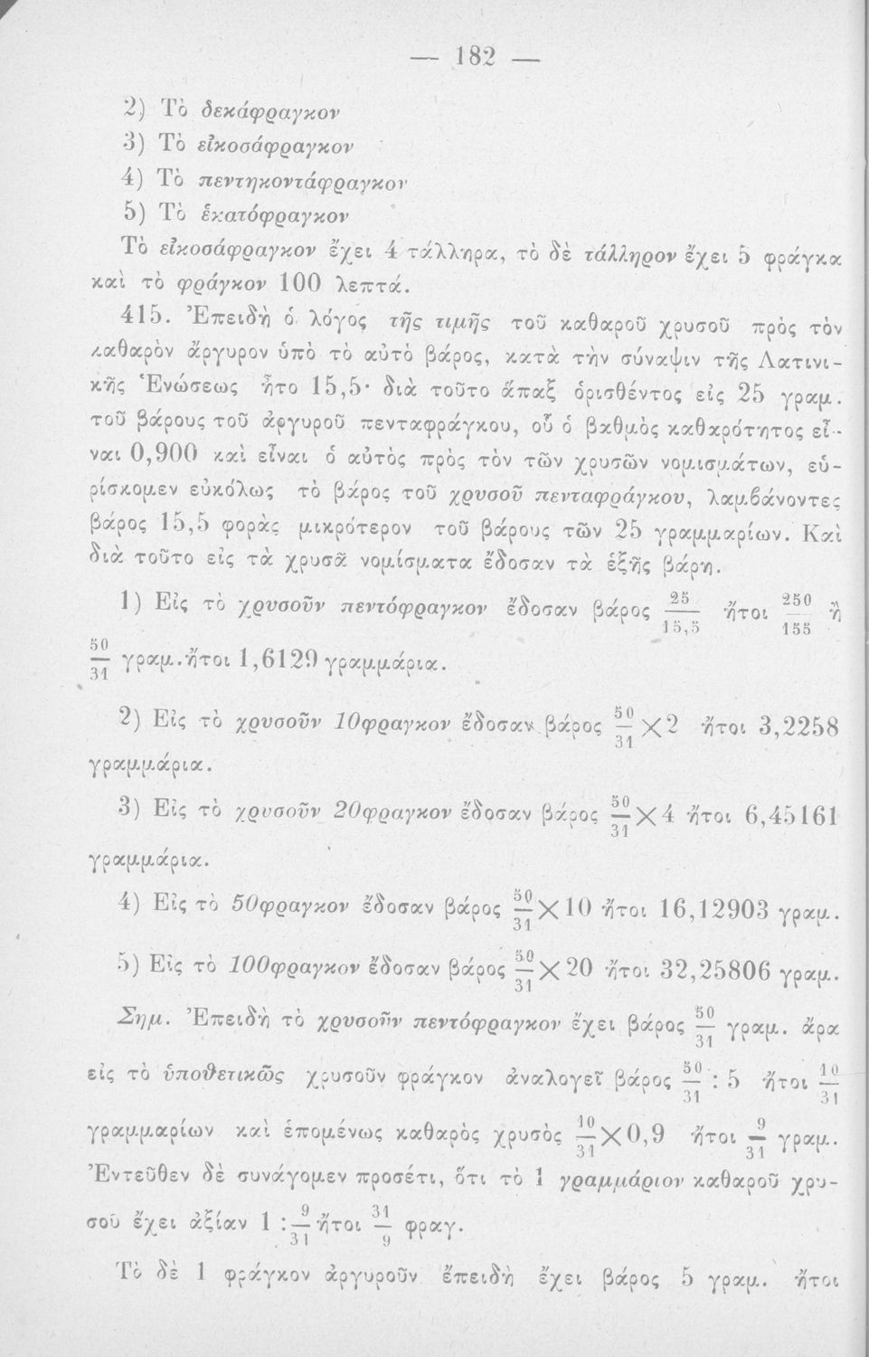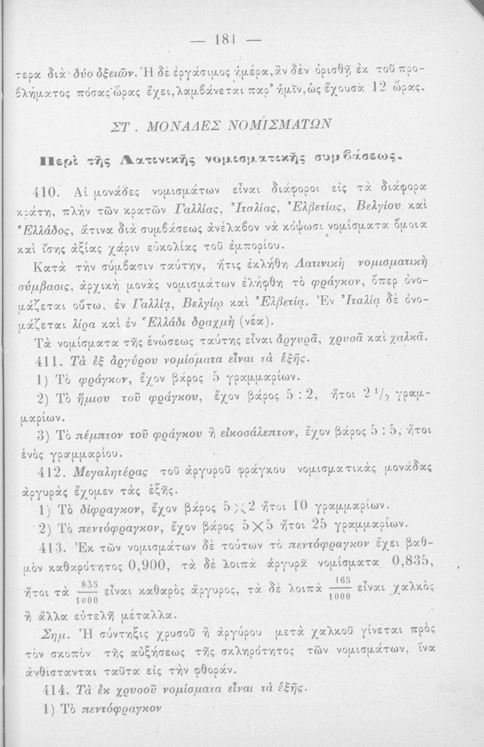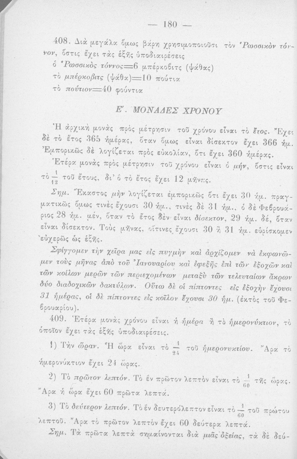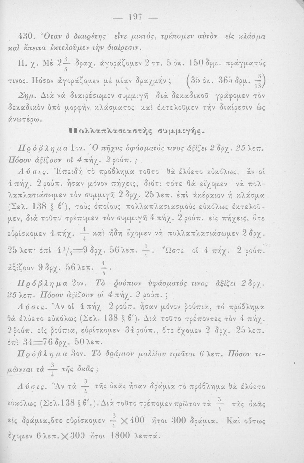 Βαθμίδα εκπαίδευσης: Δευτεροβάθμια Τάξη: Γυμνάσιο Μάθημα: Μαθηματικά Γλώσσα: Απλή καθαρεύουσα Παρουσίαση περιεχομένου: Μαθητικό βοήθημα Αριθμητικής Γυμνασίου που περιέχει θεωρήματα, παραδείγματα και ασκήσεις και εστιάζει στις αριθμητικές πράξεις με ακέραιους αριθμούς και κλάσματα. Ο συγγραφέας ήταν διευθυντής στην Δημόσια Εμπορική Σχολή Αθηνών. |