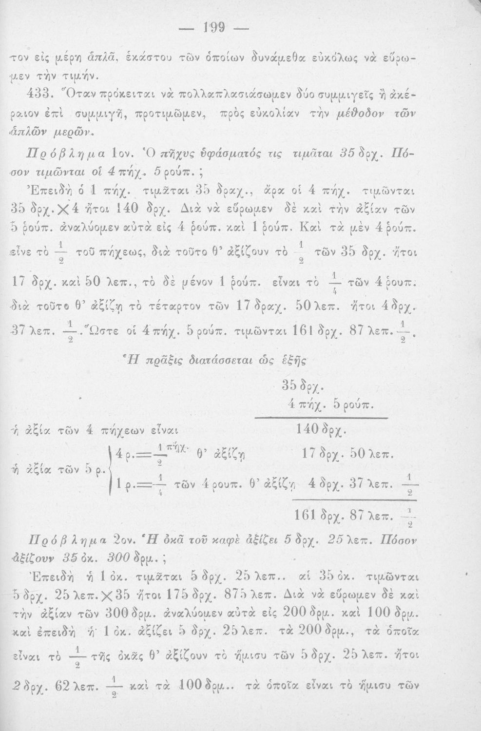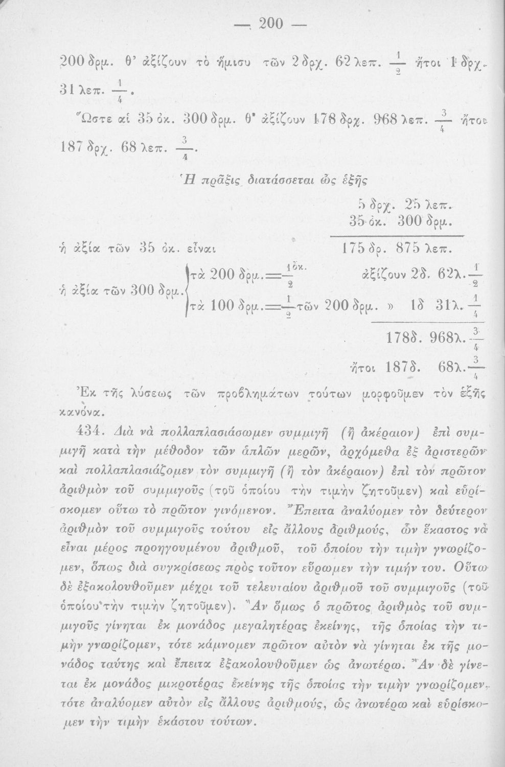 Μαθητικό βοήθημα Αριθμητικής Γυμνασίου που περιέχει θεωρήματα, παραδείγματα και ασκήσεις και εστιάζει στις αριθμητικές πράξεις με ακέραιους αριθμούς και κλάσματα. Ο συγγραφέας ήταν διευθυντής στην Δημόσια Εμπορική Σχολή Αθηνών.