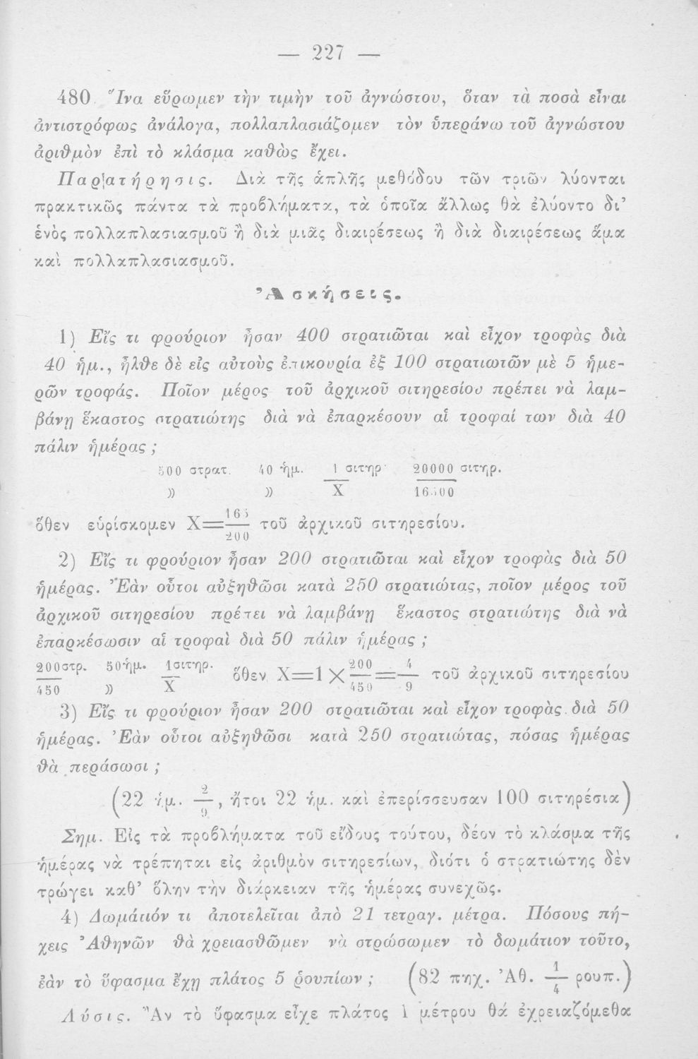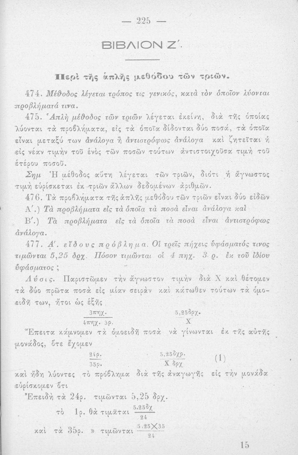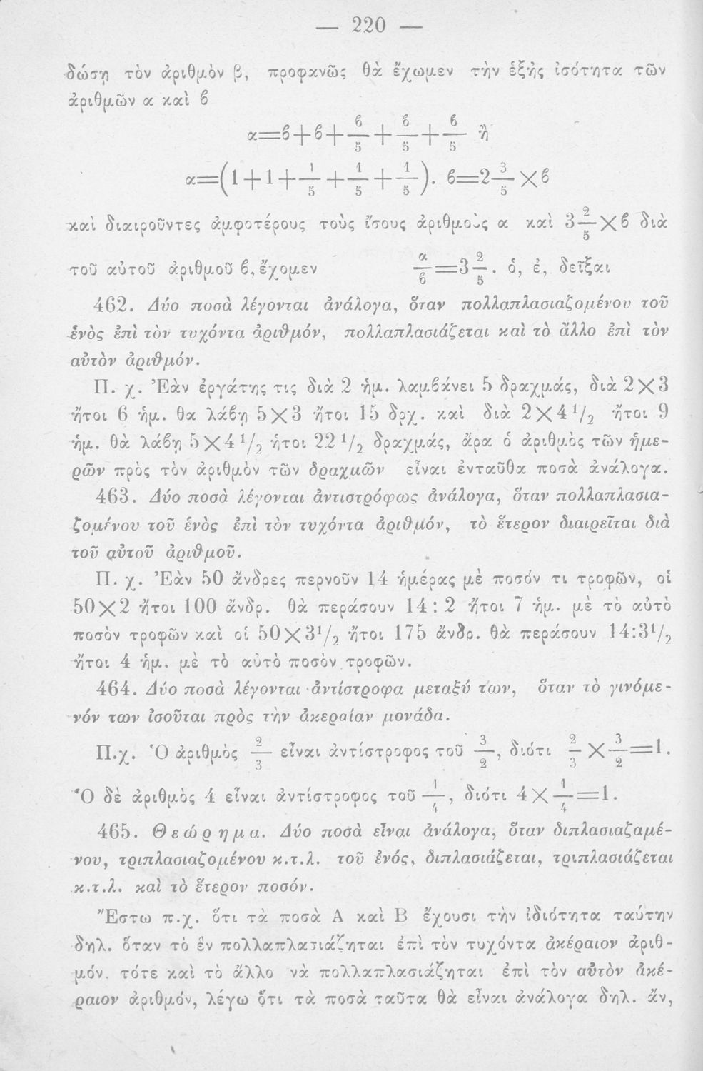 Σχολικό εγχειρίδιο Αριθμητικής για τις Α΄, Β΄, Γ΄ Γυμνασίου και τα Ανώτερα Παρθεναγωγεία που είναι χωρισμένο σε θεωρία και ασκήσεις και εστιάζει στις αριθμητικές πράξεις με κλάσματα και ακέραιους και συμμιγείς