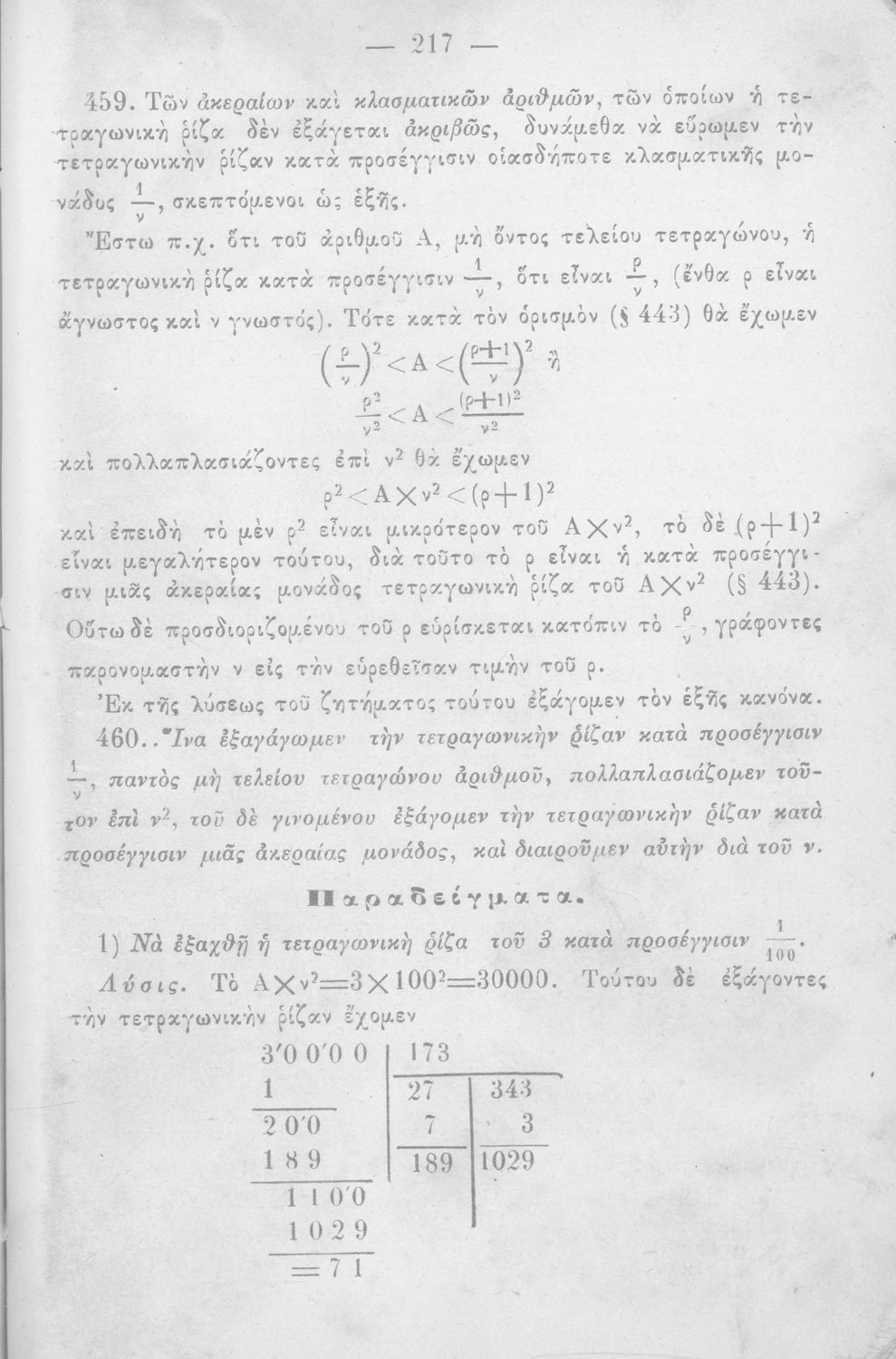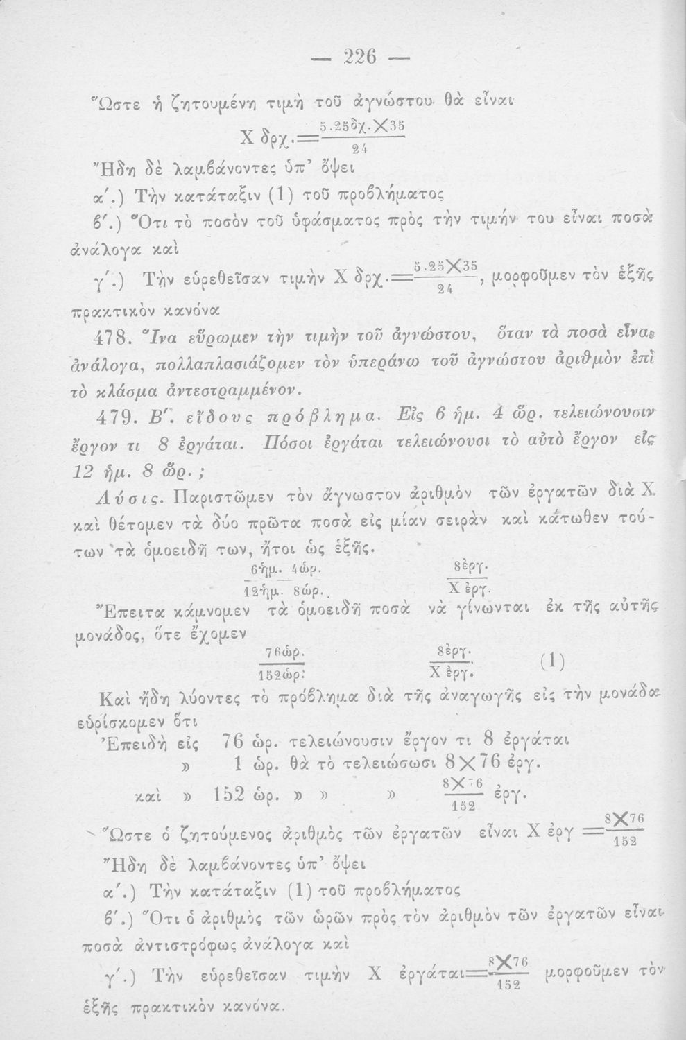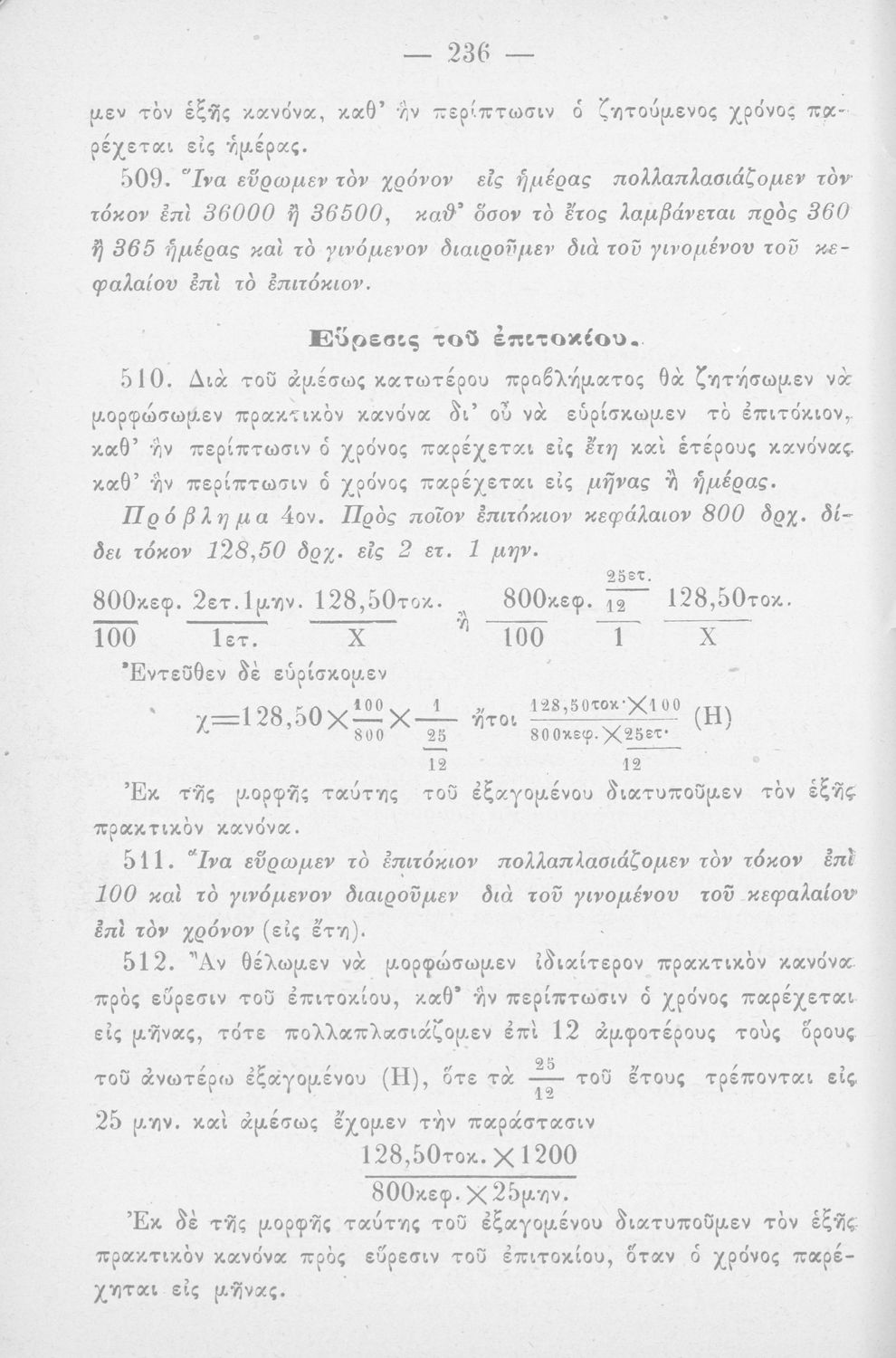 Σχολικό εγχειρίδιο Αριθμητικής για τις Α΄, Β΄, Γ΄ Γυμνασίου και τα Ανώτερα Παρθεναγωγεία που είναι χωρισμένο σε θεωρία και ασκήσεις και εστιάζει στις αριθμητικές πράξεις με κλάσματα και ακέραιους και συμμιγείς