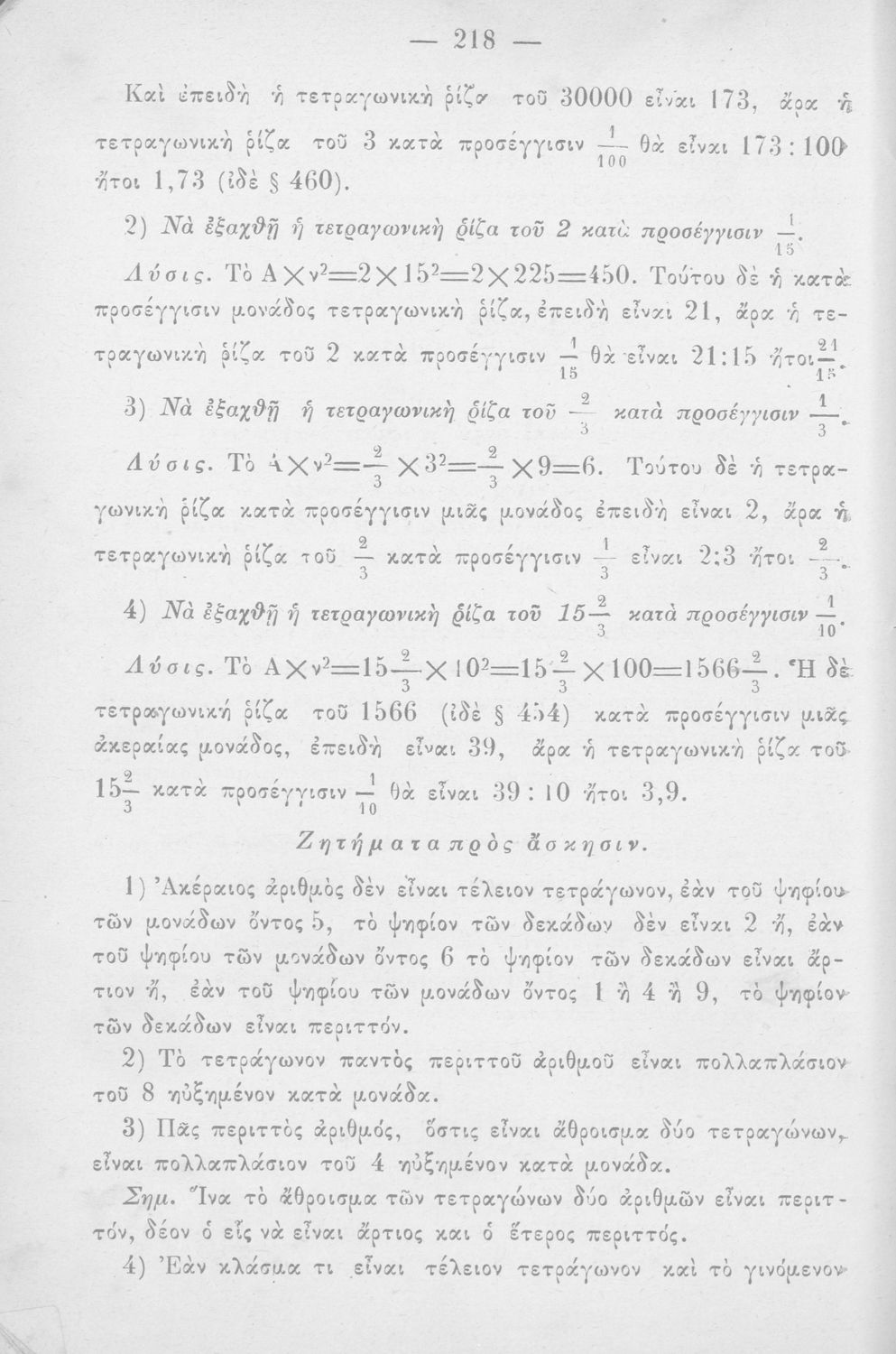 Παρουσίαση περιεχομένου: Μαθητικό βοήθημα Αριθμητικής Γυμνασίου που περιέχει θεωρήματα, παραδείγματα και ασκήσεις και εστιάζει στις αριθμητικές πράξεις με ακέραιους αριθμούς και κλάσματα. Ο συγγραφέας ήταν διευθυντής στην Δημόσια Εμπορική Σχολή Αθηνών.