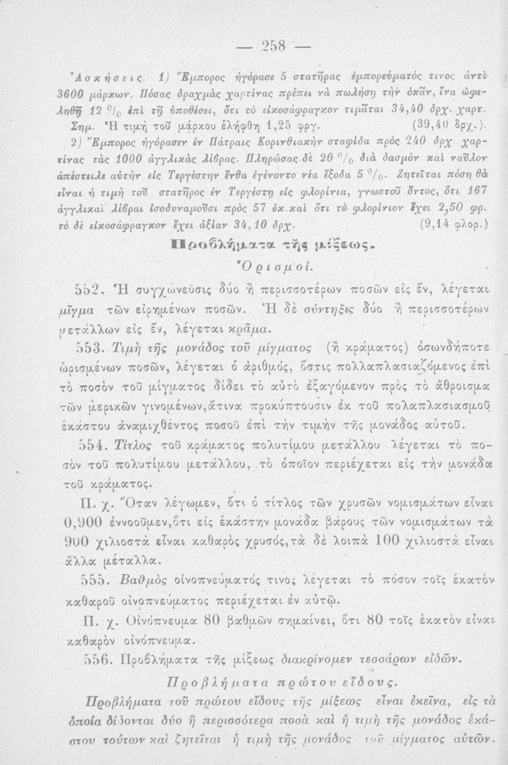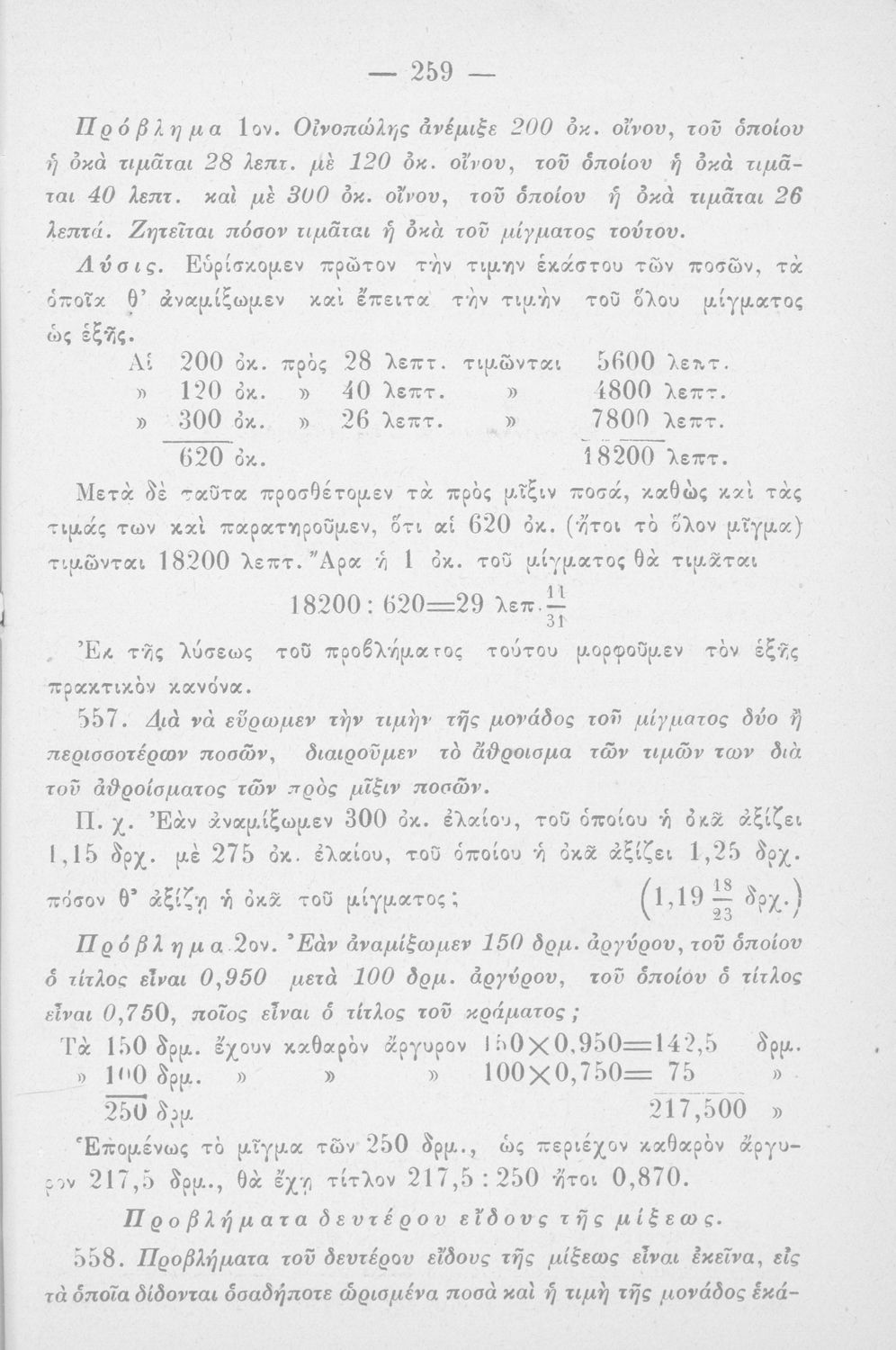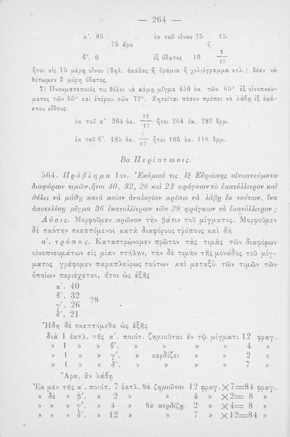 Σχολικό εγχειρίδιο Αριθμητικής για τις Α΄, Β΄, Γ΄ Γυμνασίου και τα Ανώτερα Παρθεναγωγεία που είναι χωρισμένο σε θεωρία και ασκήσεις και εστιάζει στις αριθμητικές πράξεις με κλάσματα και ακέραιους και συμμιγείς