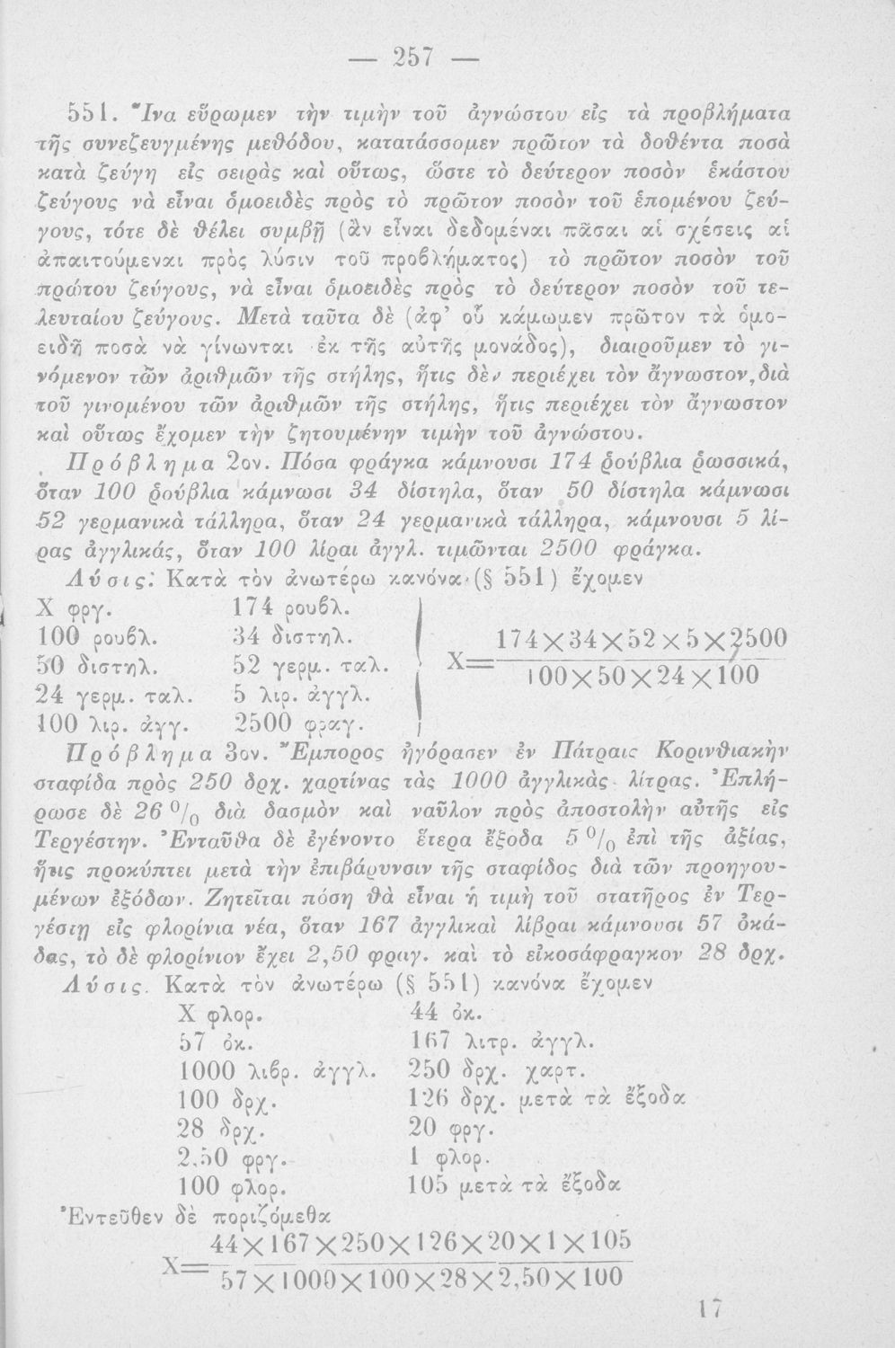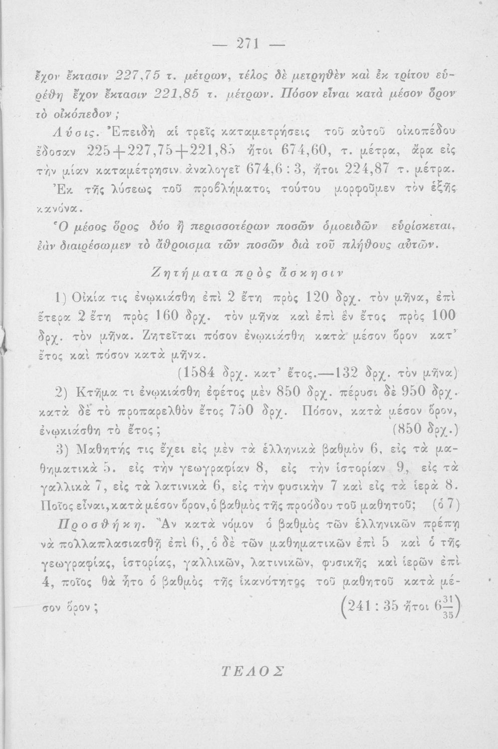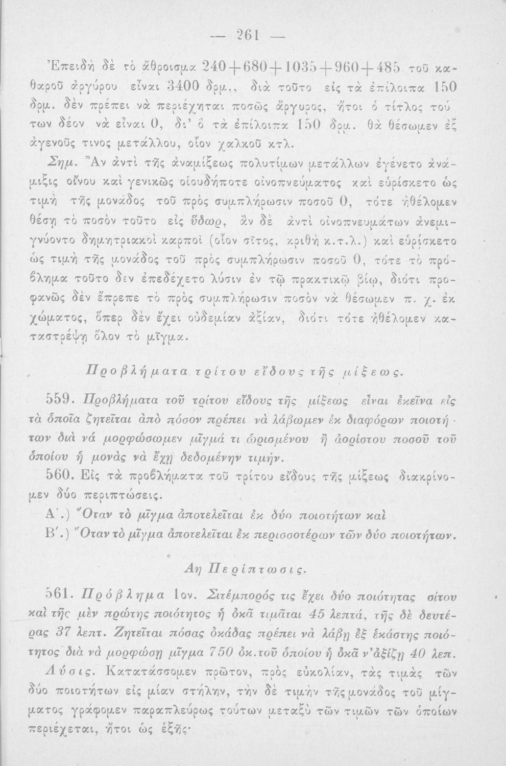 Σχολικό εγχειρίδιο Αριθμητικής για τις Α΄, Β΄, Γ΄ Γυμνασίου και τα Ανώτερα Παρθεναγωγεία που είναι χωρισμένο σε θεωρία και ασκήσεις και εστιάζει στις αριθμητικές πράξεις με κλάσματα και ακέραιους και συμμιγείς