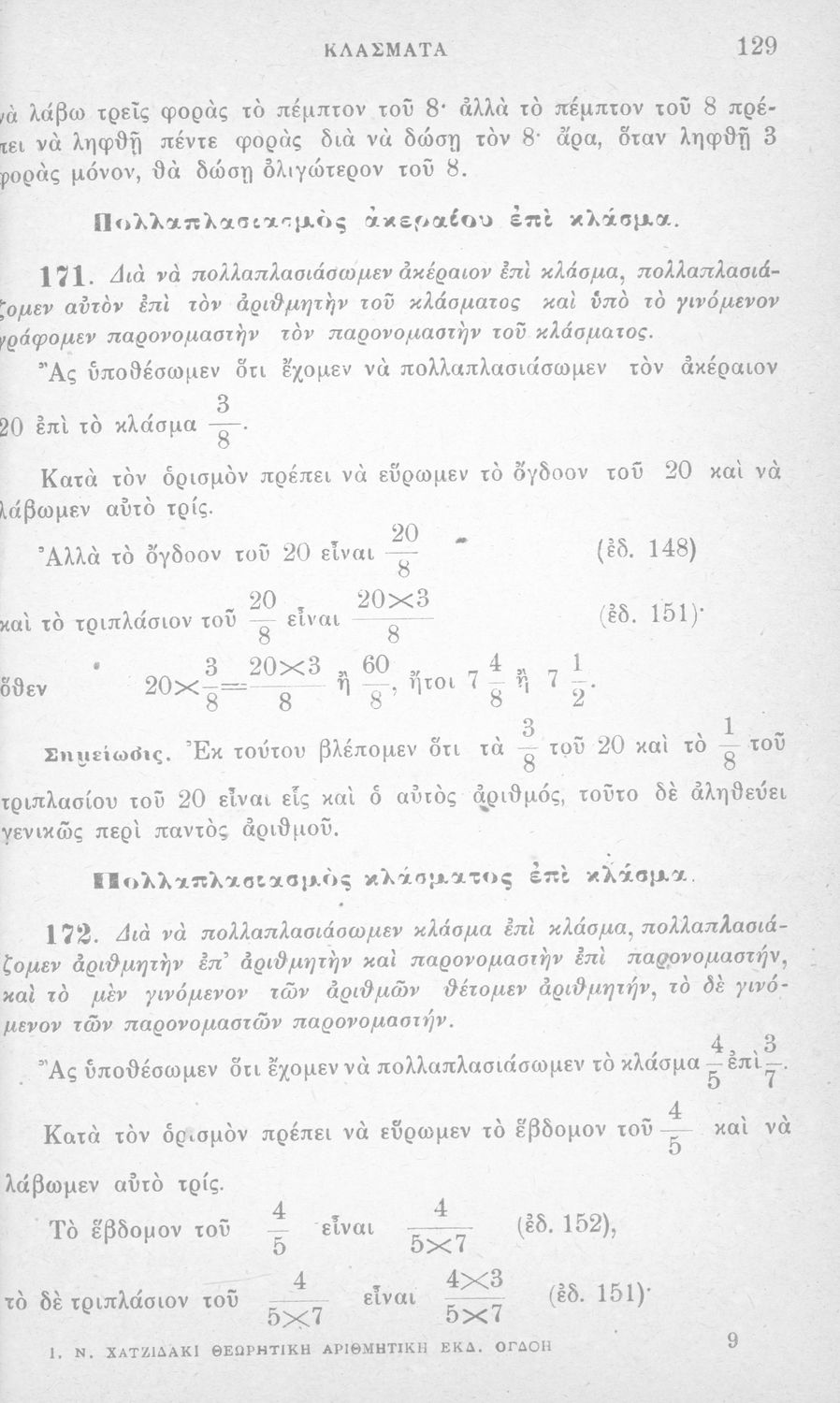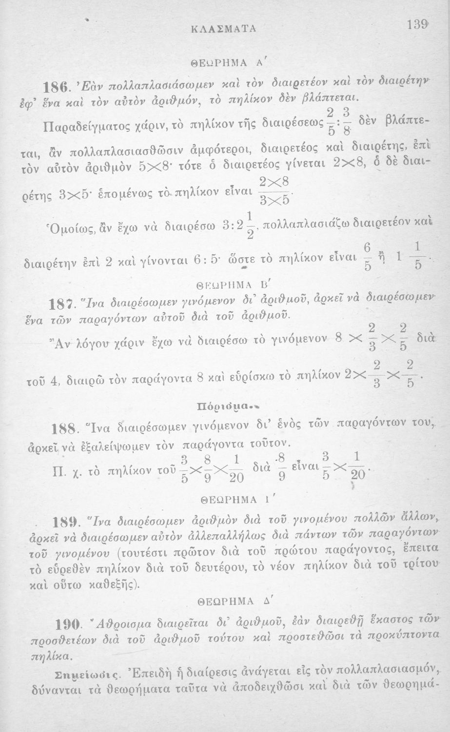 Σχολικό εγχειρίδιο Αριθμητικής για τα Γυμνάσια και Λύκεια που εστιάζει στις αριθμητικές πράξεις με ακέραιους αριθμούς και κλάσματα και είναι χωρισμένο σε ορισμούς, θεωρήματα και ασκήσεις.