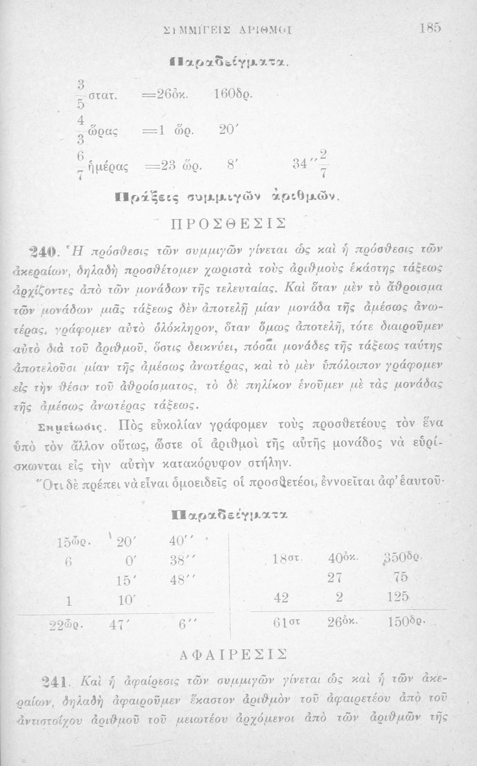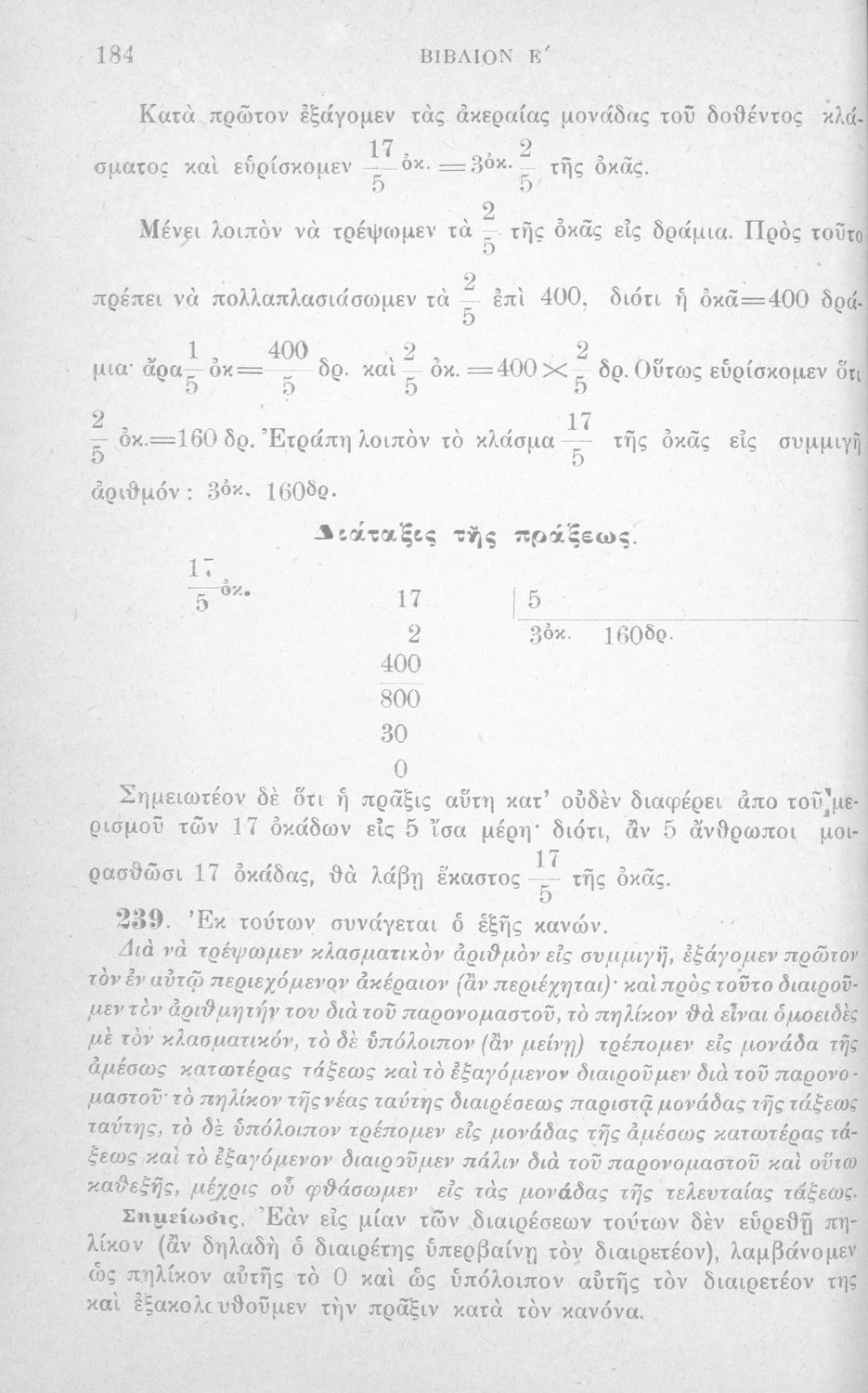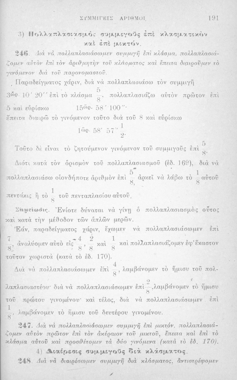Σχολικό εγχειρίδιο Αριθμητικής για τα Γυμνάσια και Λύκεια που εστιάζει στις αριθμητικές πράξεις με ακέραιους αριθμούς και κλάσματα και είναι χωρισμένο σε ορισμούς, θεωρήματα και ασκήσεις.