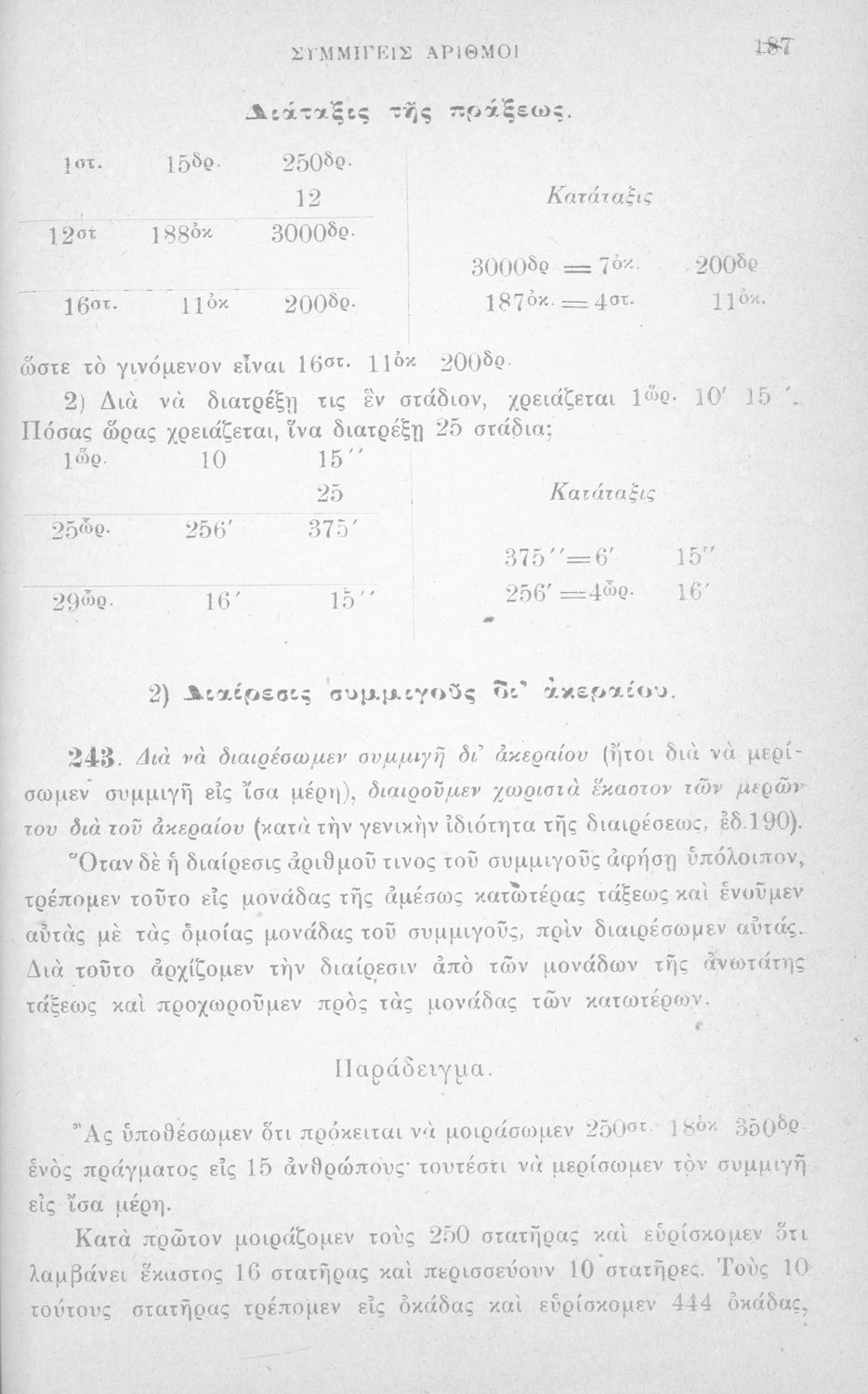 Μαθητικό βοήθημα Αριθμητικής Γυμνασίου που περιέχει θεωρήματα, παραδείγματα και ασκήσεις και εστιάζει στις αριθμητικές πράξεις με ακέραιους αριθμούς και κλάσματα. Ο συγγραφέας ήταν διευθυντής στην Δημόσια ...