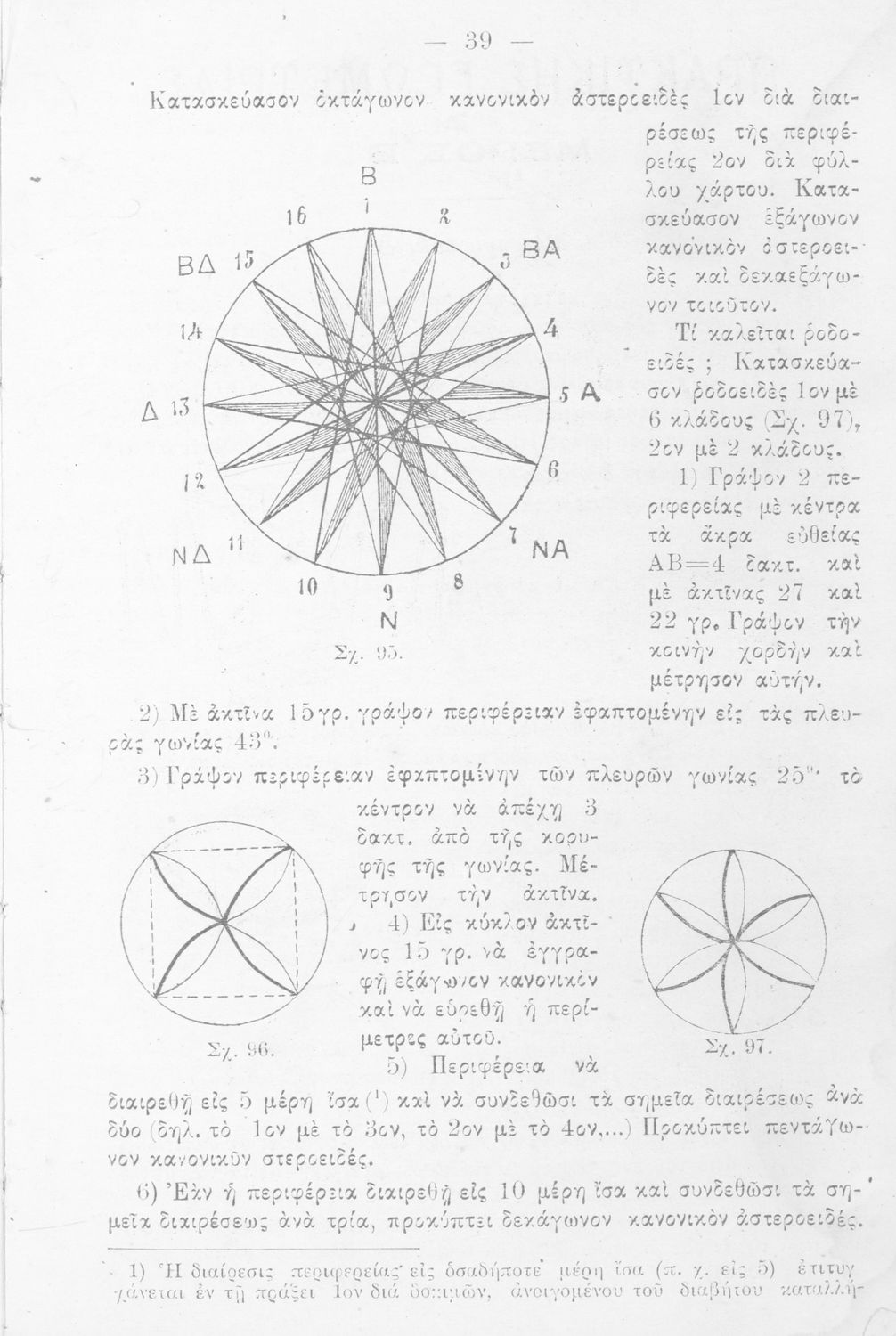 Σχολικό εγχειρίδιο Γεωμετρίας για την Α΄, Β΄ και Γ΄ τάξη των Ελληνικών και Αστικών Σχολείων και Παρθεναγωγείων που είναι χωρισμένο σε Επιπεδομετρία και Στερεομετρία και περιλαμβάνει θεωρία και ασκήσεις.