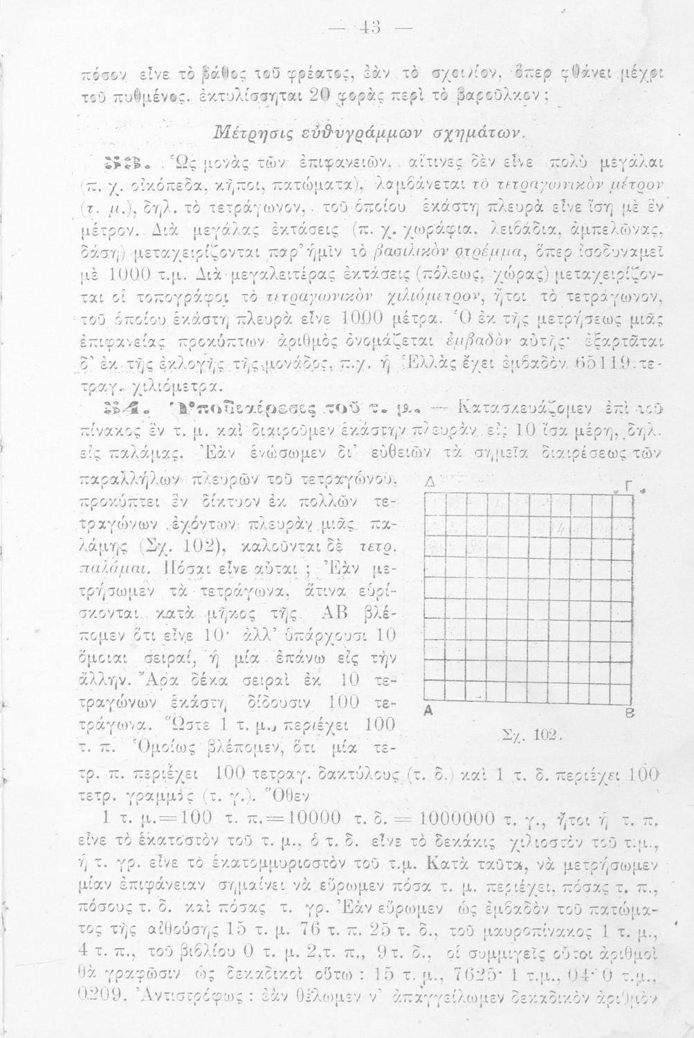 Σχολικό εγχειρίδιο Γεωμετρίας για τα Ελληνικά Σχολεία που περιέχει θεωρία, προβλήματα και ασκήσεις και εστιάζει στα γεωμετρικά σχήματα και σώματα και τη μέτρησή τους.