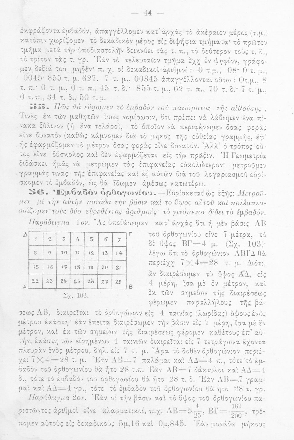 Σχολικό εγχειρίδιο Γεωμετρίας για τα Ελληνικά Σχολεία και Παρθεναγωγεία με έντονο πρακτικό προσανατολισμό.