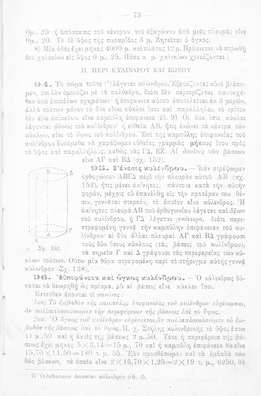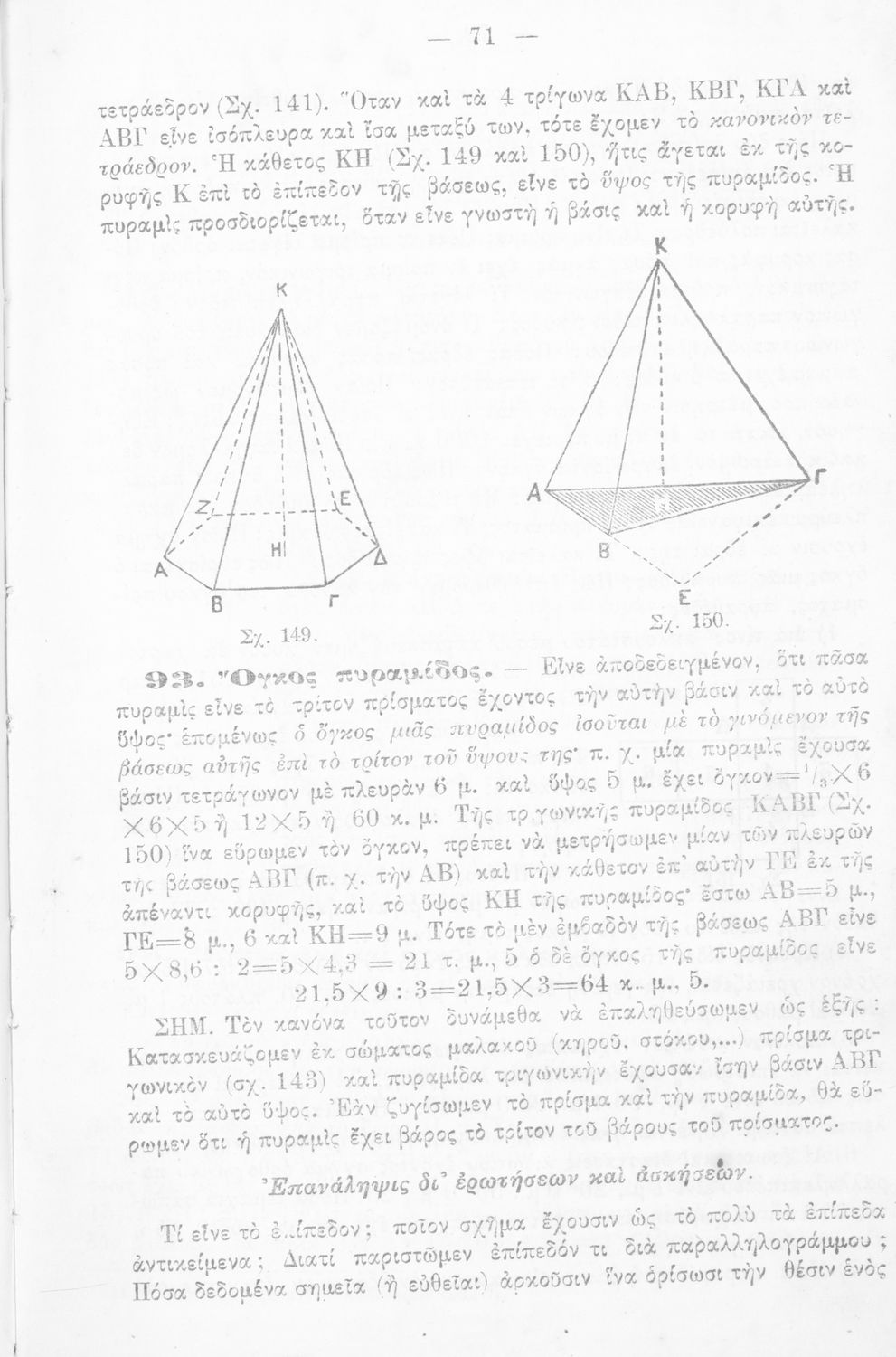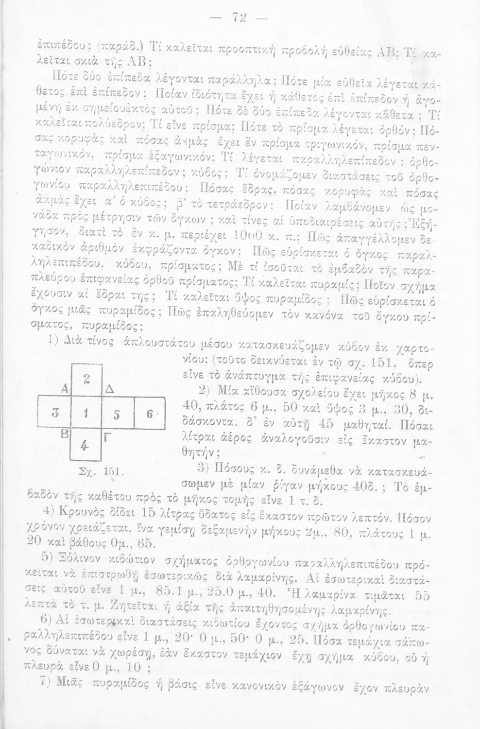Σχολικό εγχειρίδιο Γεωμετρίας για τα Ελληνικά Σχολεία που περιέχει θεωρία, προβλήματα και ασκήσεις και εστιάζει στα γεωμετρικά σχήματα και σώματα και τη μέτρησή τους.