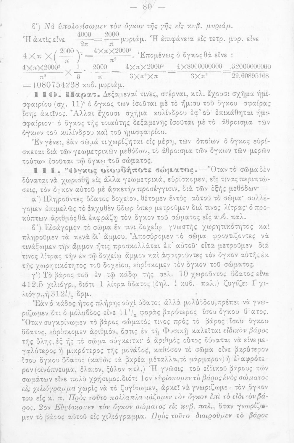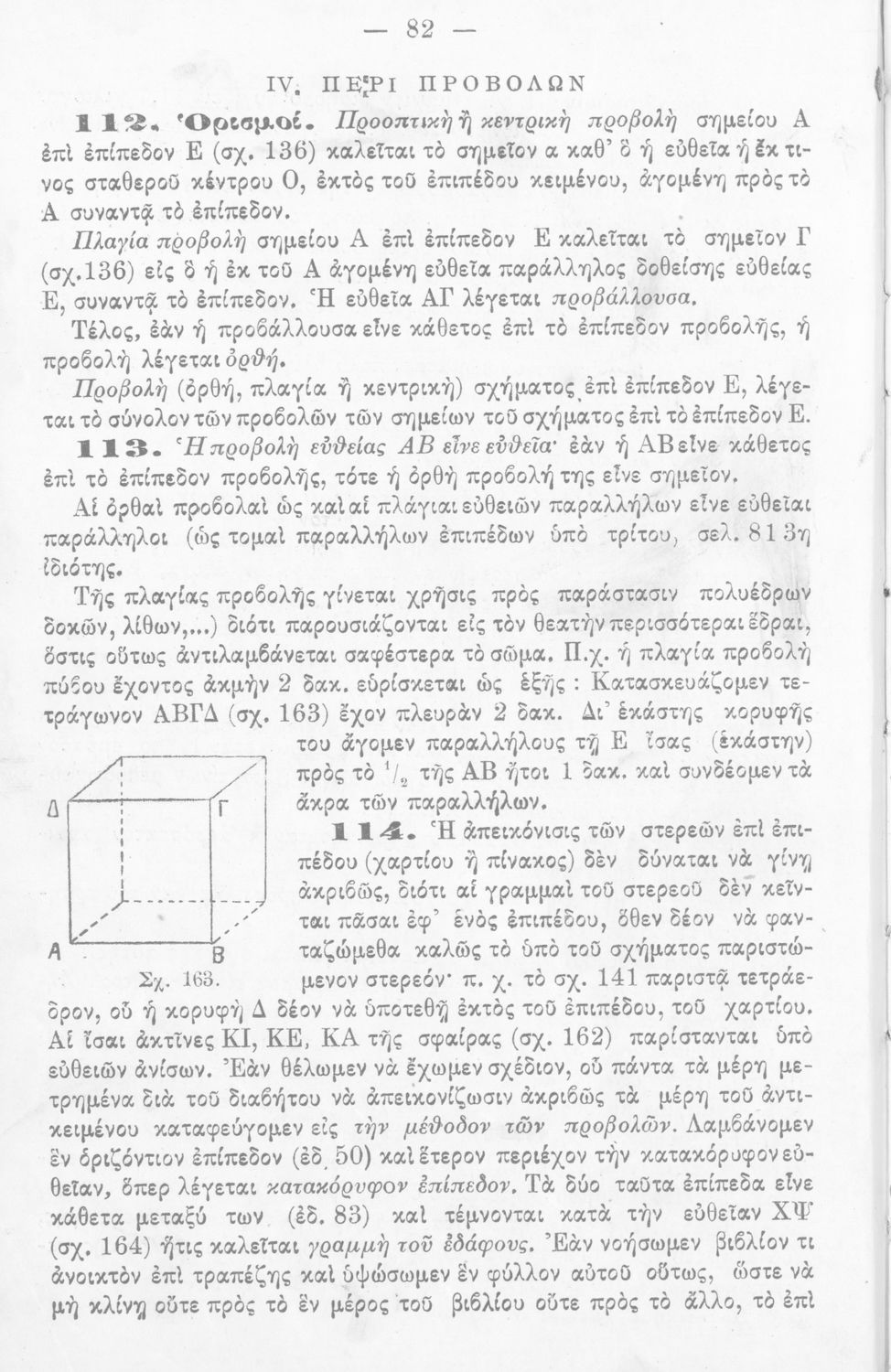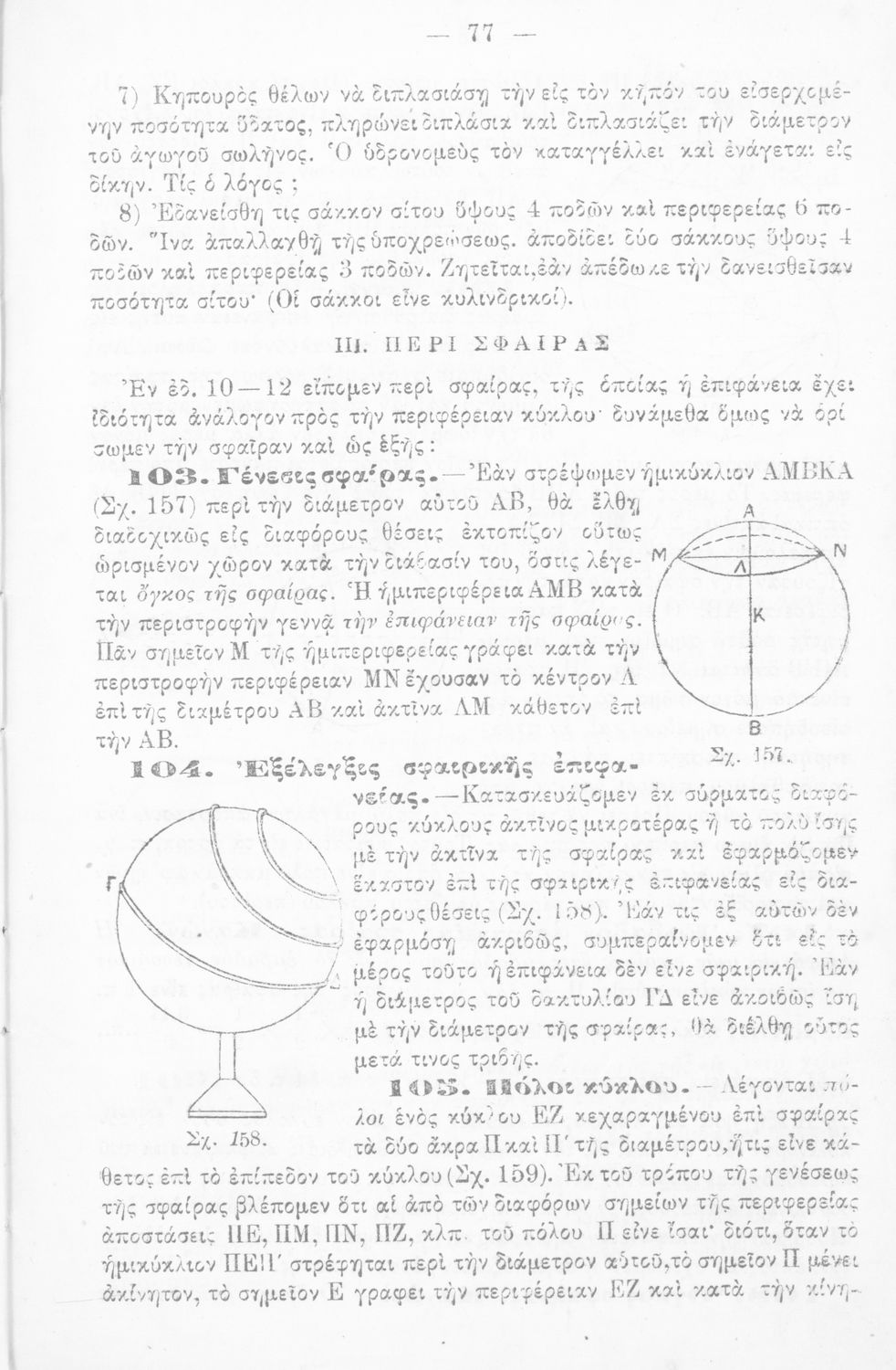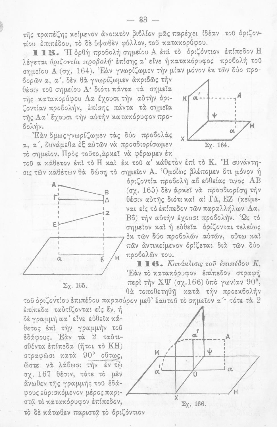 Σχολικό εγχειρίδιο Γεωμετρίας για την Α΄, Β΄ και Γ΄ τάξη των Ελληνικών και Αστικών Σχολείων και Παρθεναγωγείων που είναι χωρισμένο σε Επιπεδομετρία και Στερεομετρία και περιλαμβάνει θεωρία και ασκήσεις.