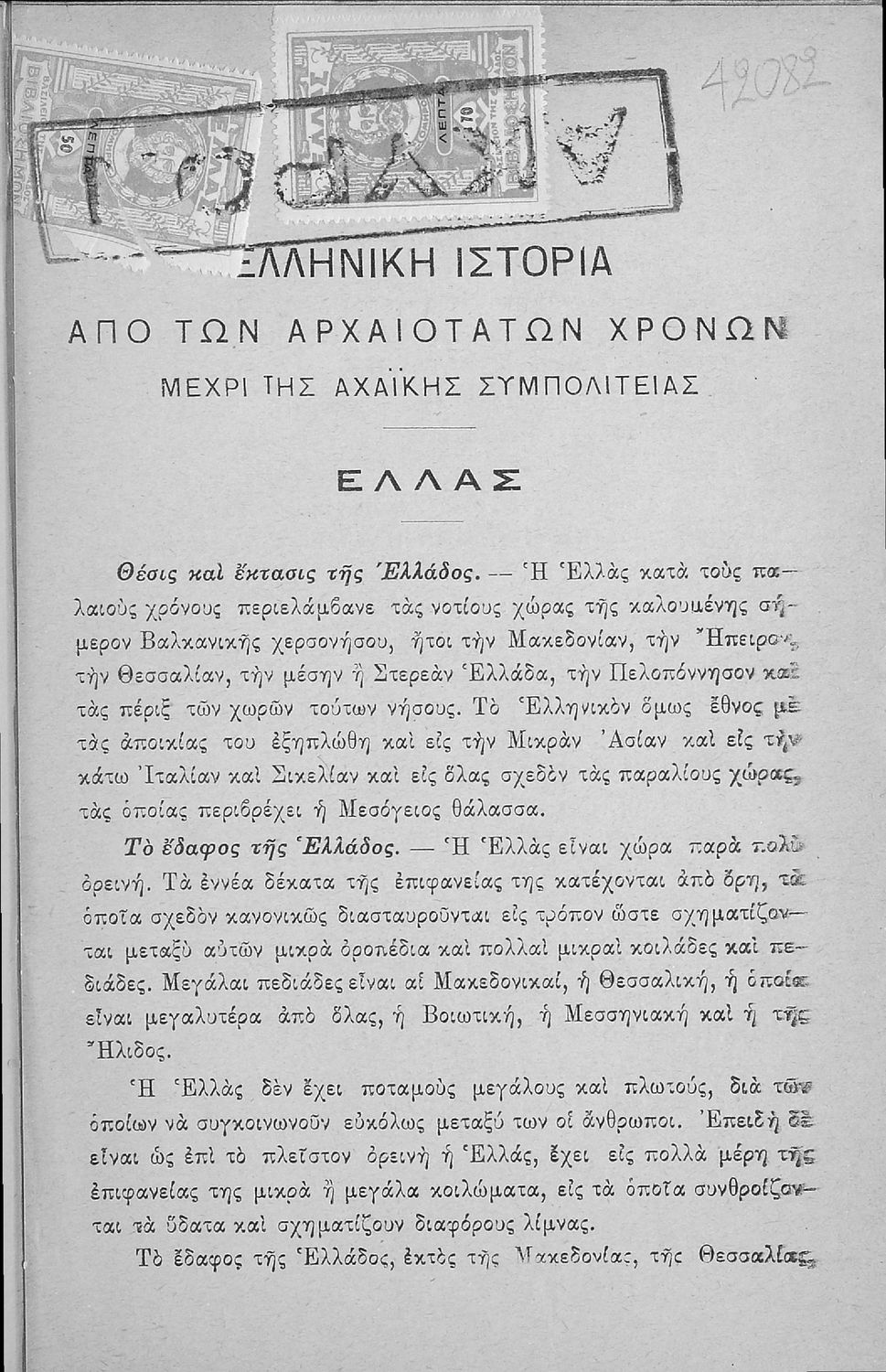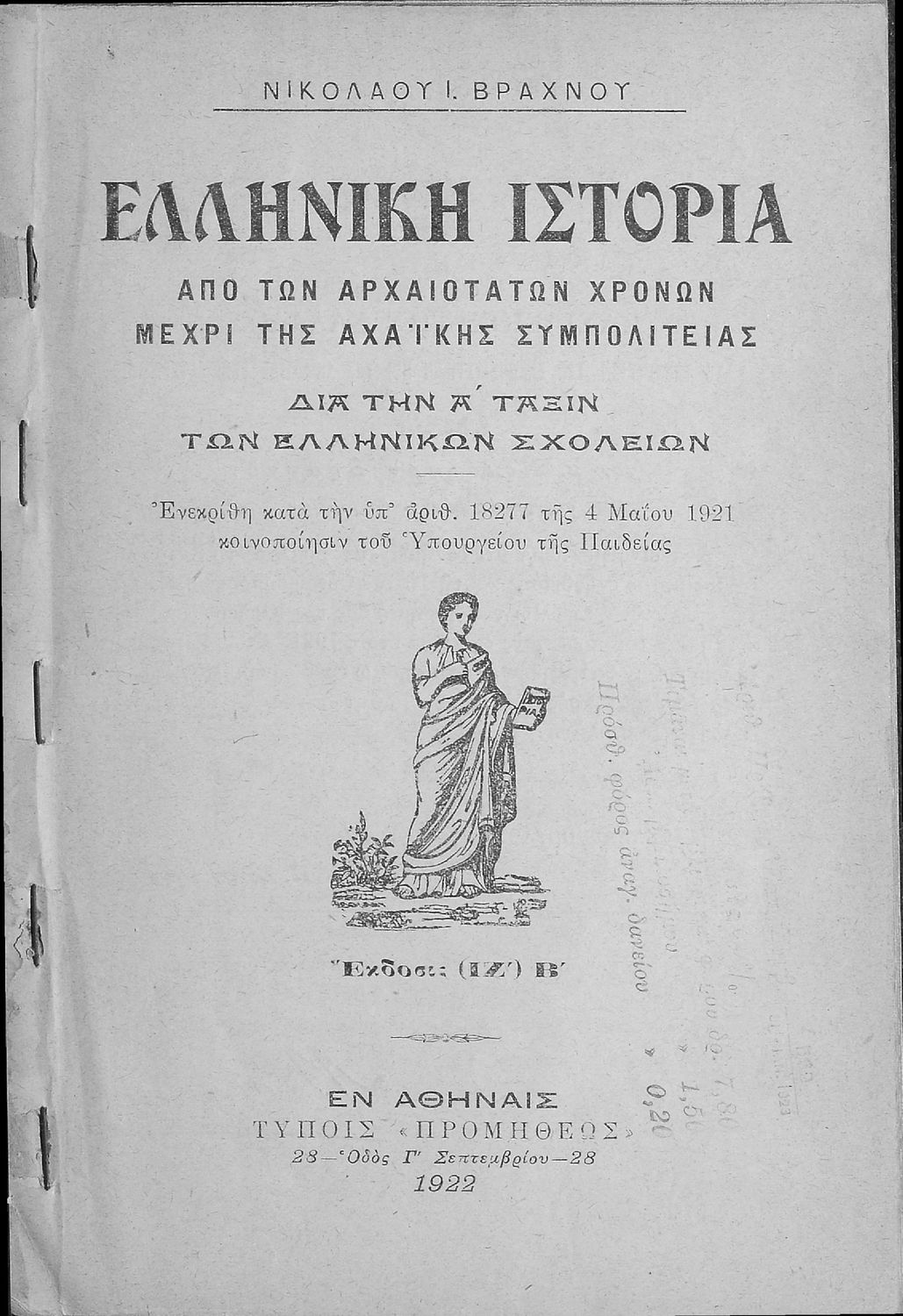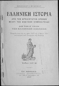 Τίτλος: Ελληνική Ιστορία. Από των αρχαιοτάτων χρόνων μέχρι της Αχαϊκής Συμπολιτείας δια την Α΄ Τάξιν των Ελληνικών Σχολείων