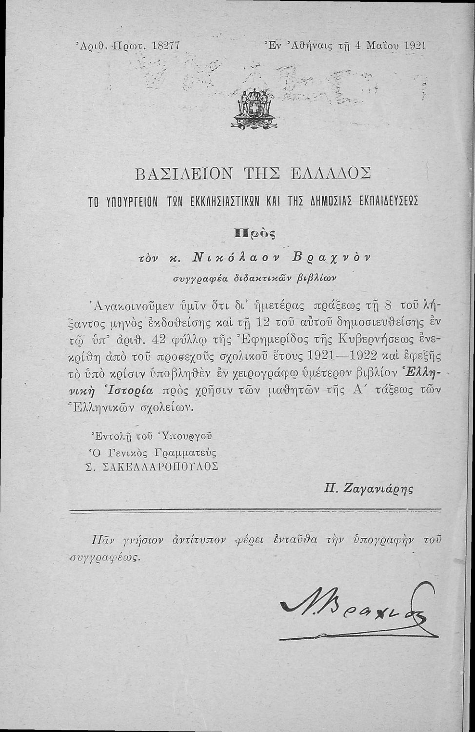Υπουργική απόφαση / Σύμβαση: 18277/4-5-1921